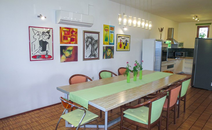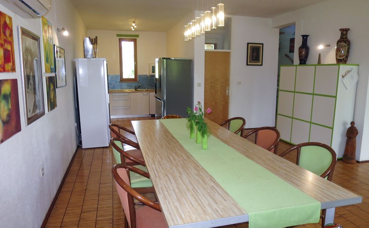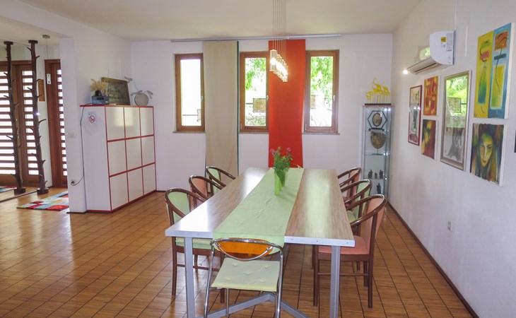 Single-family house "Valek", 2 storeys. 12 km from the centre of Starigrad, 600 m from the centre of Rovanjska, 300 m from the sea, 300 m from the beach. Private: property 750 m2, trees, swimming pool heated (34 m2, depth 150 cm, seasonal availability: 15.Apr. - 15.Oct.) with internal staircase. Hot tub, terrace (80 m2), garden furniture, barbecue (swing), pool maintenance by the owner/gardener. In the house: internet access, washing machine. Parking (for 4 cars) at the house on the premises. Shop 600 m, bus stop 1.4 km, pebble beach 300 m. The owner does not accept any youth groups. Swimming pool heated (extra).