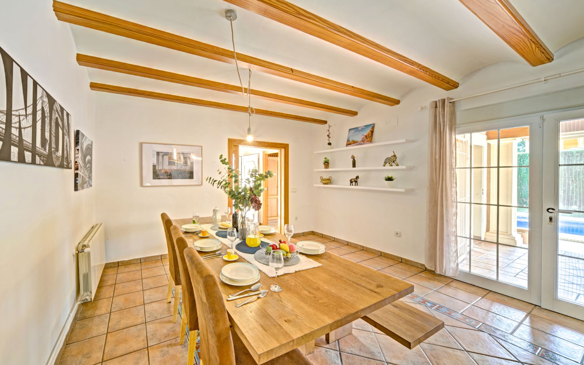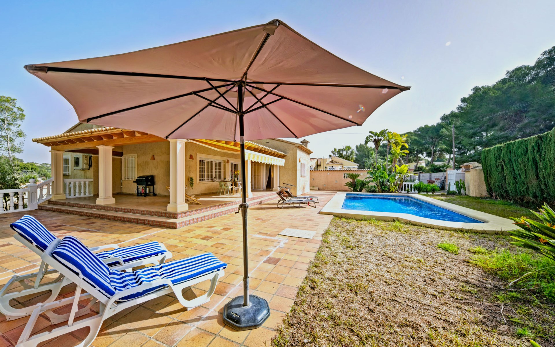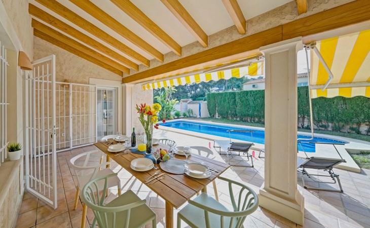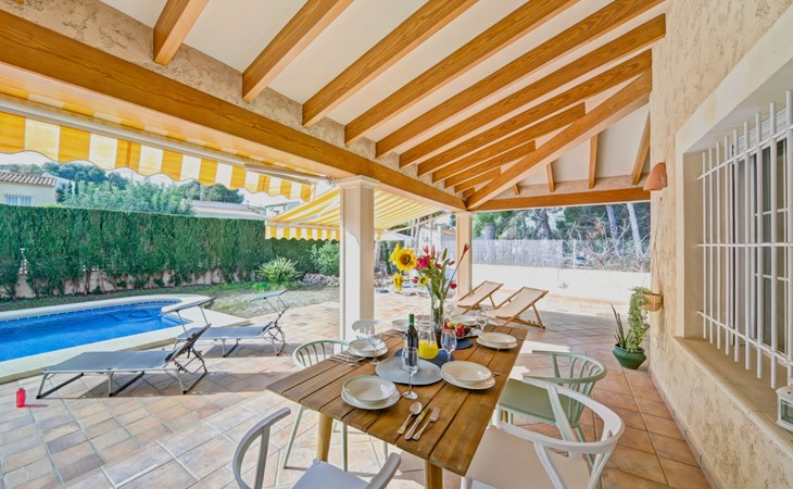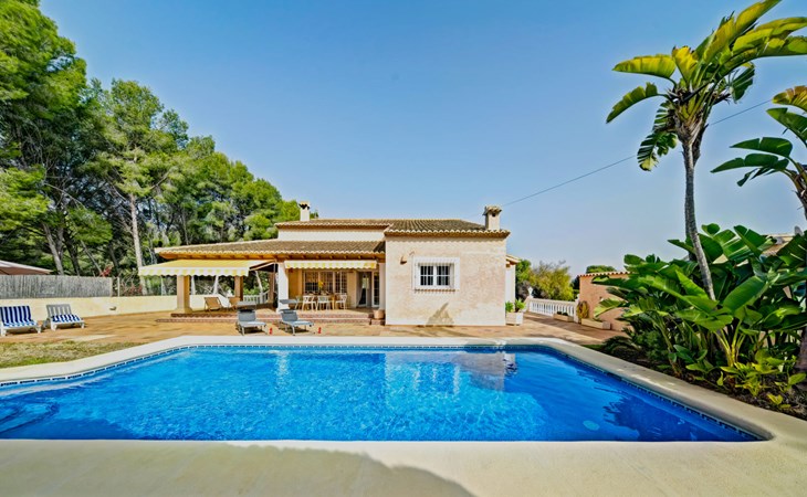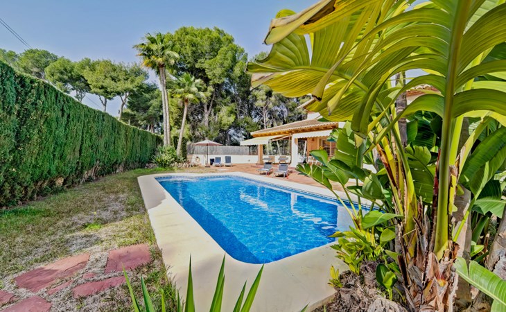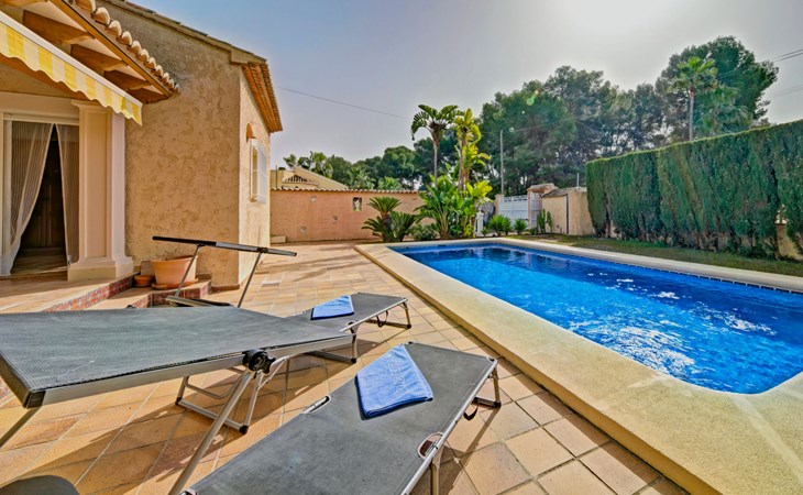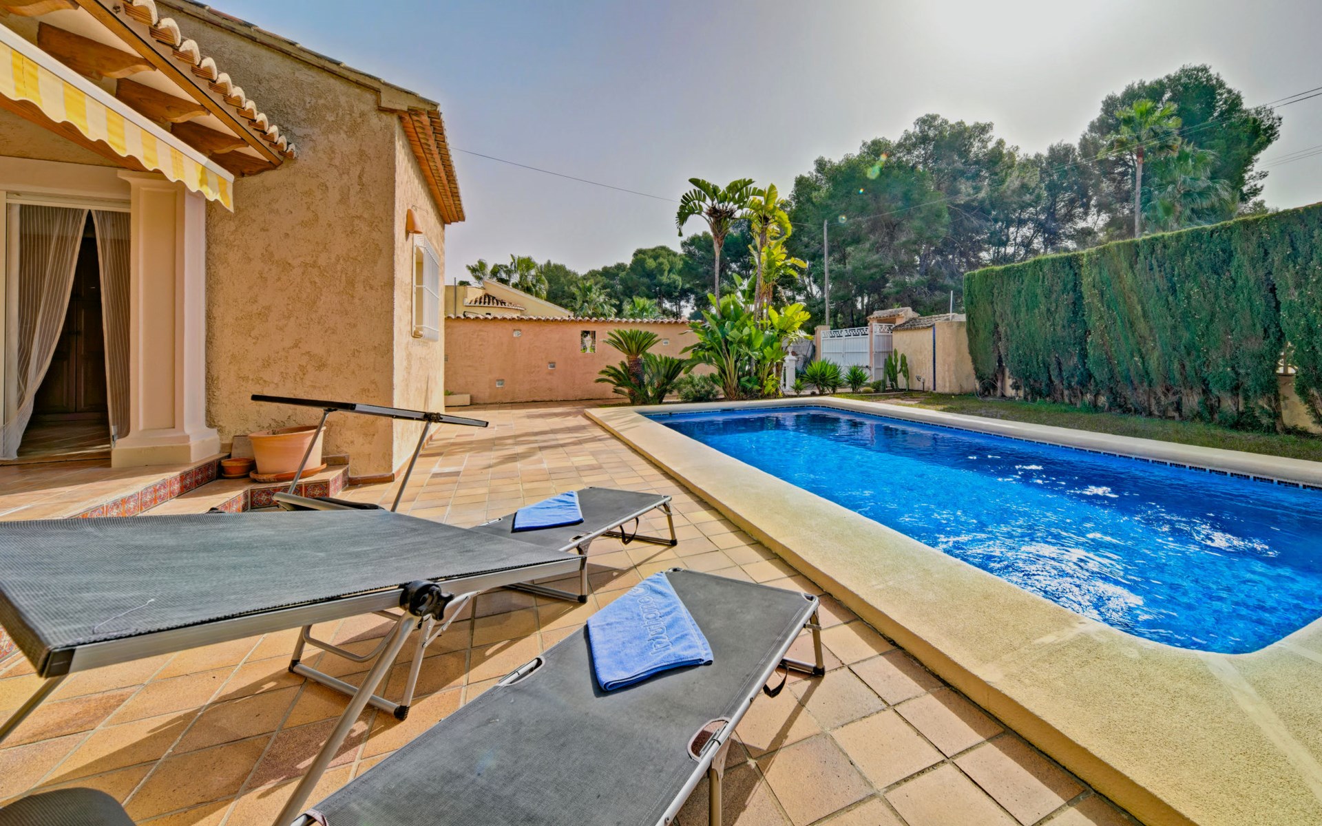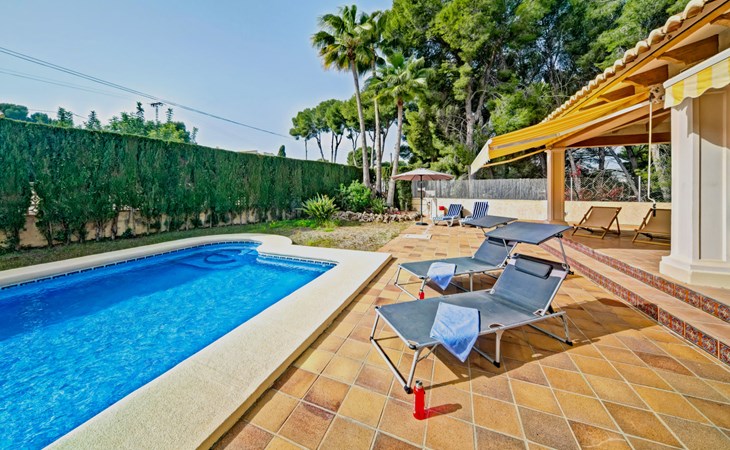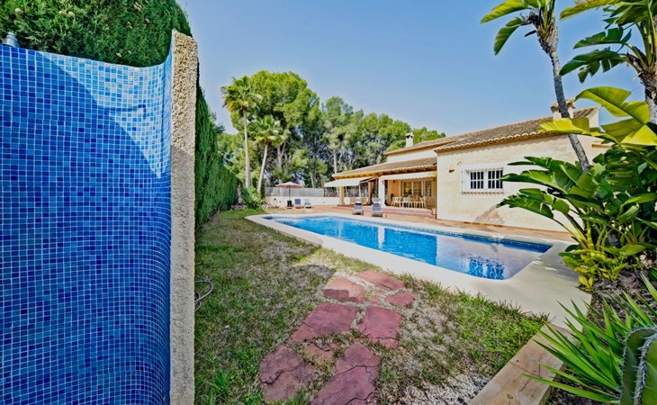 Beautiful, cosy, comfortable single-family house "La Sal". In the resort 3 km from the centre of Moraira, on the outskirts, 9 km from the centre of Calpe, in a quiet position, 750 m from the sea, 2.6 km from the beach. Private: property 854 m2 (fenced), garden, swimming pool angular (8 x 4 m, seasonal availability: 01.Jan. - 31.Dec.). Outdoor shower, parking (for 2 cars). Supermarket, bus stop 400 m, sandy beach "Playa l'Ampolla" 2.9 km. Nearby attractions: Parque atracciones Terra Mítica 35 km, Parque acuático Aqualandia 25 km. Hiking paths: Parque natural Peñon de Ifach 10 km. Please note: car recommended. The owner does not accept any youth groups. Airfield 75 km from the property.