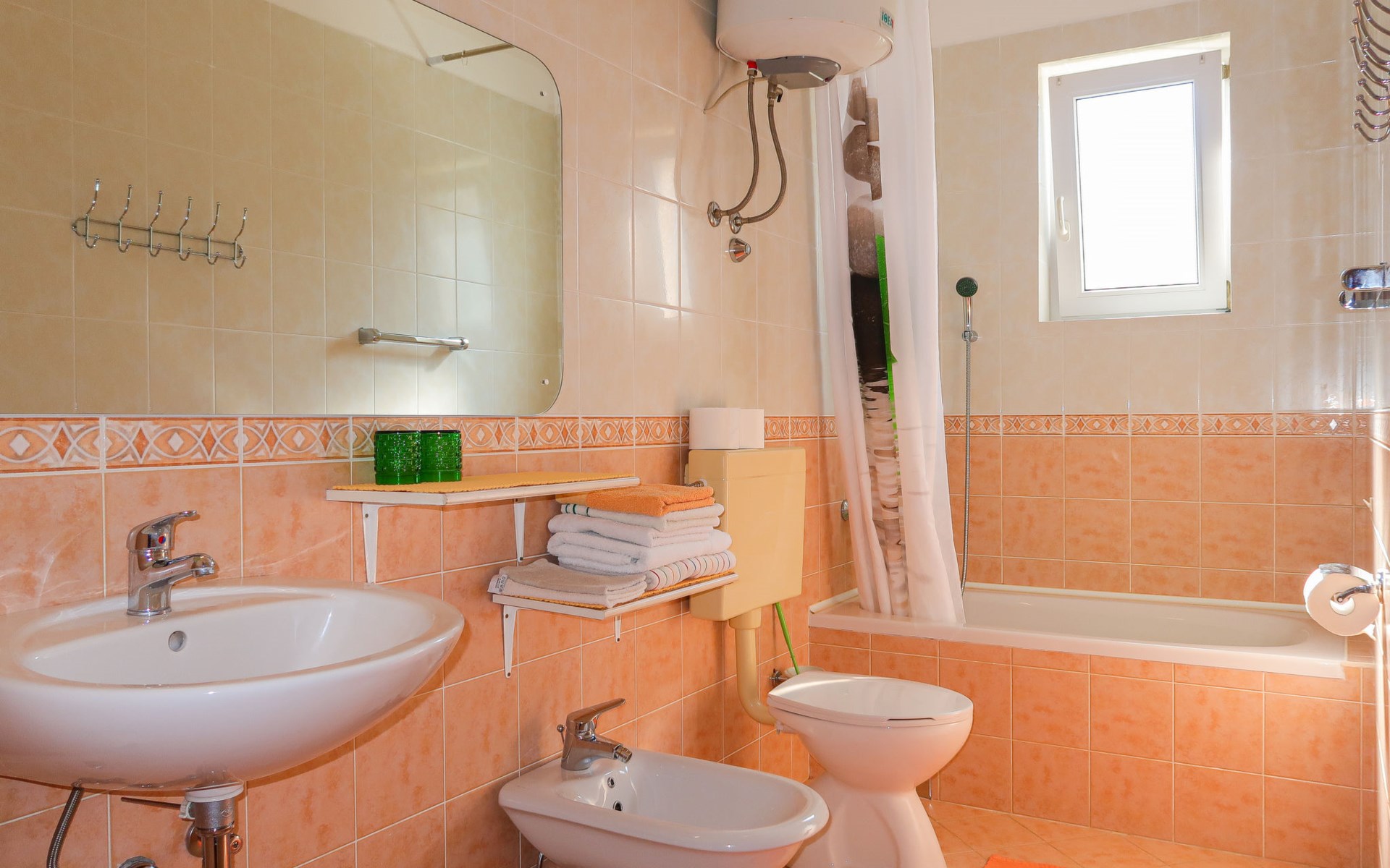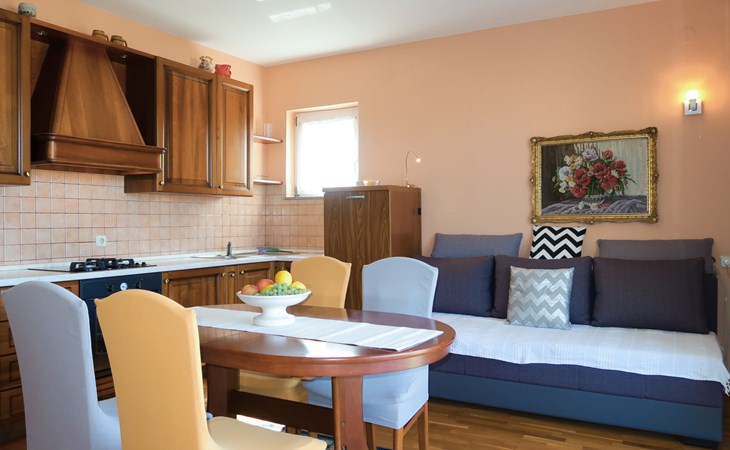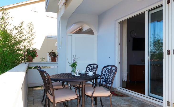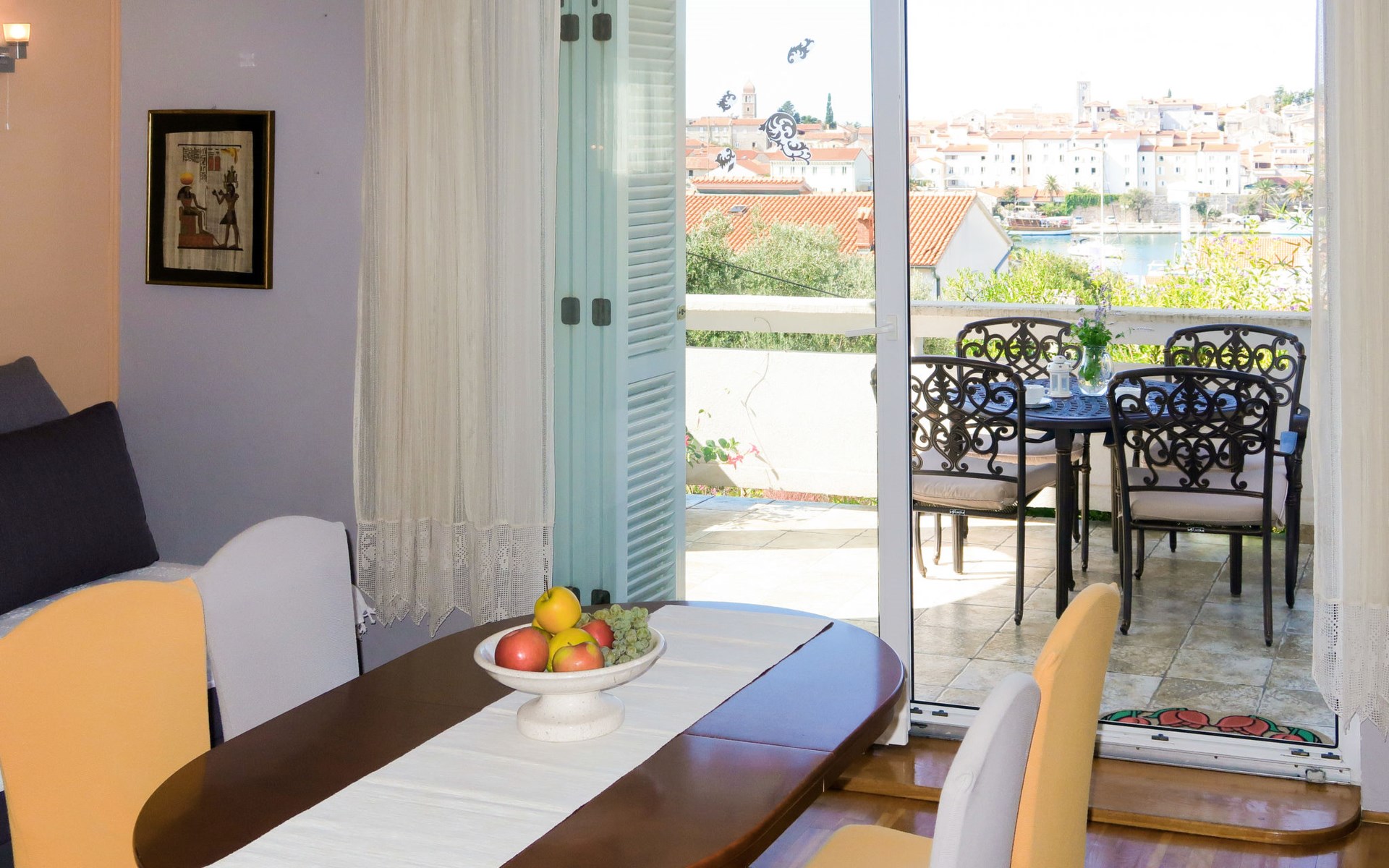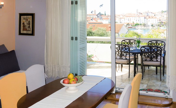 Apartment house "Hoba". 500 m from the centre of Rab, 7 km from the centre of Kampor, 13 km from the centre of Lopar, 150 m from the sea, 600 m from the beach. For shared use: property 650 m2. In the house: internet access. 70 m long steep, narrow motor access to the house. Parking on the premises. Shop 200 m, bus stop, pebble beach 600 m.