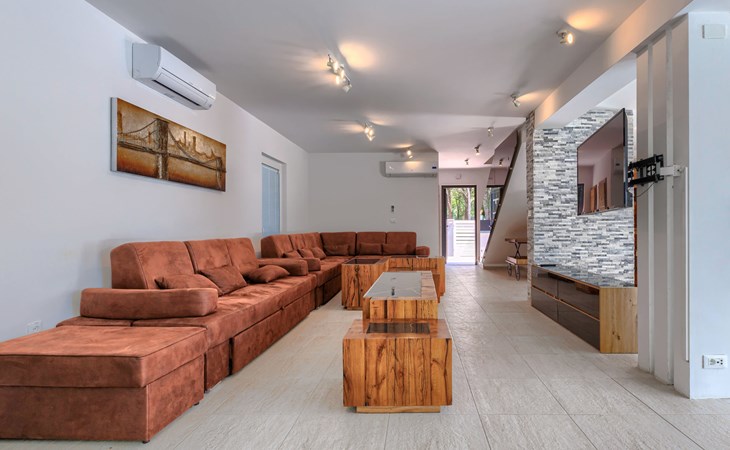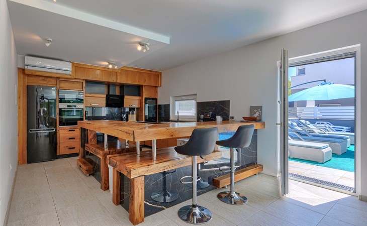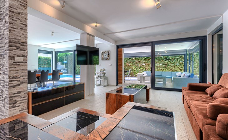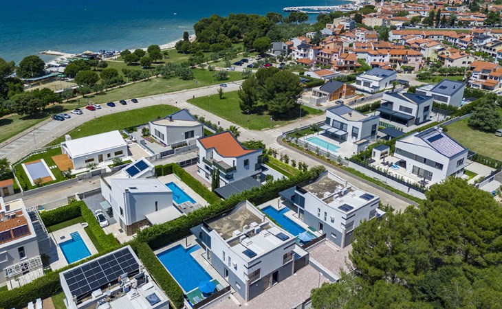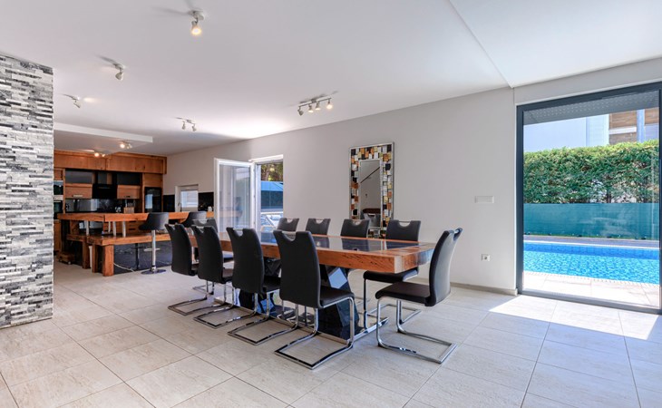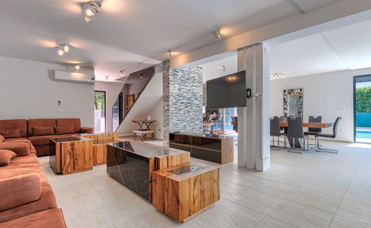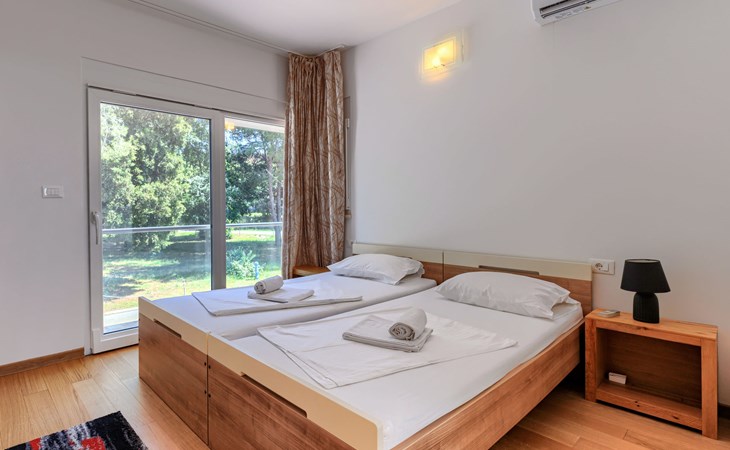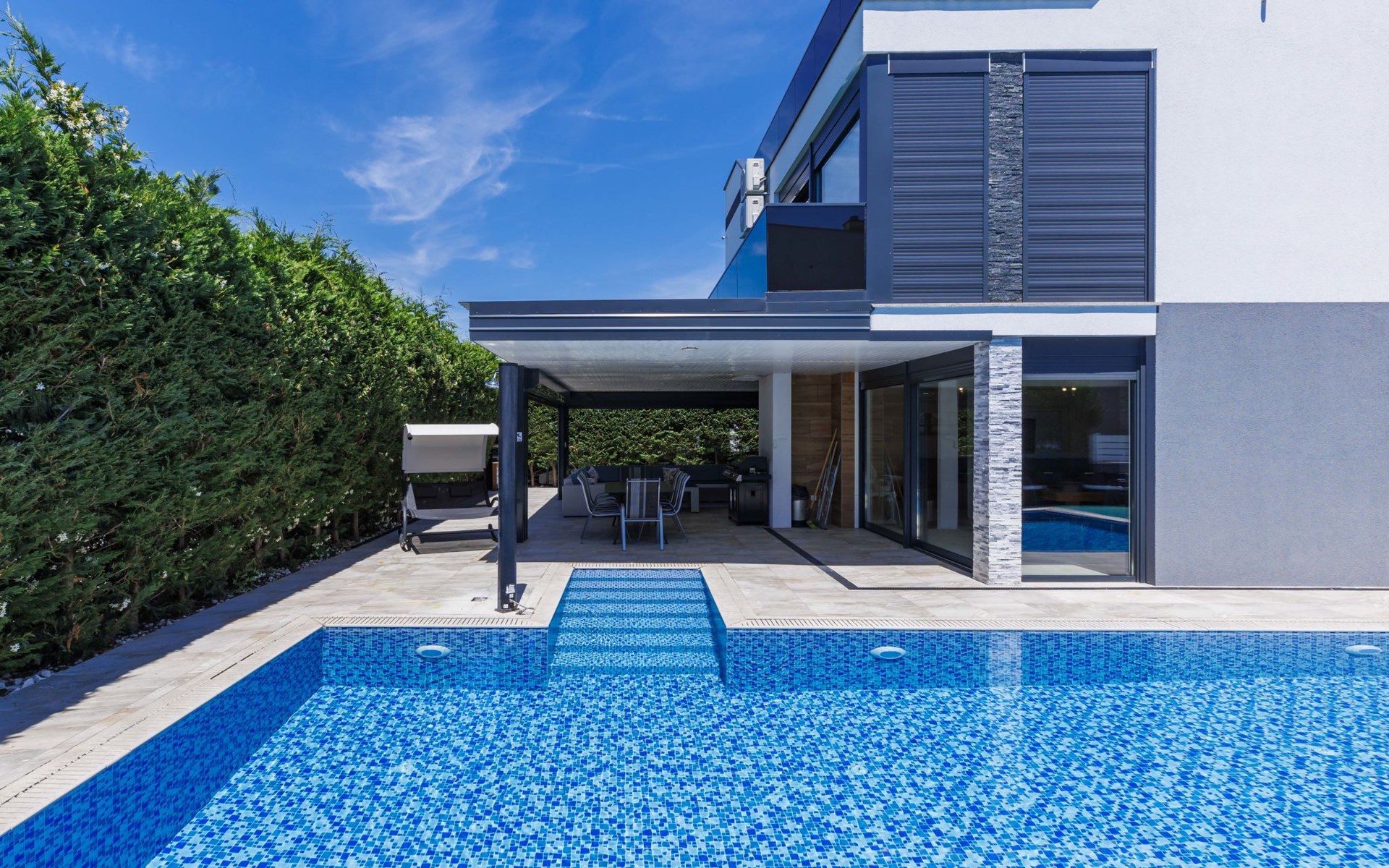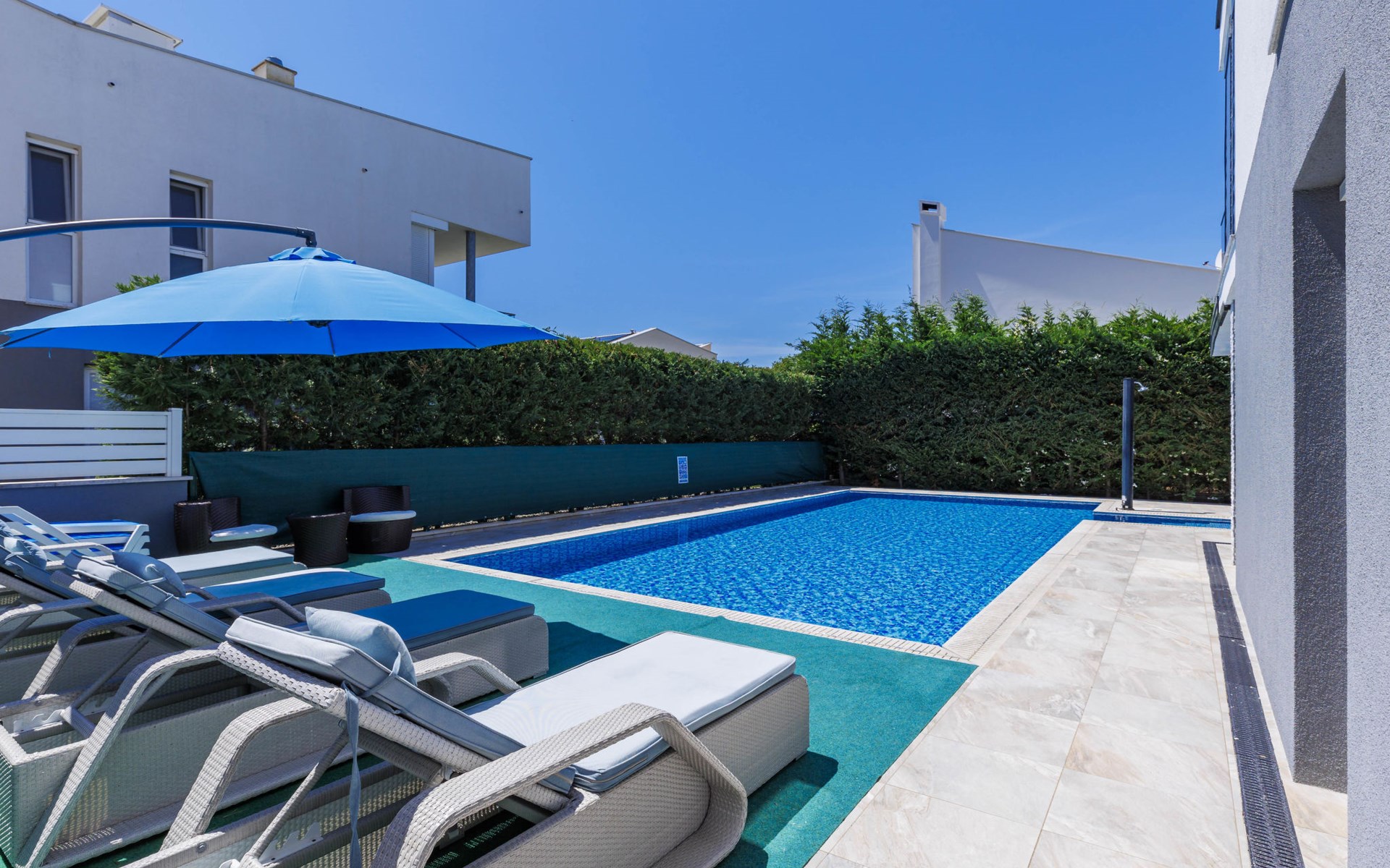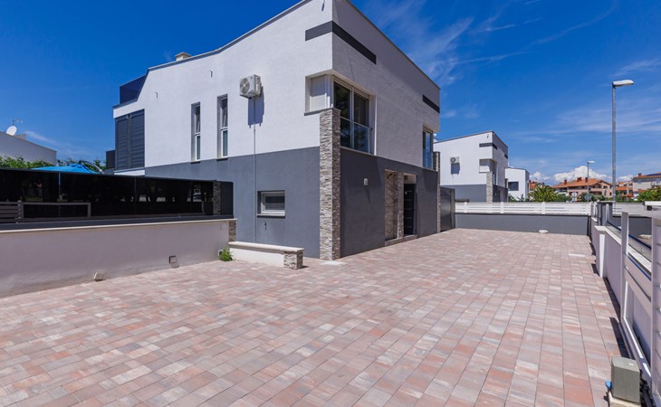 Villa "Rial 2", 2 storeys. 500 m from the centre of Fažana, 250 m from the sea, 250 m from the beach. Private: property 400 m2 (fenced), swimming pool (11 x 5 m, 60 m2, depth 140 cm, seasonal availability: 01.May. - 01.Oct.) with internal staircase. Outdoor shower, garden furniture. In the house: internet access, washing machine. Parking (for 4 cars) at the house on the premises. Shop 250 m, restaurant 300 m, bus stop 550 m, pebble beach 250 m. Object suitable for 8 adults + 2 children. Please note: airfield 10 km from the property.