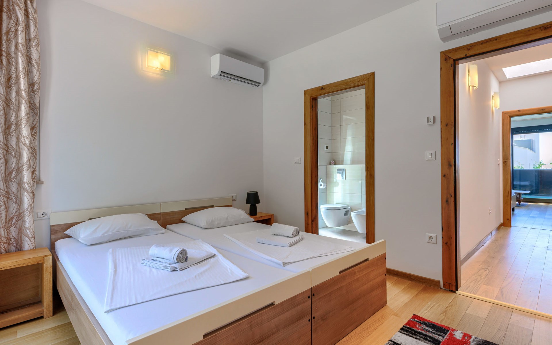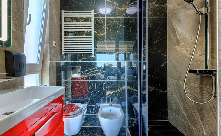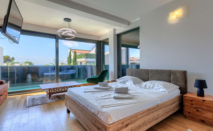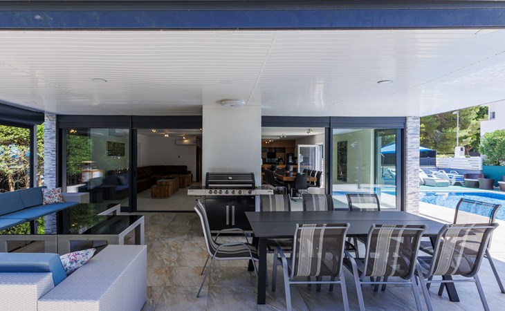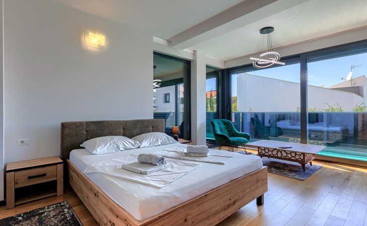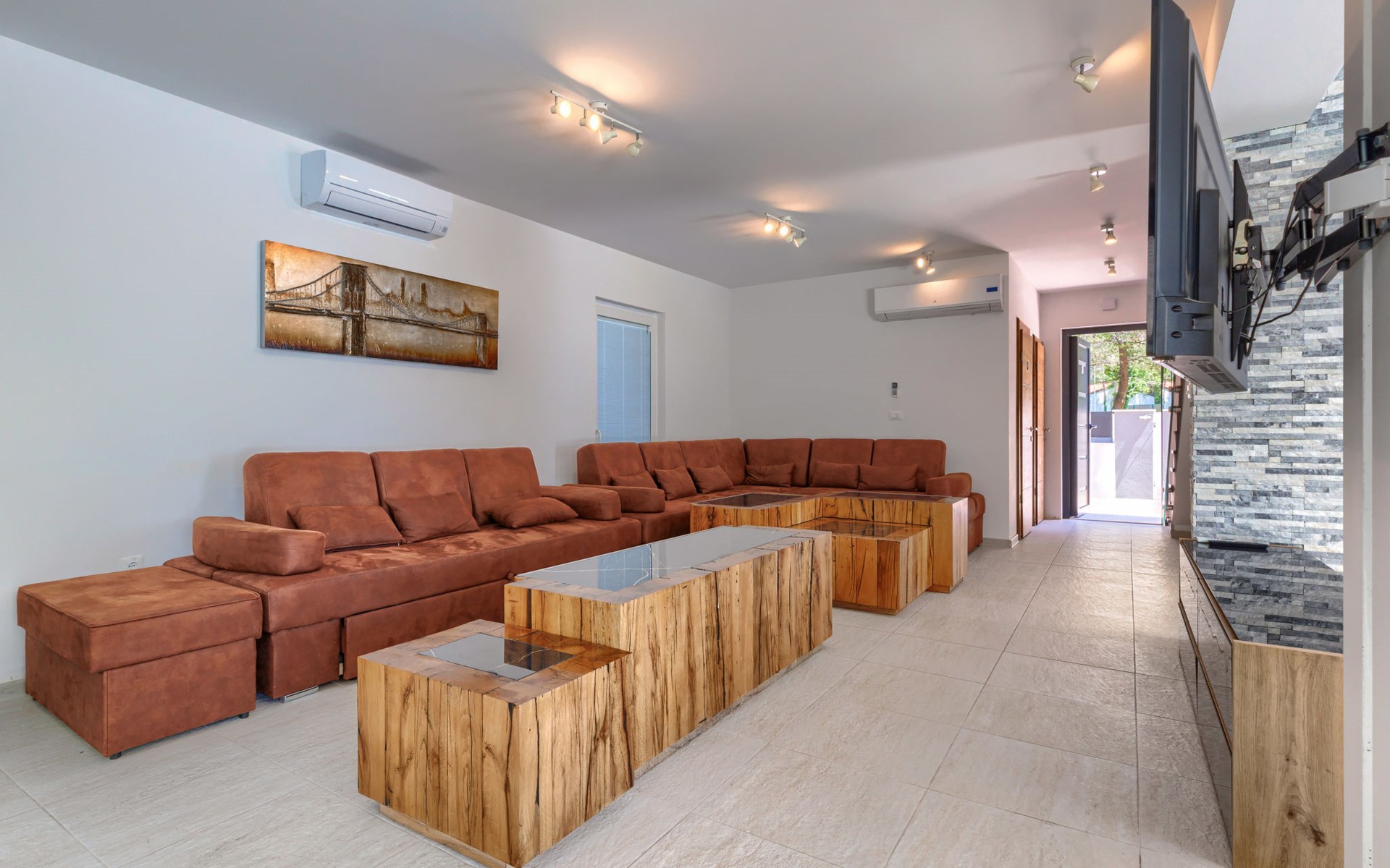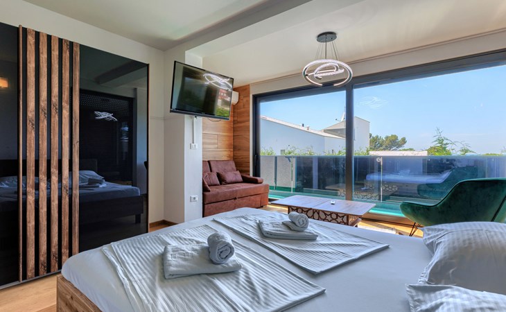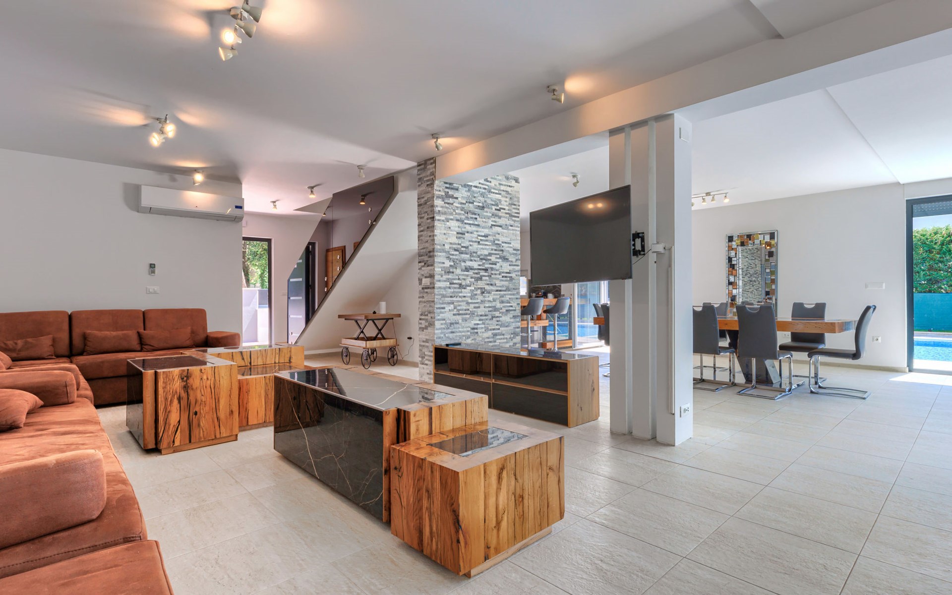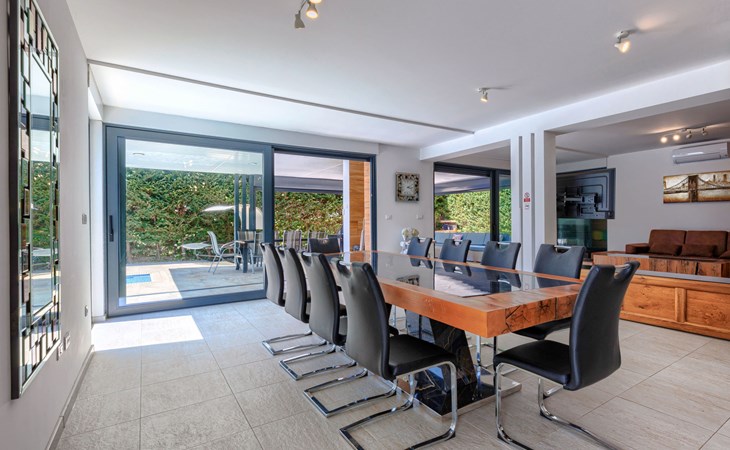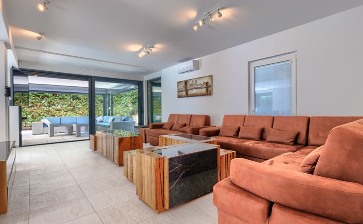 Villa "Rial 2", 2 storeys. 500 m from the centre of Fažana, 250 m from the sea, 250 m from the beach. Private: property 400 m2 (fenced), swimming pool (11 x 5 m, 60 m2, depth 140 cm, seasonal availability: 01.May. - 01.Oct.) with internal staircase. Outdoor shower, garden furniture. In the house: internet access, washing machine. Parking (for 4 cars) at the house on the premises. Shop 250 m, restaurant 300 m, bus stop 550 m, pebble beach 250 m. Object suitable for 8 adults + 2 children. Please note: airfield 10 km from the property.