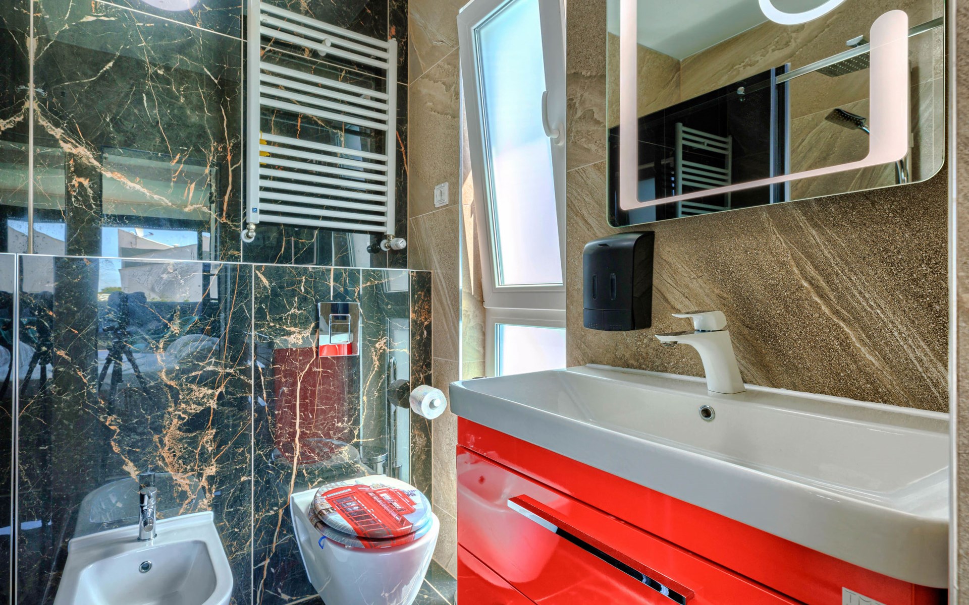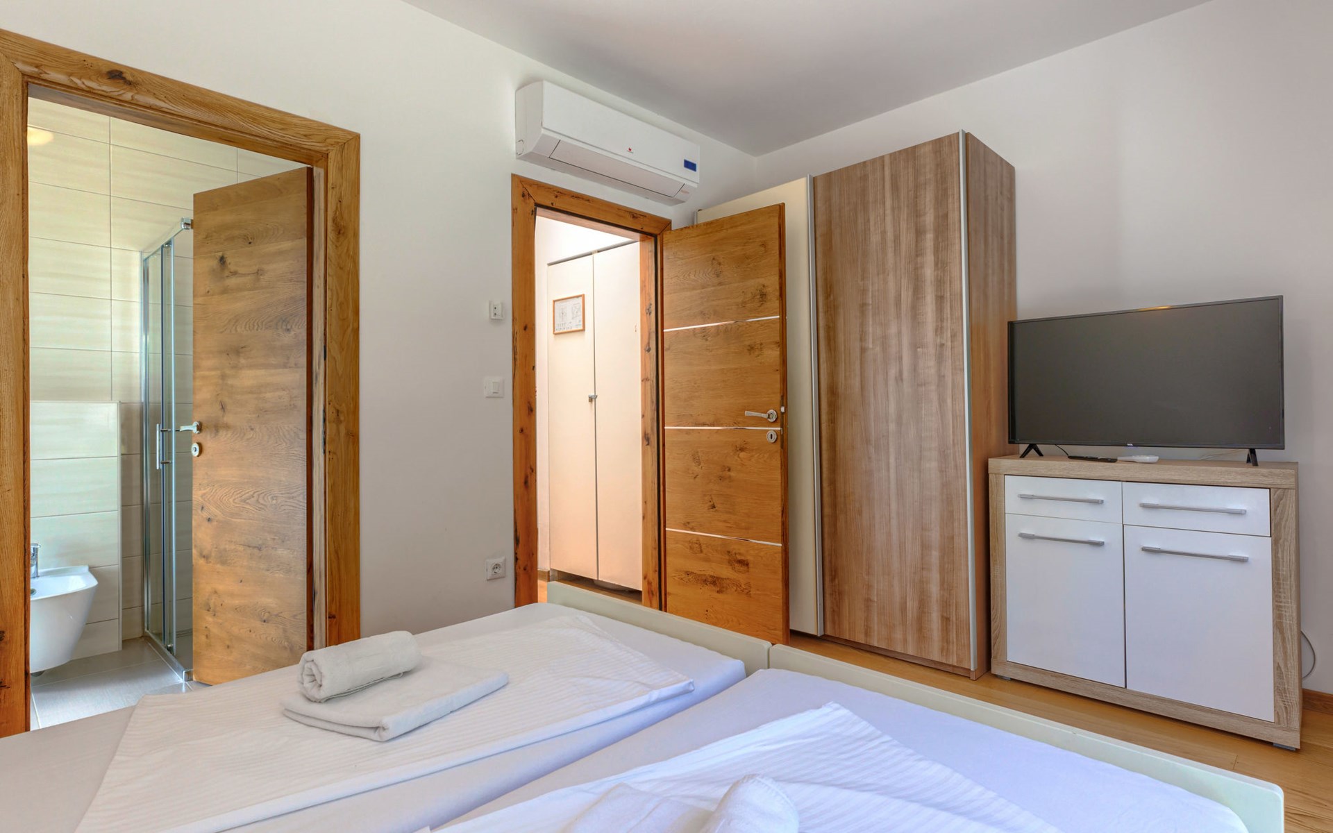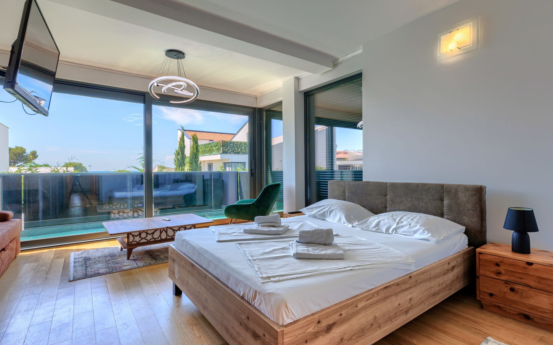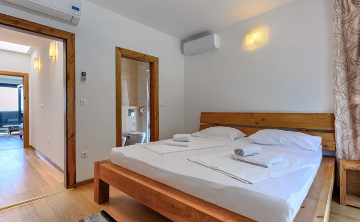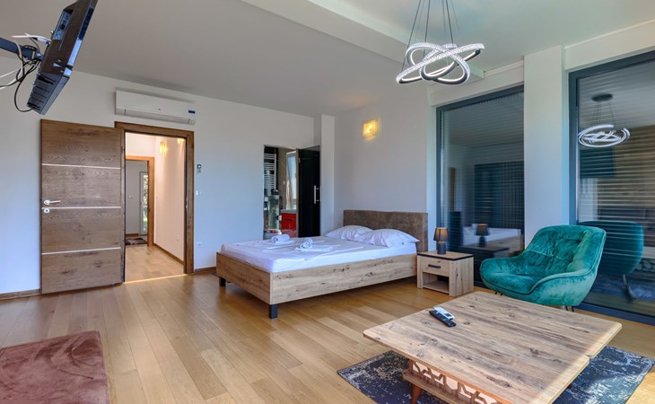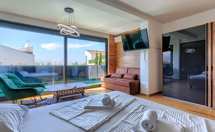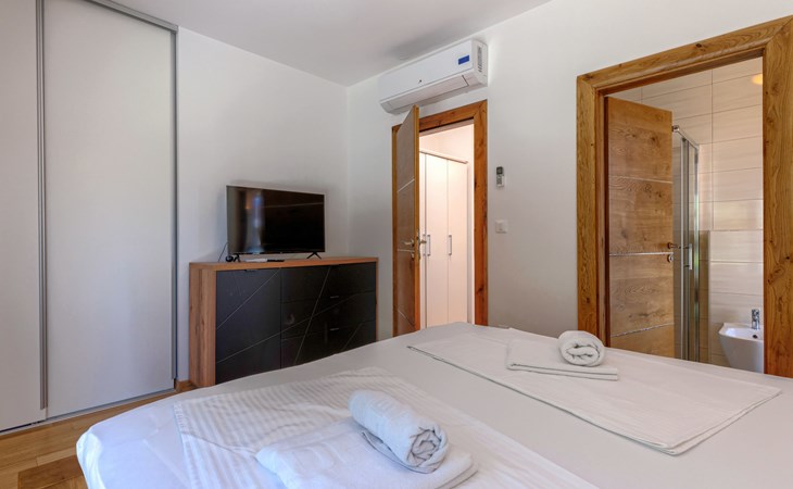Villa "Rial 2", 2 storeys. 500 m from the centre of Fažana, 250 m from the sea, 250 m from the beach. Private: property 400 m2 (fenced), swimming pool (11 x 5 m, 60 m2, depth 140 cm, seasonal availability: 01.May. - 01.Oct.) with internal staircase. Outdoor shower, garden furniture. In the house: internet access, washing machine. Parking (for 4 cars) at the house on the premises. Shop 250 m, restaurant 300 m, bus stop 550 m, pebble beach 250 m. Object suitable for 8 adults + 2 children. Please note: airfield 10 km from the property.