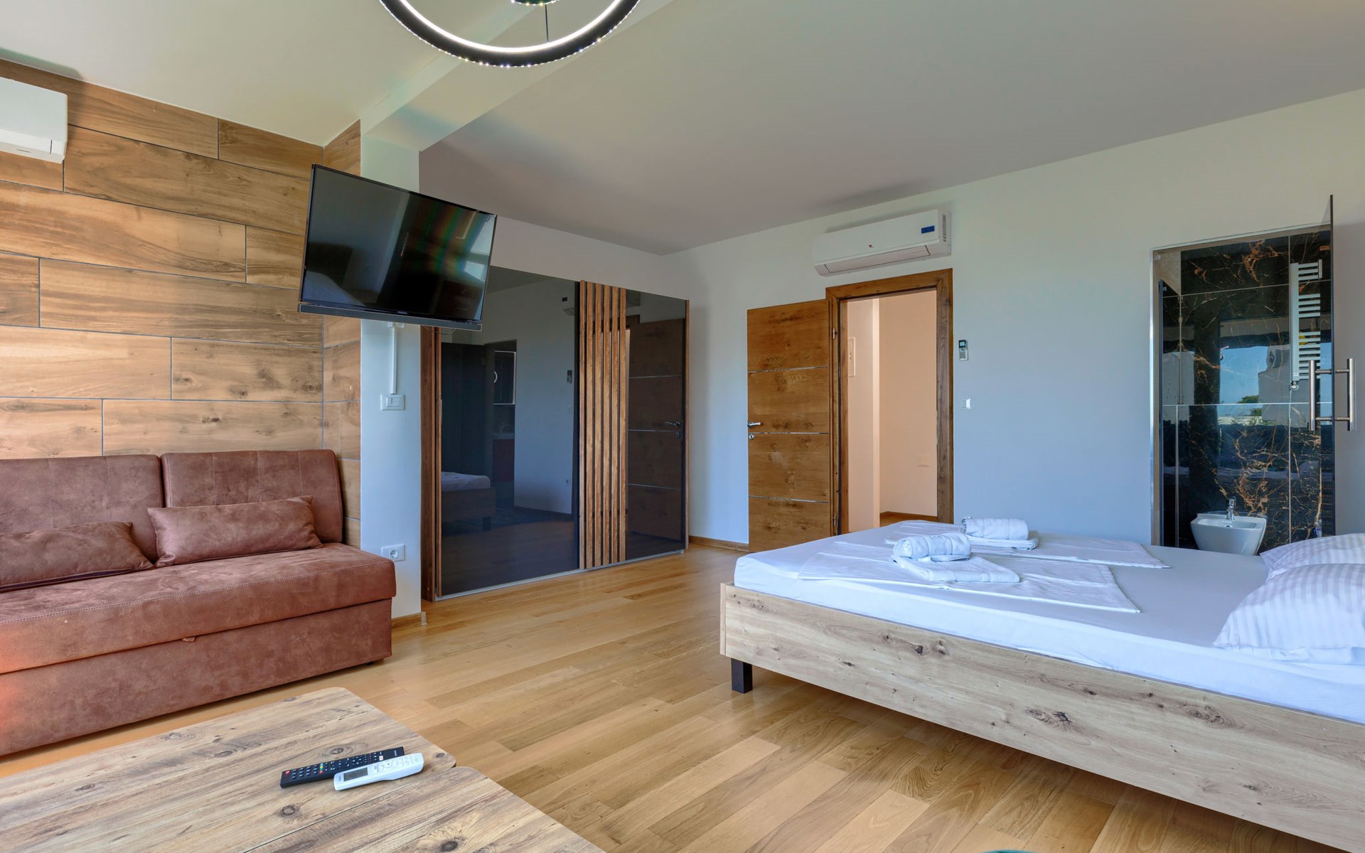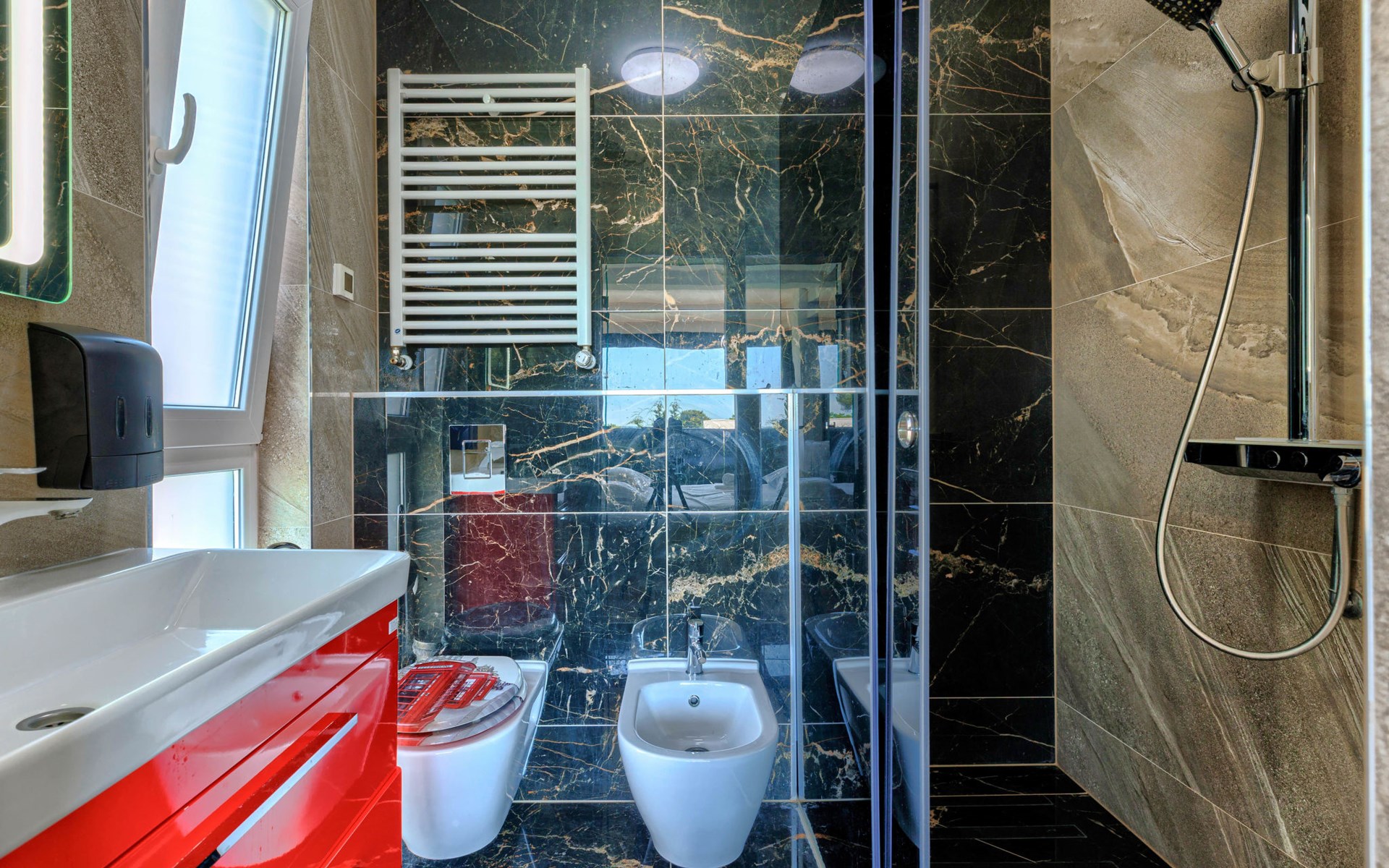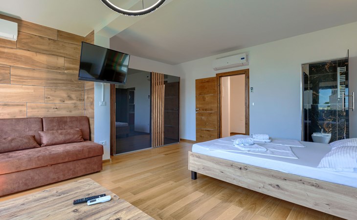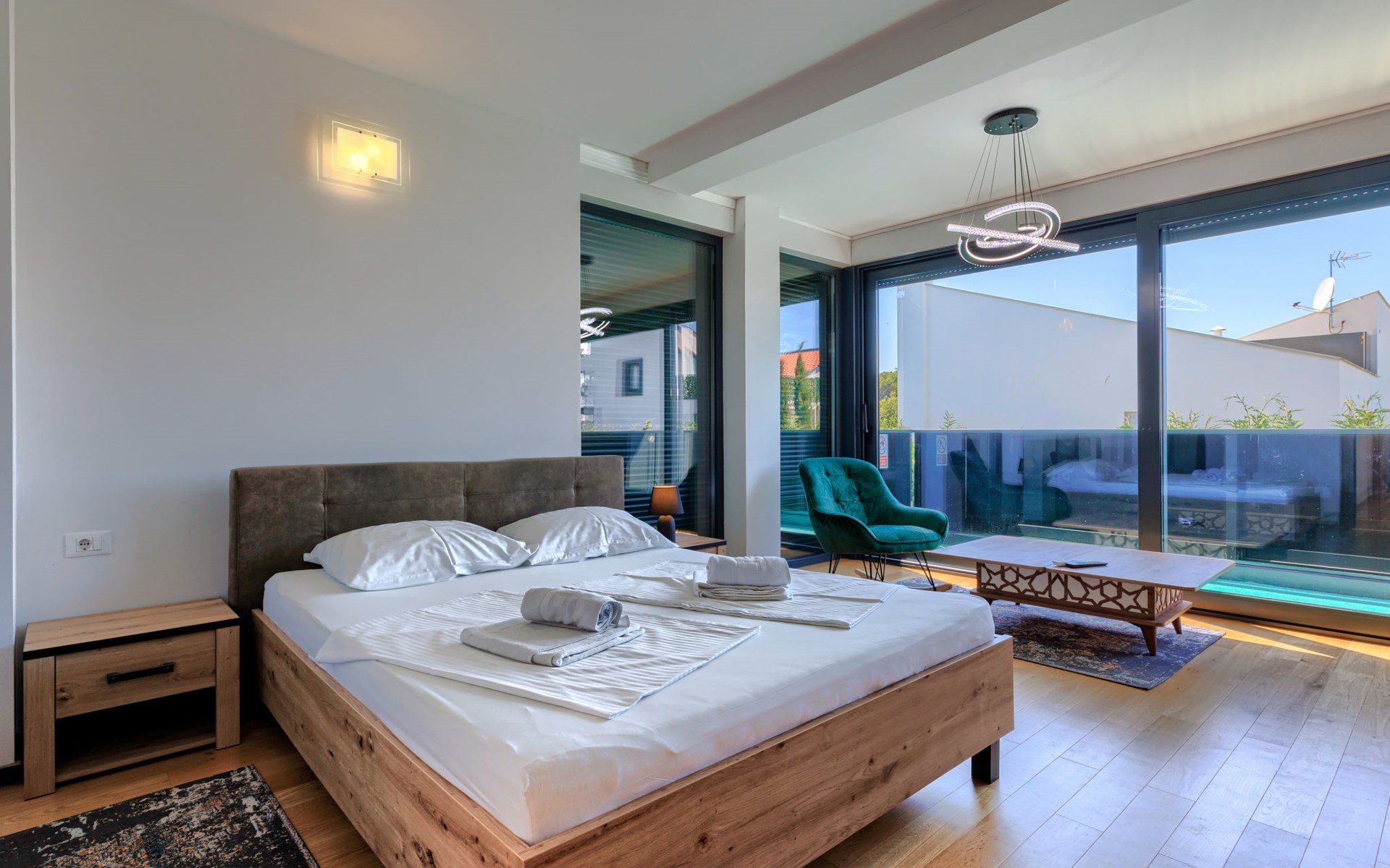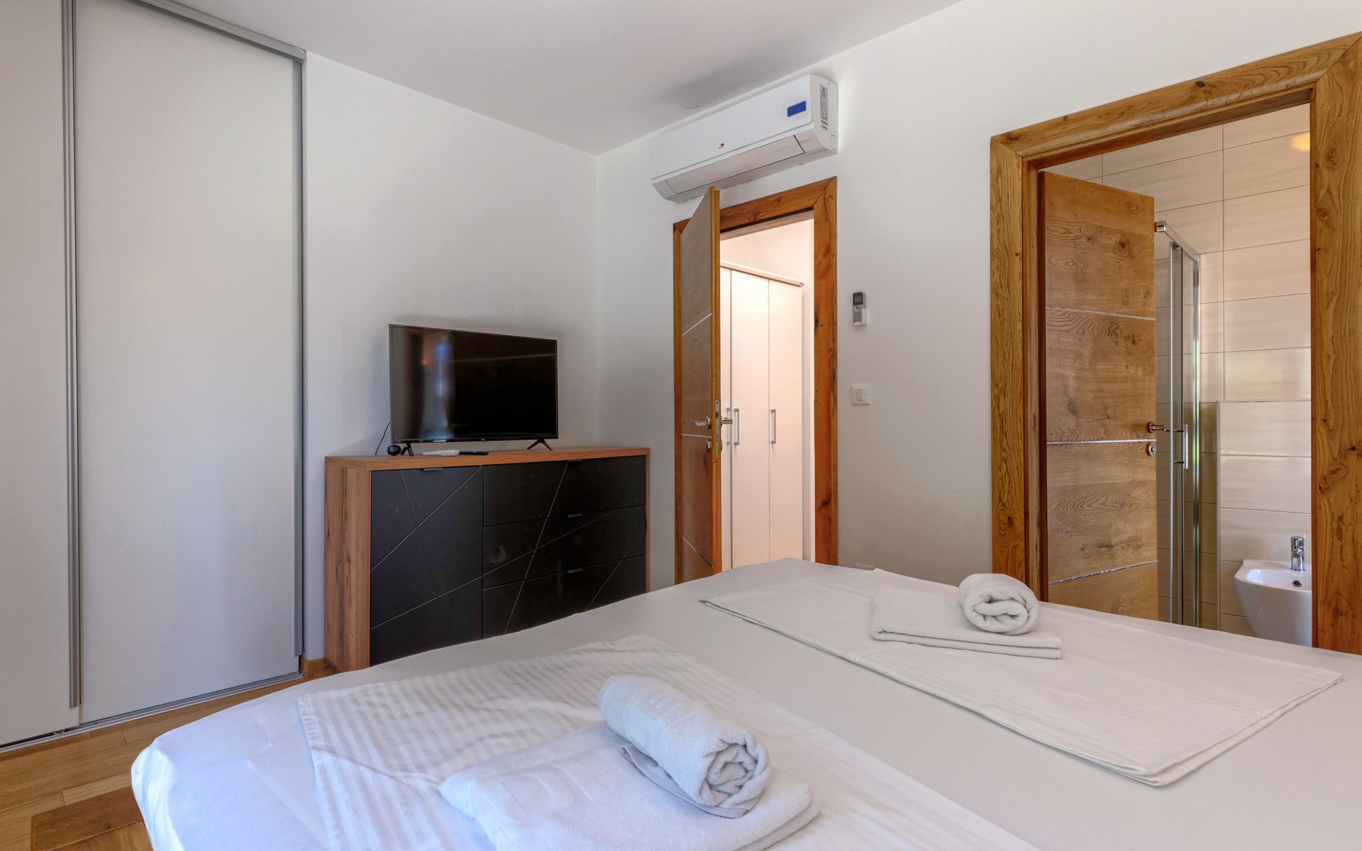 Villa "Rial 2", 2 storeys. 500 m from the centre of Fažana, 250 m from the sea, 250 m from the beach. Private: property 400 m2 (fenced), swimming pool (11 x 5 m, 60 m2, depth 140 cm, seasonal availability: 01.May. - 01.Oct.) with internal staircase. Outdoor shower, garden furniture. In the house: internet access, washing machine. Parking (for 4 cars) at the house on the premises. Shop 250 m, restaurant 300 m, bus stop 550 m, pebble beach 250 m. Object suitable for 8 adults + 2 children. Please note: airfield 10 km from the property.
