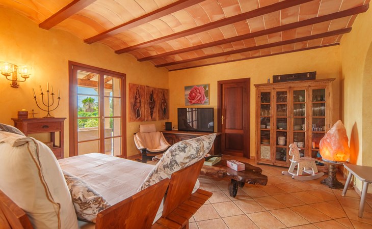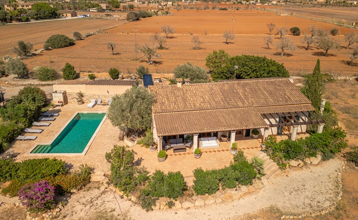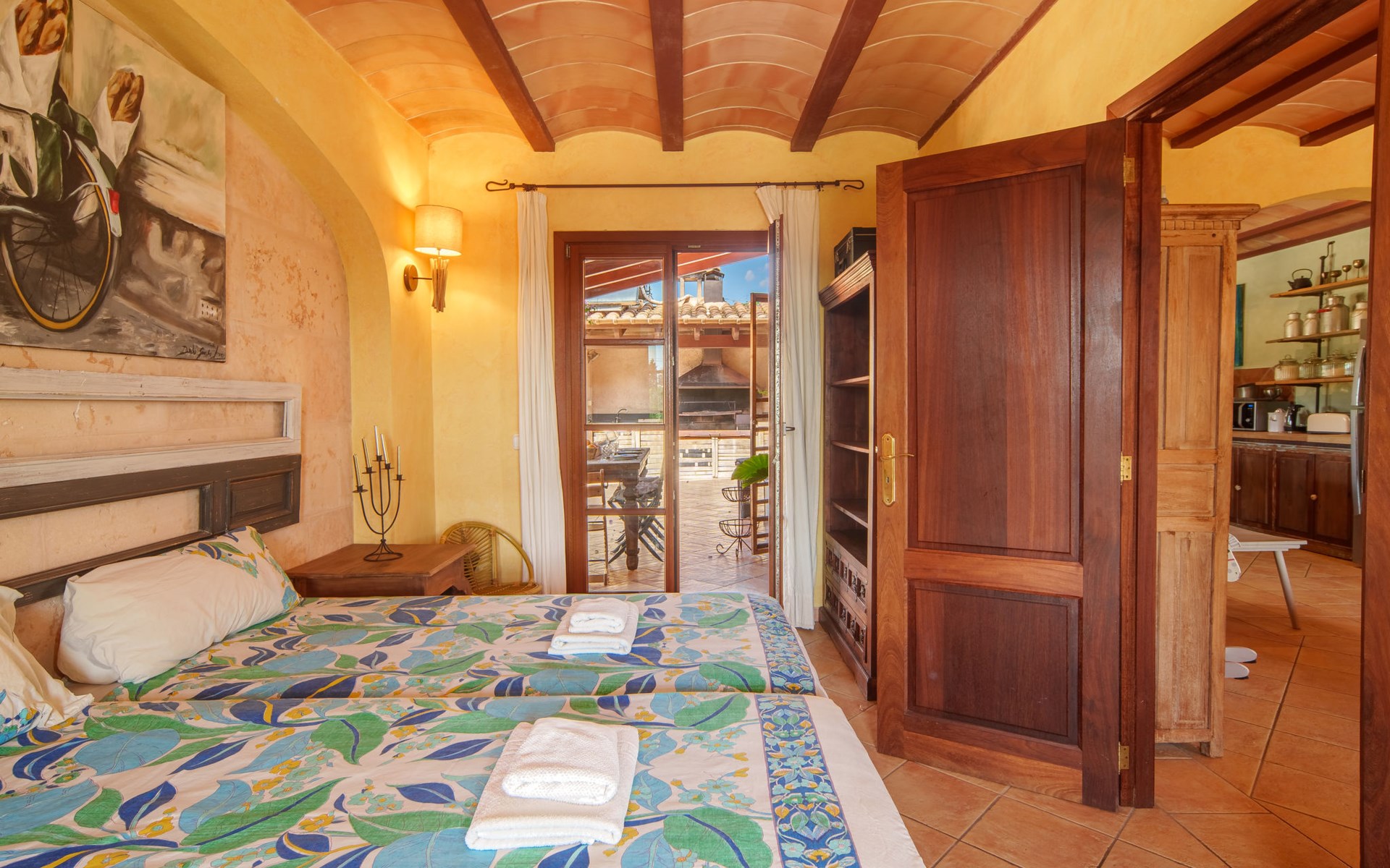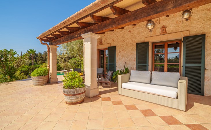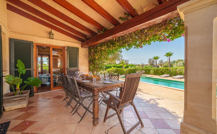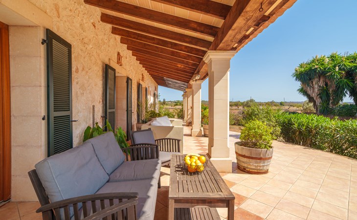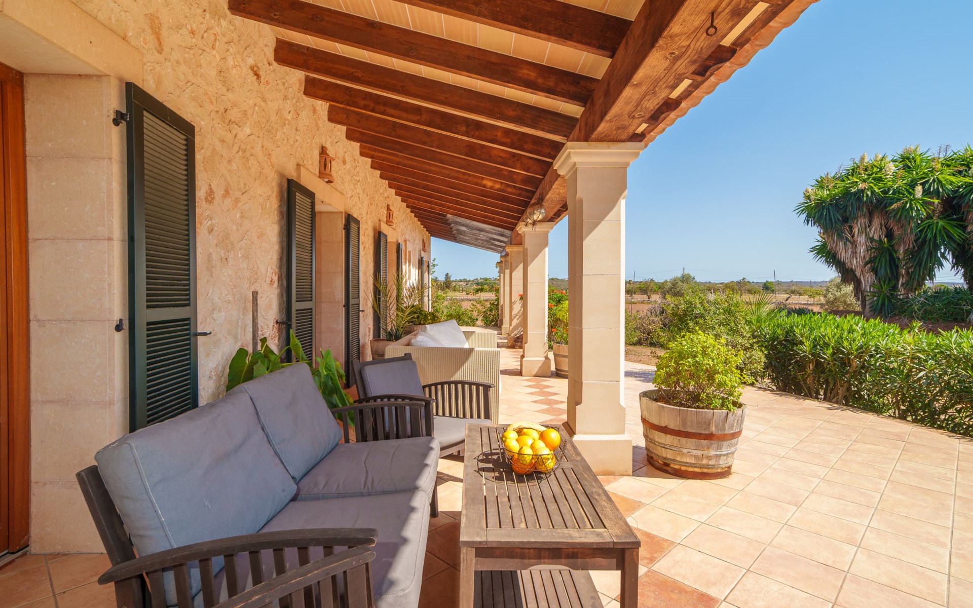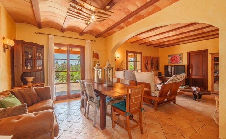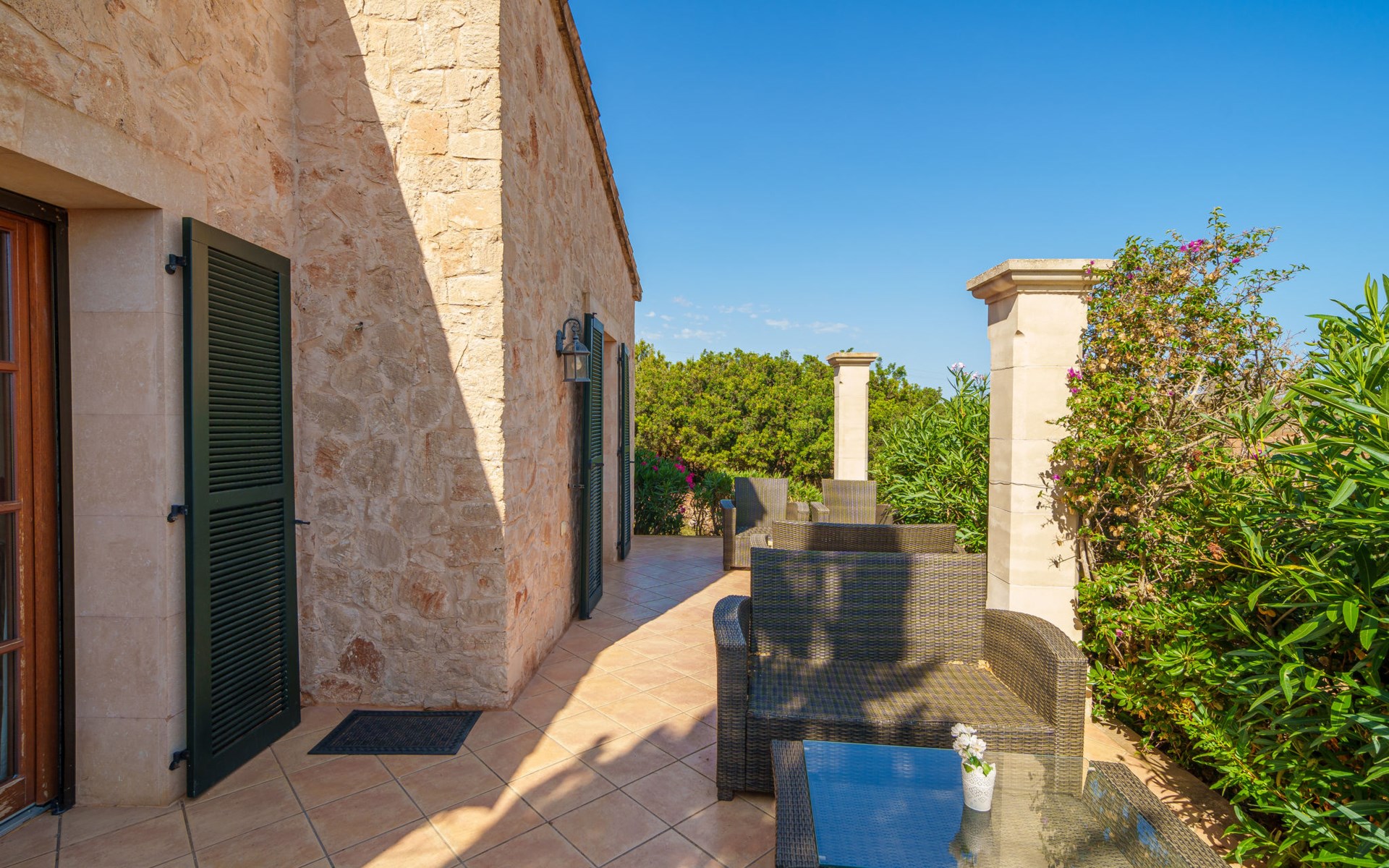 San Blai 3 km from Campos: Large, cosy, comfortable villa "San Blai Llum de Sal", surrounded by trees. 3 km from the edge of the forest, 13 km from the sea, 13 km from the beach. Private: natural garden, swimming pool (8 x 4 m, depth 250 - 250 cm, seasonal availability: 01.Mar. - 31.Oct.). Patio, pergola, garden furniture, barbecue, pool maintenance by the owner/gardener. In the house: WiFi, washing machine, heating to be paid on the spot (01.Nov. - 31.Mar.). Roofed, parking. Shop 3 km, grocery 3 km, supermarket 3 km, shopping centre 3 km, restaurant 3 km, bar 3 km, bakery 3 km, café 3 km, pedestrian zone 3 km, bus stop "Campos" 3 km, railway station "Manacor" 27 km, sandy beach "Sa Rápita" 13 km. Sports harbour 13 km, marina 13 km, golf course (18 hole) 20 km, sailing school 13 km. Nearby attractions: Platja d’es Trenc 13 km, Sa Plasa de Campos 3 km, Santanyi 10 km. Please note: car recommended. Baby equipment on request (included). The owner does not accept any youth groups. Loading and unloading of baggage is possible at the holiday house. Airfield 30 km from the property.