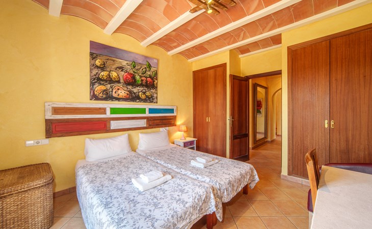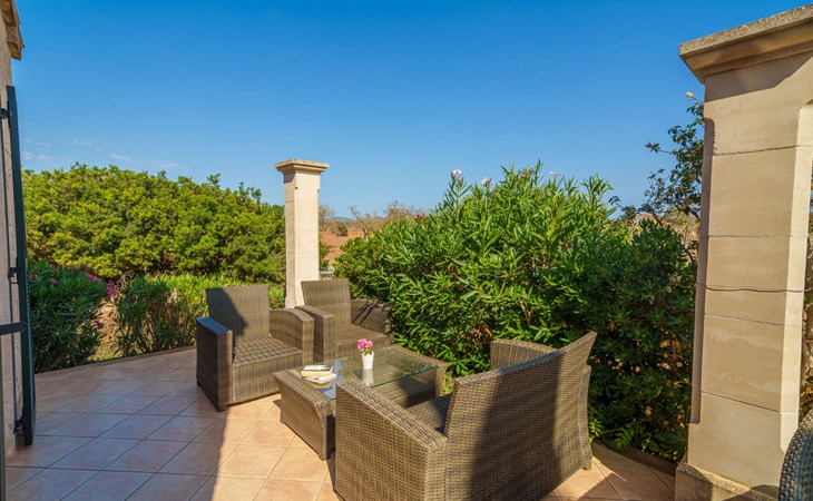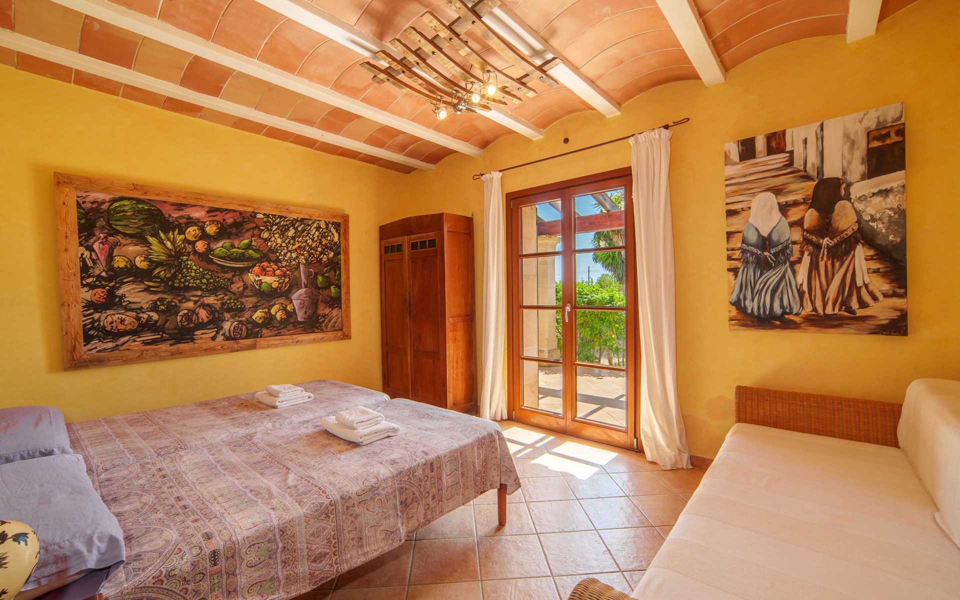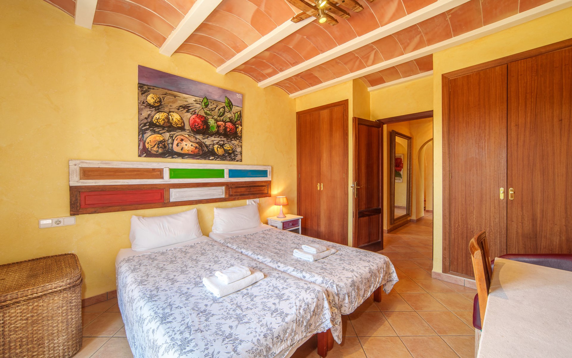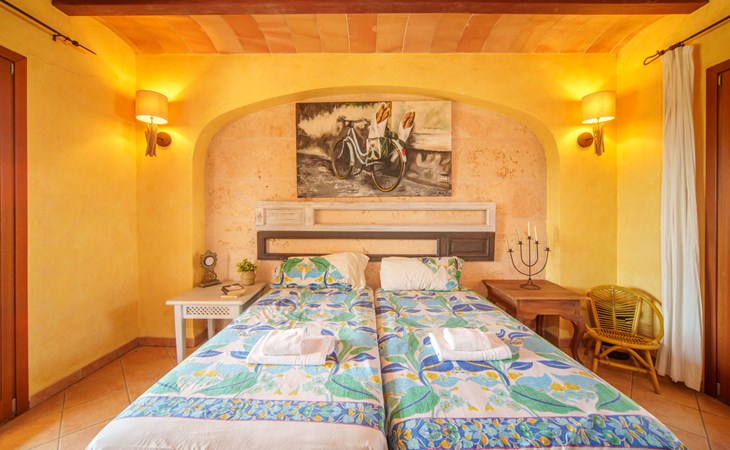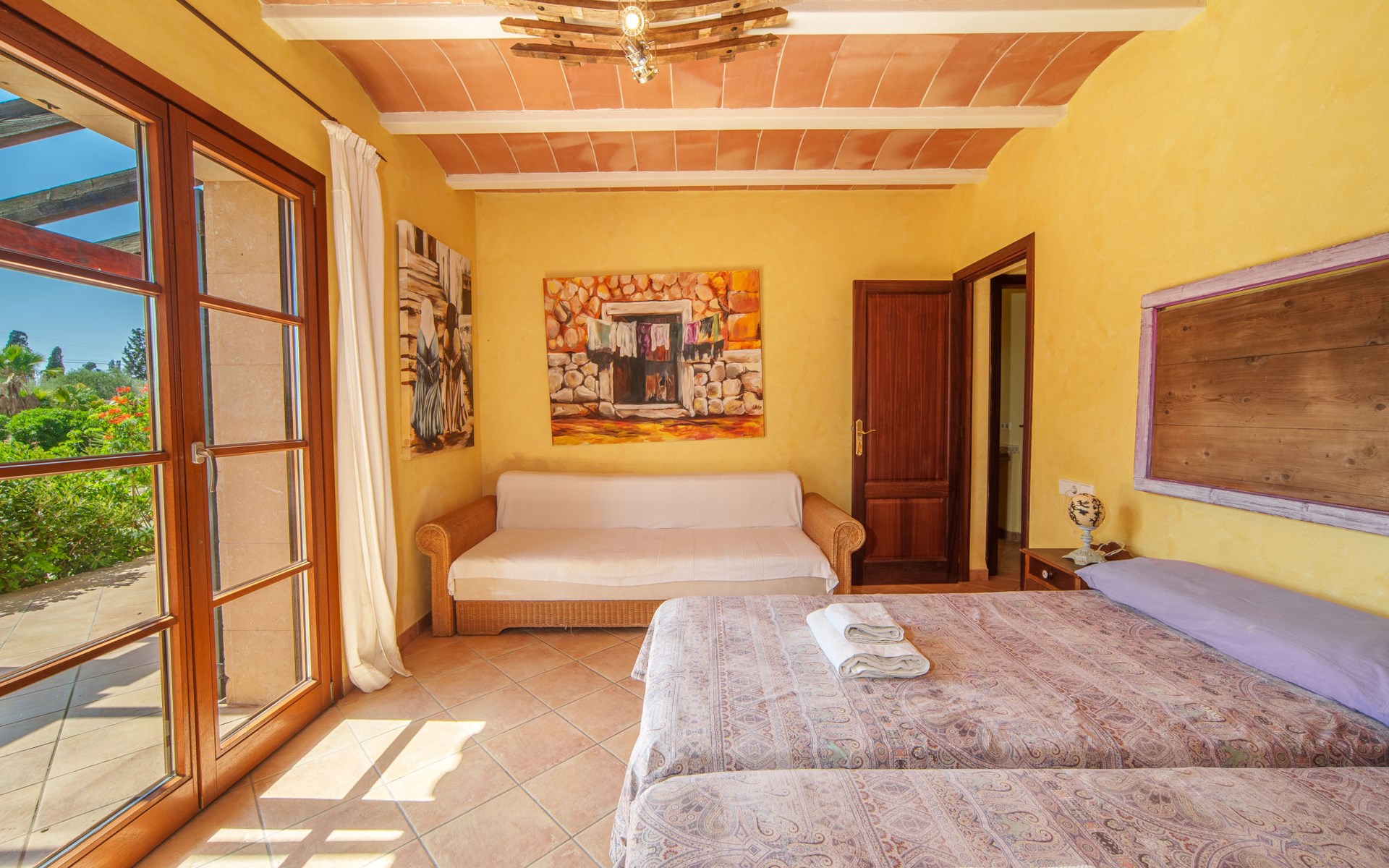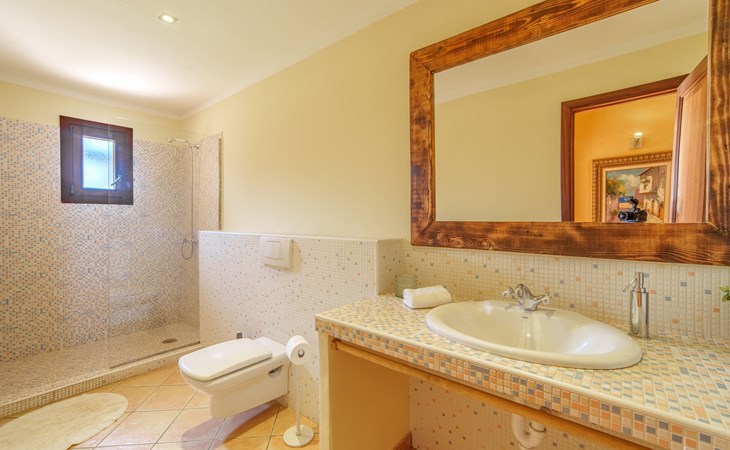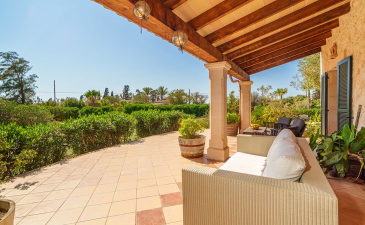 San Blai 3 km from Campos: Large, cosy, comfortable villa "San Blai Llum de Sal", surrounded by trees. 3 km from the edge of the forest, 13 km from the sea, 13 km from the beach. Private: natural garden, swimming pool (8 x 4 m, depth 250 - 250 cm, seasonal availability: 01.Mar. - 31.Oct.). Patio, pergola, garden furniture, barbecue, pool maintenance by the owner/gardener. In the house: WiFi, washing machine, heating to be paid on the spot (01.Nov. - 31.Mar.). Roofed, parking. Shop 3 km, grocery 3 km, supermarket 3 km, shopping centre 3 km, restaurant 3 km, bar 3 km, bakery 3 km, café 3 km, pedestrian zone 3 km, bus stop "Campos" 3 km, railway station "Manacor" 27 km, sandy beach "Sa Rápita" 13 km. Sports harbour 13 km, marina 13 km, golf course (18 hole) 20 km, sailing school 13 km. Nearby attractions: Platja d’es Trenc 13 km, Sa Plasa de Campos 3 km, Santanyi 10 km. Please note: car recommended. Baby equipment on request (included). The owner does not accept any youth groups. Loading and unloading of baggage is possible at the holiday house. Airfield 30 km from the property.
