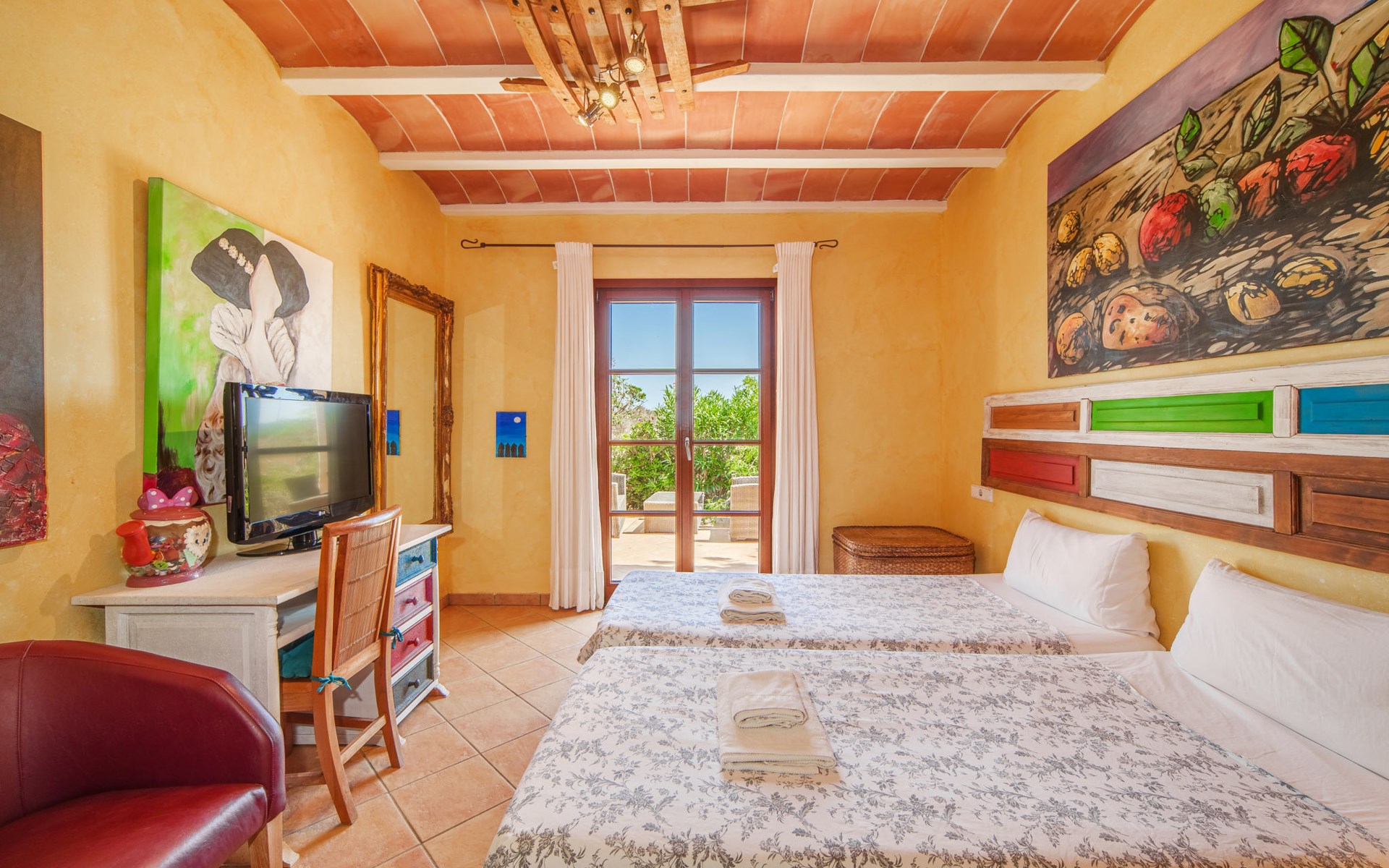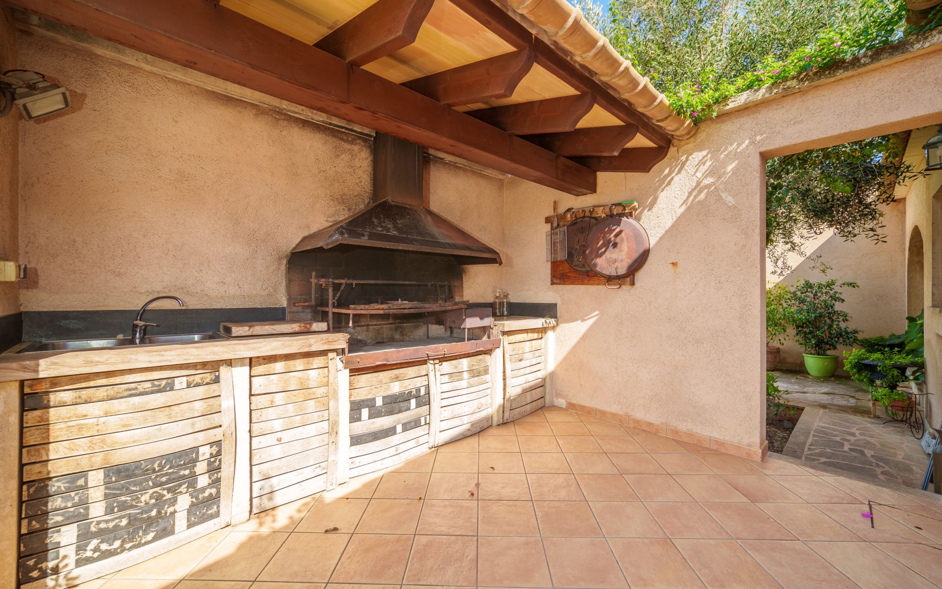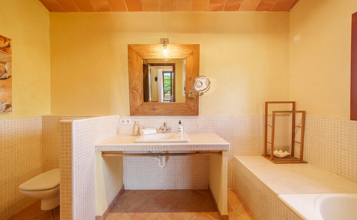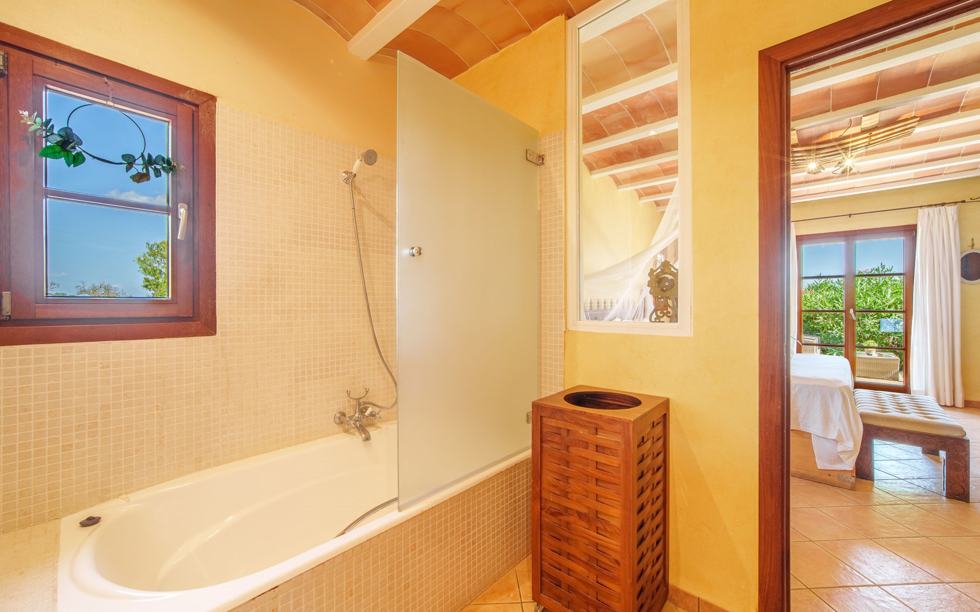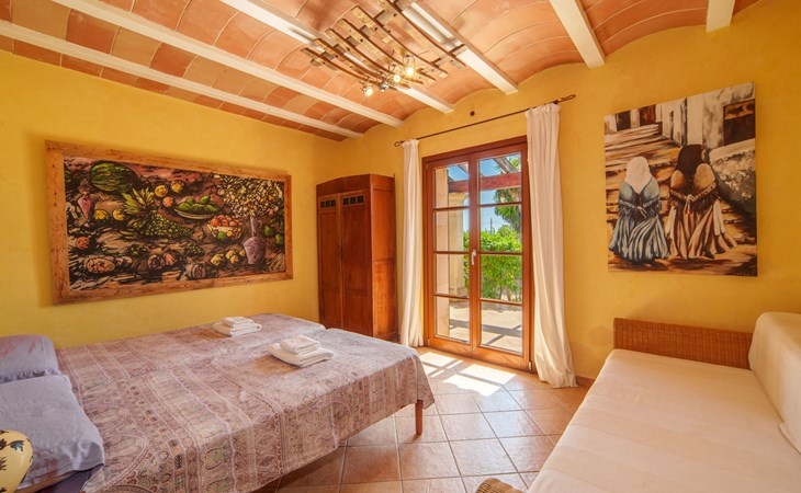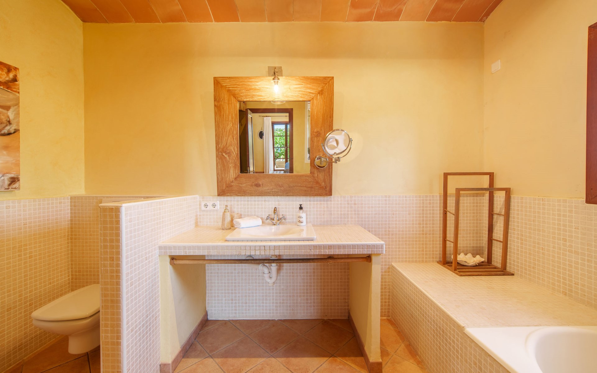 San Blai 3 km from Campos: Large, cosy, comfortable villa "San Blai Llum de Sal", surrounded by trees. 3 km from the edge of the forest, 13 km from the sea, 13 km from the beach. Private: natural garden, swimming pool (8 x 4 m, depth 250 - 250 cm, seasonal availability: 01.Mar. - 31.Oct.). Patio, pergola, garden furniture, barbecue, pool maintenance by the owner/gardener. In the house: WiFi, washing machine, heating to be paid on the spot (01.Nov. - 31.Mar.). Roofed, parking. Shop 3 km, grocery 3 km, supermarket 3 km, shopping centre 3 km, restaurant 3 km, bar 3 km, bakery 3 km, café 3 km, pedestrian zone 3 km, bus stop "Campos" 3 km, railway station "Manacor" 27 km, sandy beach "Sa Rápita" 13 km. Sports harbour 13 km, marina 13 km, golf course (18 hole) 20 km, sailing school 13 km. Nearby attractions: Platja d’es Trenc 13 km, Sa Plasa de Campos 3 km, Santanyi 10 km. Please note: car recommended. Baby equipment on request (included). The owner does not accept any youth groups. Loading and unloading of baggage is possible at the holiday house. Airfield 30 km from the property.