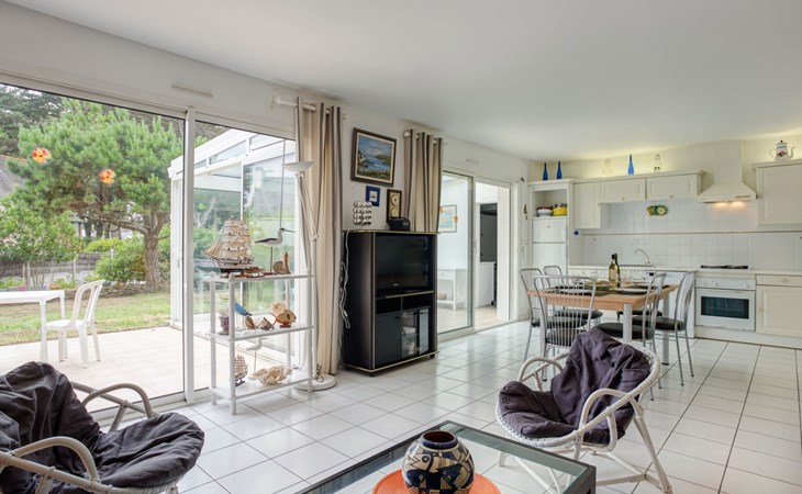 Saint Pierre Quiberon: Single-family house "Ty Jeanne", 2 storeys. In the district of Penthièvre, 60 m from the sea, from the beach. Shop 4 km, supermarket 4 km, restaurant 300 m, bar, bakery 200 m, sandy beach "Grande plage de Penthièvre" 60 m, indoor swimming pool 10 km, thermal baths "Thalassothérapie de Quiberon" 12 km. Surf school 3 km, tennis 1 km. Nearby attractions: Carnac et les Alignments 12 km, La Trinité sur Mer 16 km, Vannes 35 km, Lorient 39 km, Presqu'ile de Quiberon, Belle ile en Mer, Houat, Hoedic. The keys‘ handover takes place by the agency Interhome in Quiberon, 10 km.