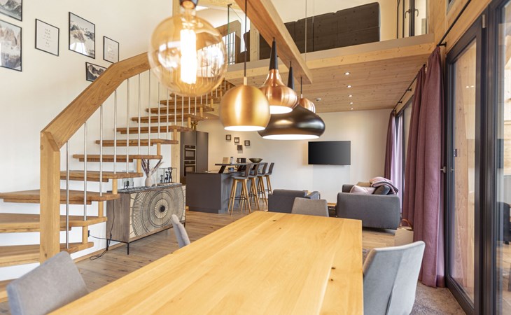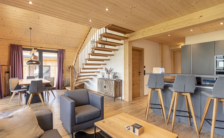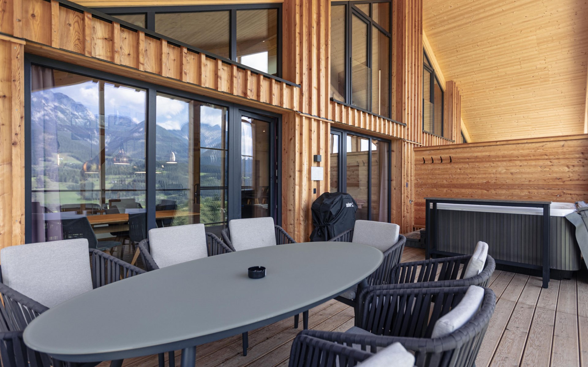 Haus im Ennstal: Modern, comfortable holiday village "Hauser Kaibling by Alps Resorts". Above Haus, in a sunny position on a slope, 5 km from the lake, directly by the skiing area. Private: swimming pool (seasonal availability: 01.Jan. - 31.Dec.). In the house: central heating system. Parking at the house. E-charging station. Supermarket 1 km, restaurant 1 km. Skisport facilities 300 m, ski rental, children's ski school. Well-known ski regions can easily be reached: Hauser Kaibling 300 m, Planai, Reiteralm. Well-known lakes can easily be reached: Freizeitsee Aich 4 km. Hiking paths: Schladminger Tauern. Please note: In case of good snow conditions, the house is accessible on skis. The photograph shows a typical example. All houses/apartments are individually designed/furnished. The holiday properties may differ in living space, floorplan, equipment and furnishing. ATTENTION: Schladming-Dachstein Summer Card included (end of May to end of October).