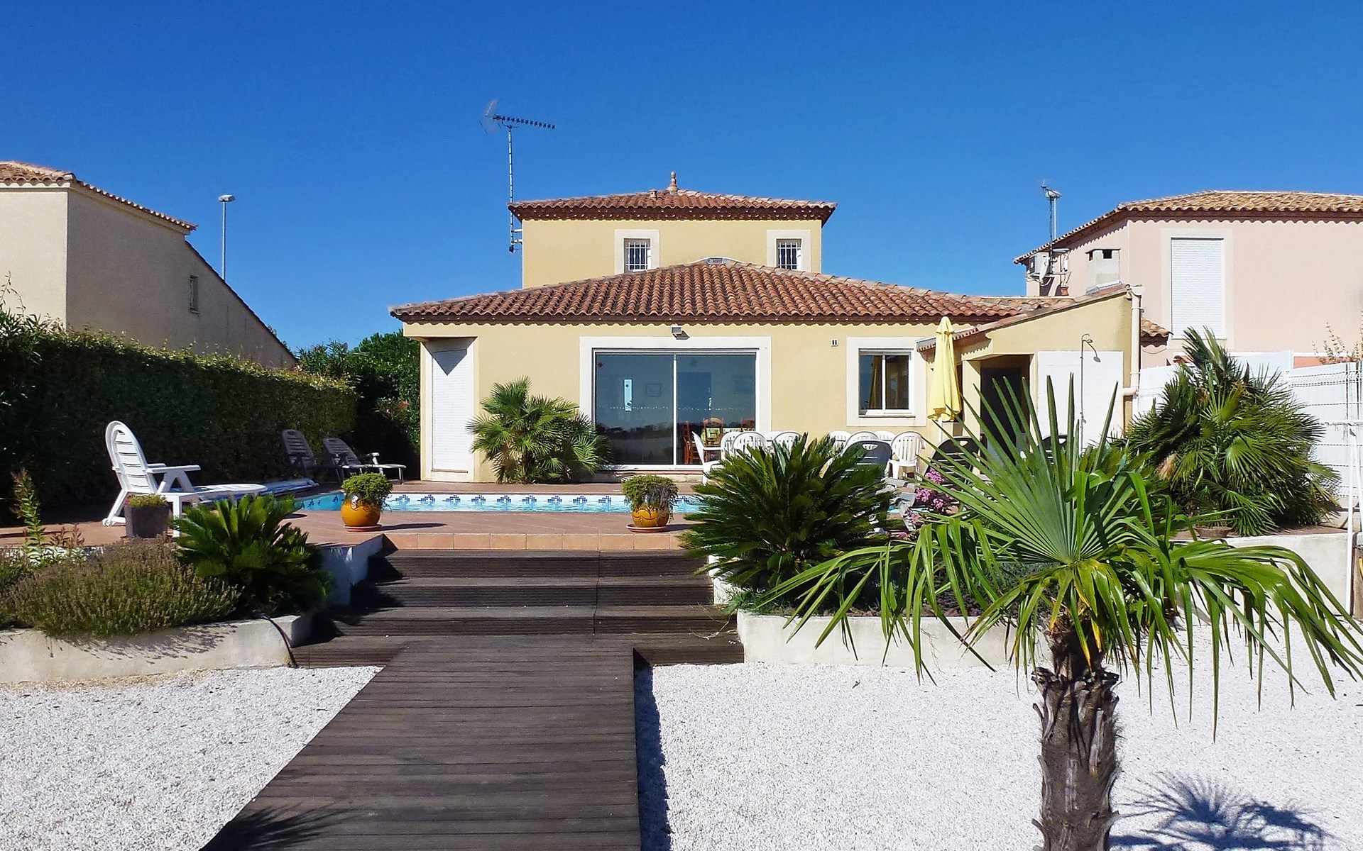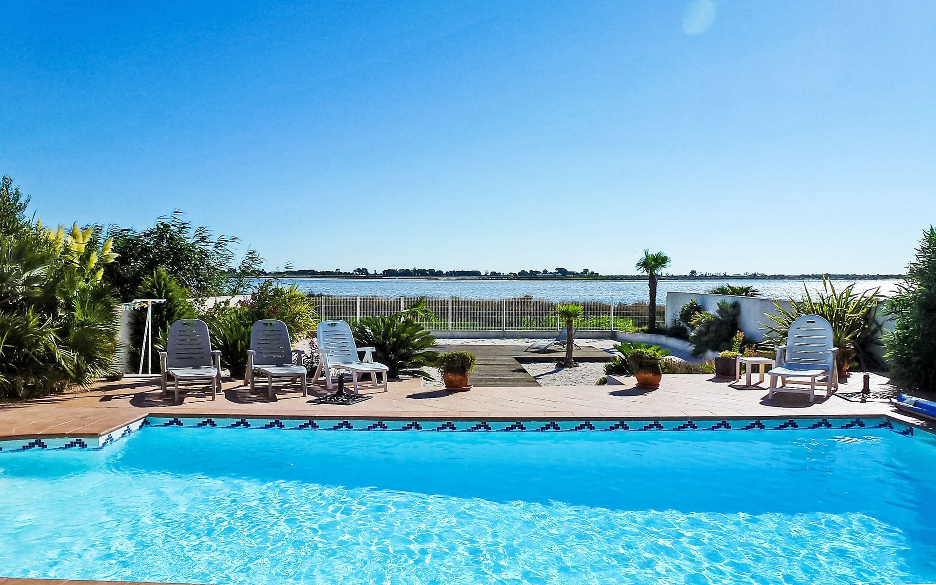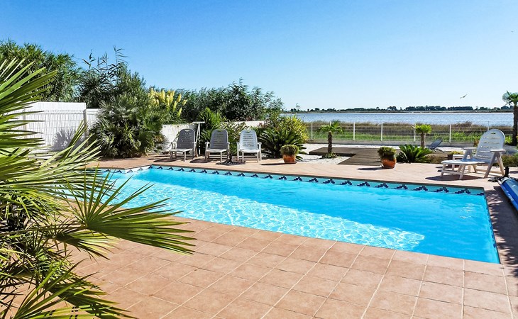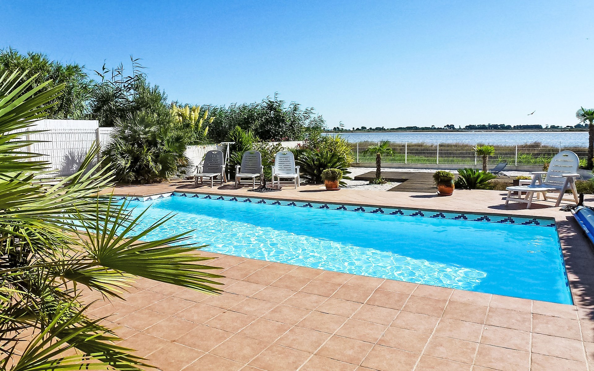 By the side of a small natural canal and the salt marshes. Comfortable villa "Orée des Salines". On the outskirts, in the residential district, 1.9 km from the sea. Private: property 550 m2 (fenced), swimming pool (8 x 4 m, depth 100 - 170 cm, seasonal availability: 15.May. - 15.Oct.) with internal staircase and salt-electrolysis pool-cleaning system. Outdoor shower, pool house with fridge, terrace (100 m2), barbecue. Shop 1 km, supermarket 1 km, sandy beach "Nord" 1.9 km, outdoor swimming pool 2 km, thermal baths "Thalazur Port Camargue" 4.7 km. Golf course (42 hole) 10 km, riding stable 1.4 km. Nearby attractions: Casino Flamingo 550 m, Seacquarium 1.9 km, Arènes Grau du Roi 3.1 km, Aigues Mortes 6 km, Grande Motte 12 km, Nîmes 49 km. Hiking paths: P13. Please note: the keys‘ handover takes place by the agency Interhome in Port Camargue, 2 km. Airfield 24 km from the property. . Landscape garden, 250 m2, below the house, access via 5 steps. Lovely view of the salt marshes and the Camargue.