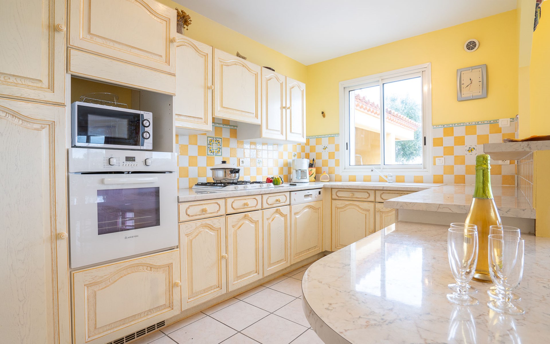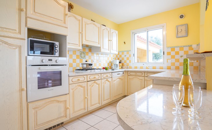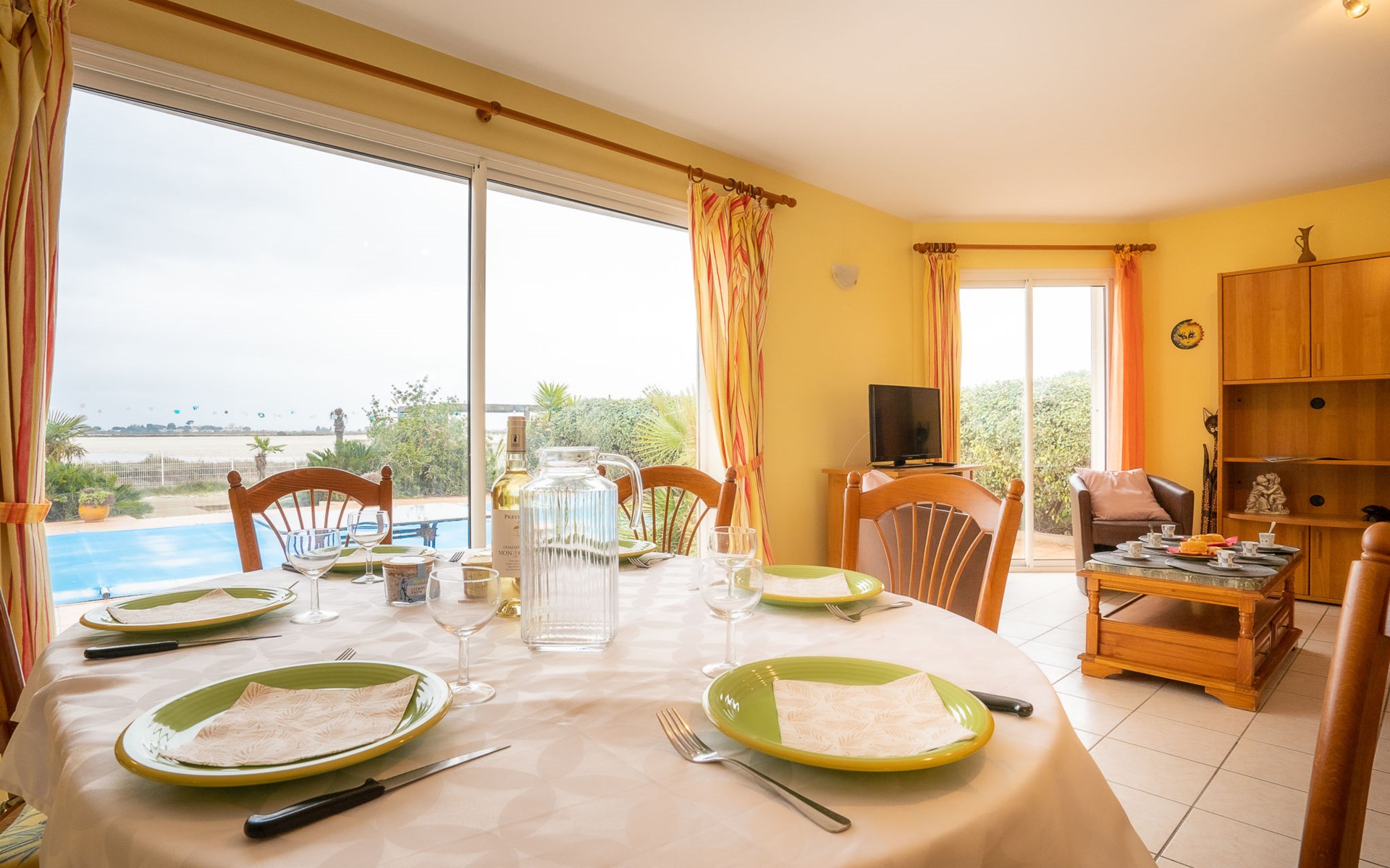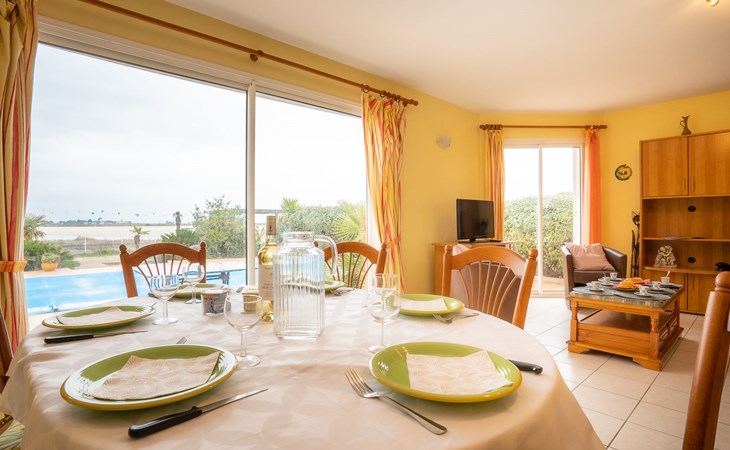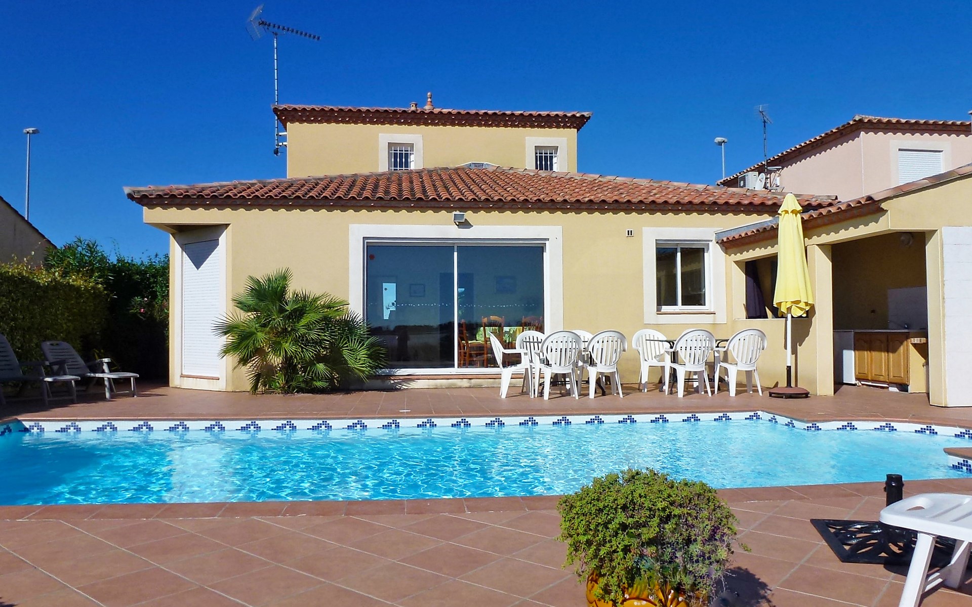 By the side of a small natural canal and the salt marshes. Comfortable villa "Orée des Salines". On the outskirts, in the residential district, 1.9 km from the sea. Private: property 550 m2 (fenced), swimming pool (8 x 4 m, depth 100 - 170 cm, seasonal availability: 15.May. - 15.Oct.) with internal staircase and salt-electrolysis pool-cleaning system. Outdoor shower, pool house with fridge, terrace (100 m2), barbecue. Shop 1 km, supermarket 1 km, sandy beach "Nord" 1.9 km, outdoor swimming pool 2 km, thermal baths "Thalazur Port Camargue" 4.7 km. Golf course (42 hole) 10 km, riding stable 1.4 km. Nearby attractions: Casino Flamingo 550 m, Seacquarium 1.9 km, Arènes Grau du Roi 3.1 km, Aigues Mortes 6 km, Grande Motte 12 km, Nîmes 49 km. Hiking paths: P13. Please note: the keys‘ handover takes place by the agency Interhome in Port Camargue, 2 km. Airfield 24 km from the property. . Landscape garden, 250 m2, below the house, access via 5 steps. Lovely view of the salt marshes and the Camargue.