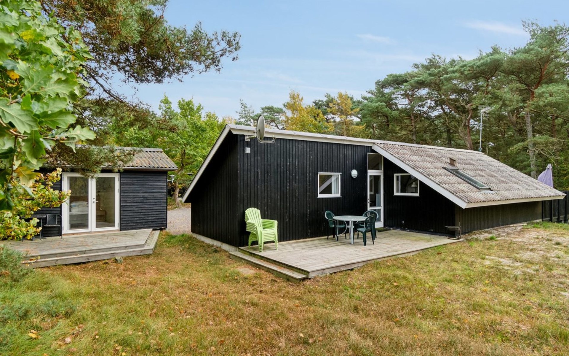 Single-family house, built in 1976. 150 m from the sea. Private: natural state property 1'200 m2. Terrace (50 m2). In the house: washing machine. Parking at the house. Grocery 3 km. Golf course 4.5 km. The owner does not accept any youth groups.