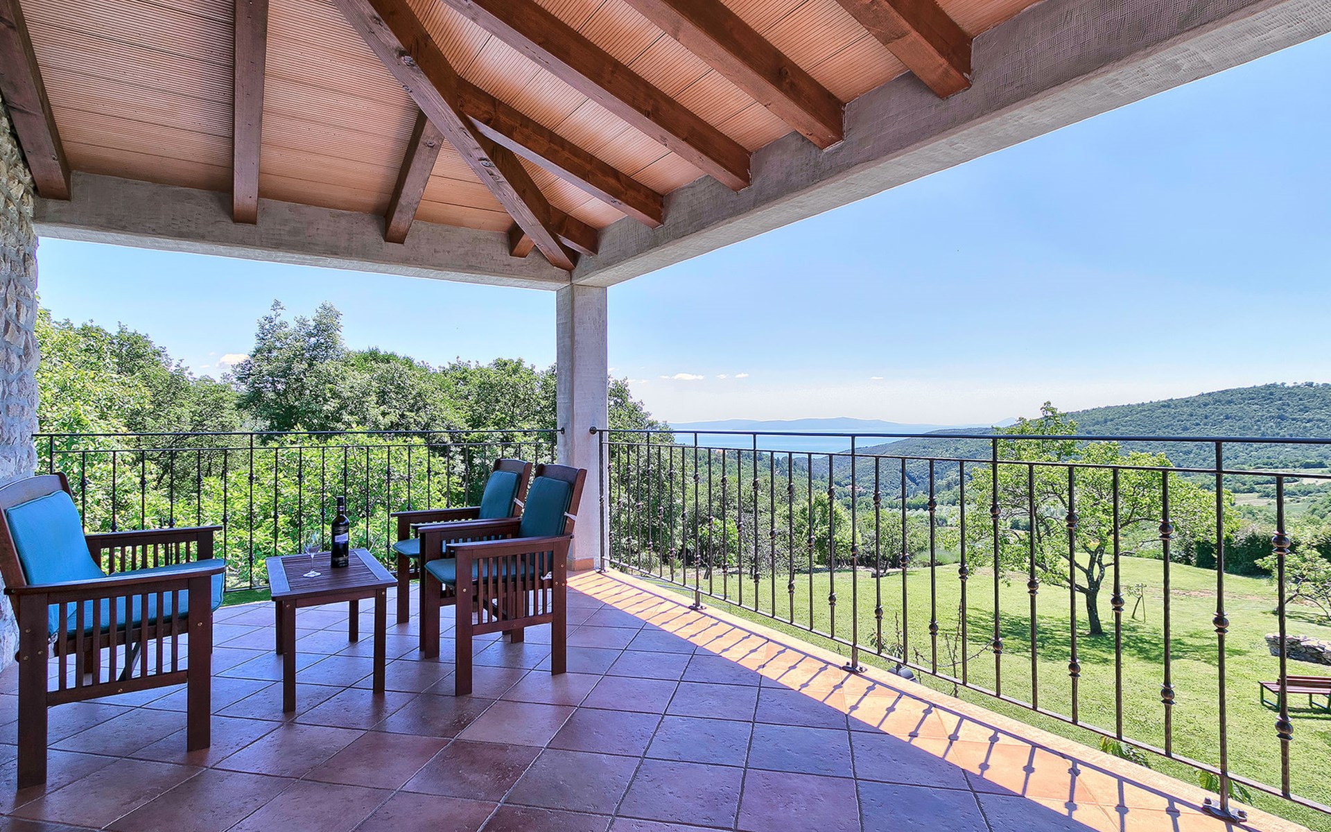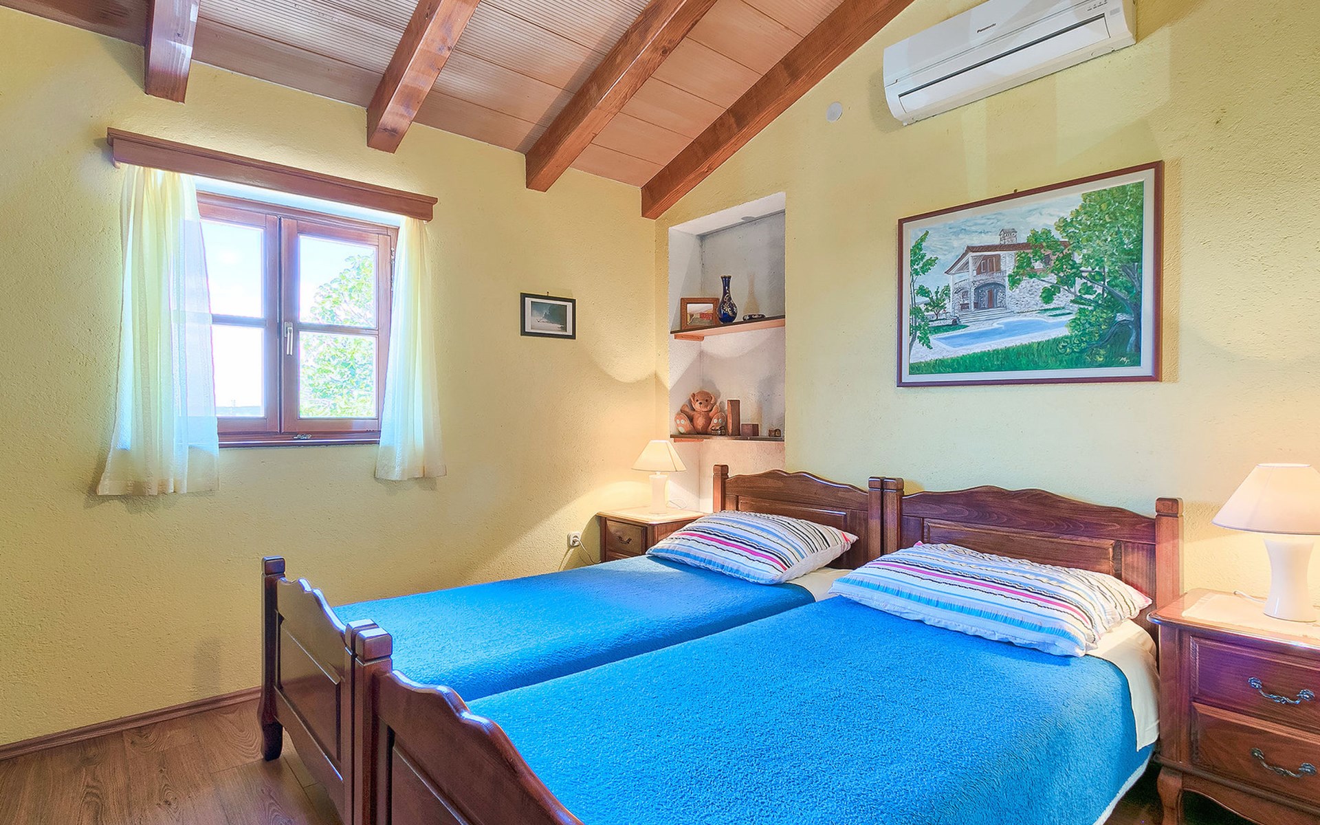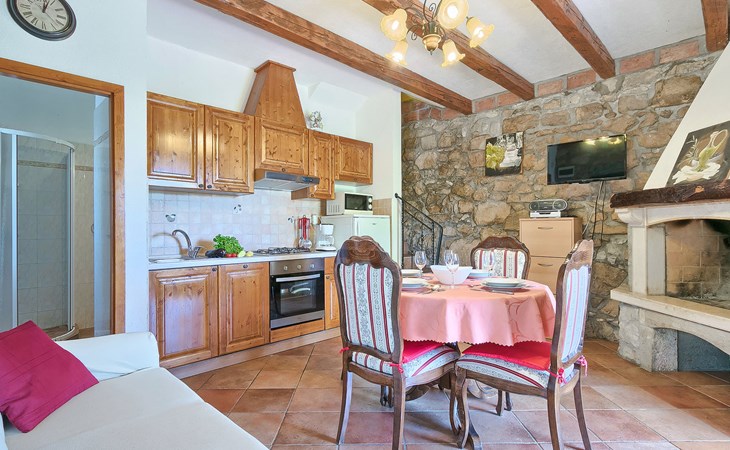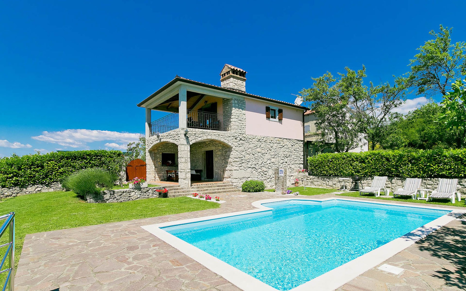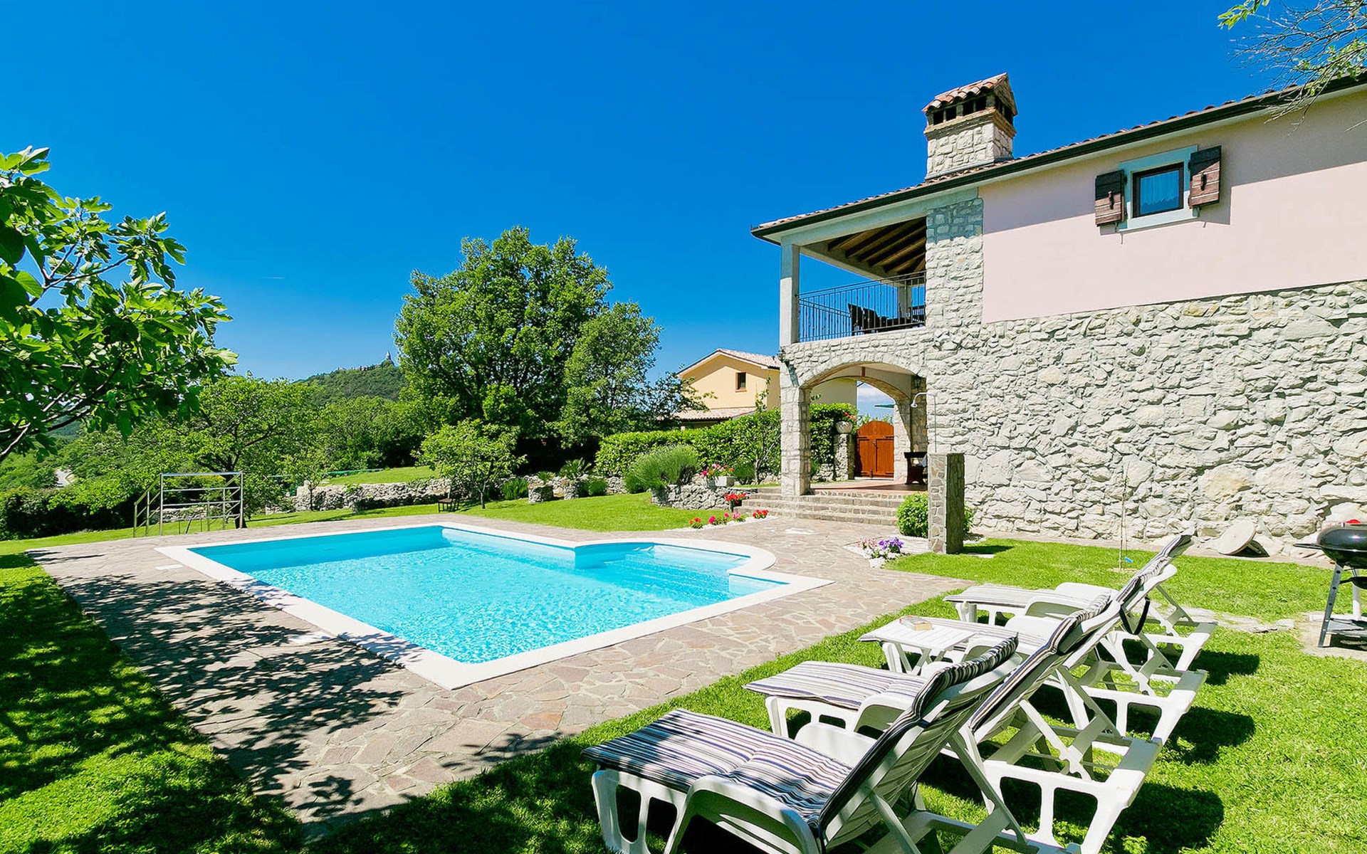Beautiful single-family house "Panorama 2", 2 storeys. In the district of Čekadi 700 m from the centre of Labin, in a quiet, sunny, elevated position, 5 km from the sea, in the countryside. Private: property 7'000 m2, beautiful garden with lawn, swimming pool angular (8 x 4 m, depth 140 cm, seasonal availability: 21.Mar. - 01.Nov.) with internal staircase. Outdoor shower, pool maintenance by the owner/gardener. In the house: internet access, sauna (extra). Hot tub (extra). Relaxation room, spa area in 50 m (extra), washing machine. Parking at the house on the premises. Shop 300 m, supermarket 1.2 km, restaurant 1.2 km, bus stop 1.1 km, pebble beach 5 km. Riding stable 3 km, walking paths from the house 100 m, cycle lane 150 m.