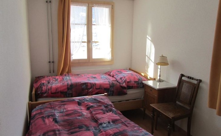 Apartment with 2 rooms in a very quiet environment. There is 1 double bedroom, one room with 2 single beds and in the living kitchen is a sofa bed, which can be transformed in a bed for 1-2 people (for 6 people is the apartment very small). This apartment is furnished useful. In front of the house, there’s a nice terrace and a nice ambiance. Public transport included in the Simmental and Saanenland with the SIMMENTAL CARD: Overnight guests in the Lenk-Simmental holiday region travel free of charge on public transport for excursions with a valid guest card.