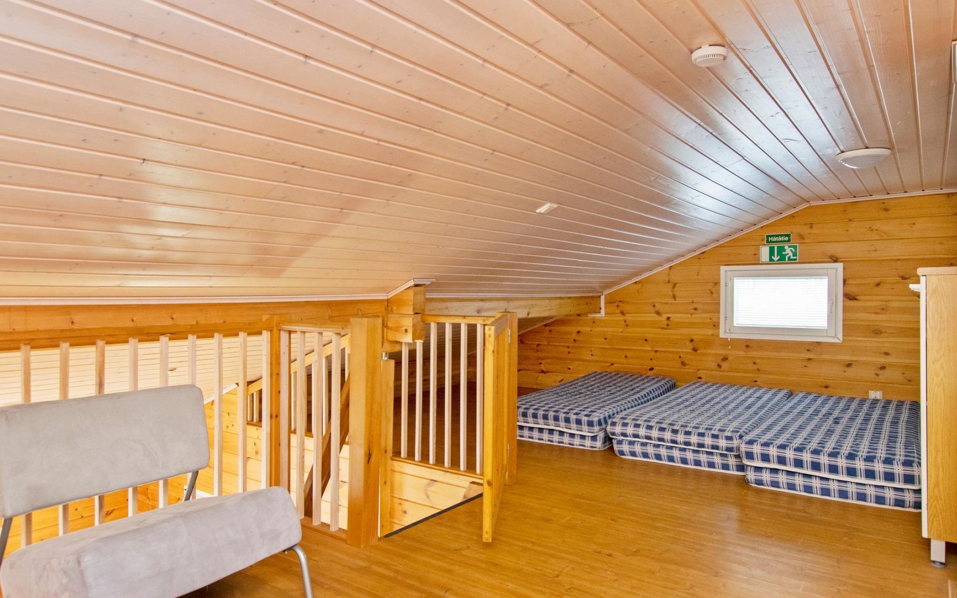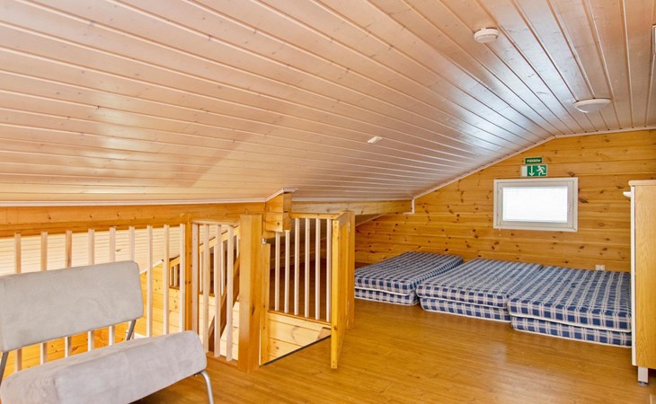 2 beds in the bedroom, a 120 cm double bed in the other bedroom, 4 mattresses on the loft.