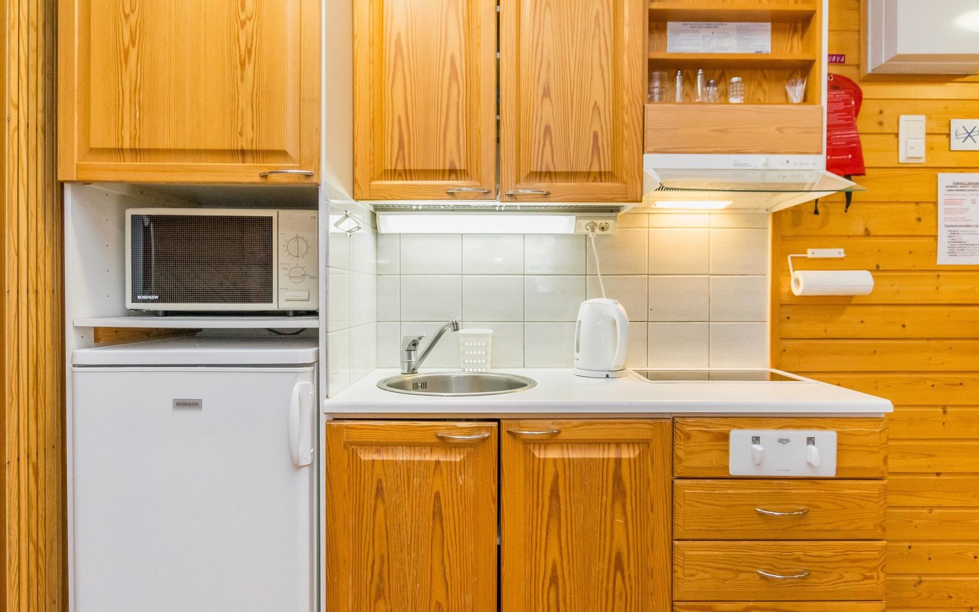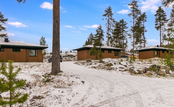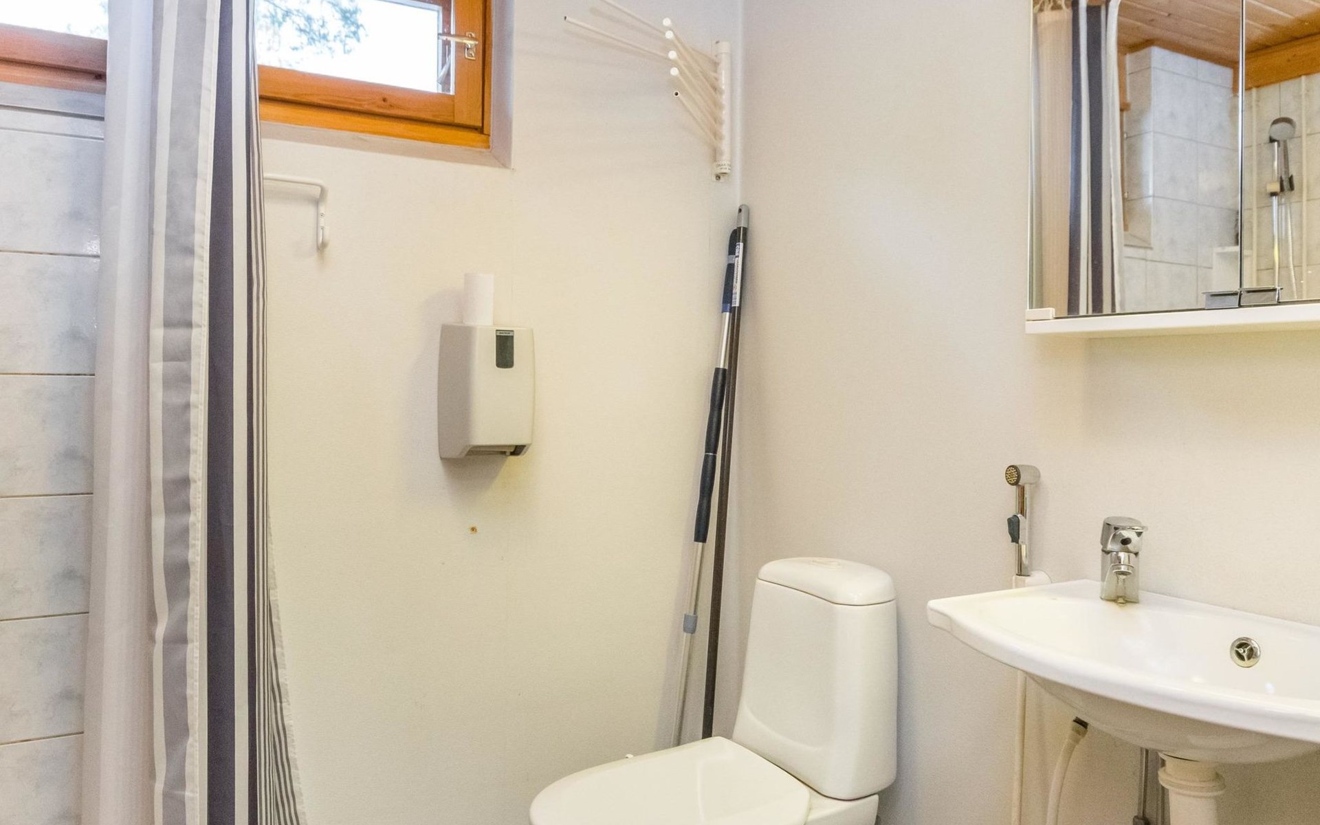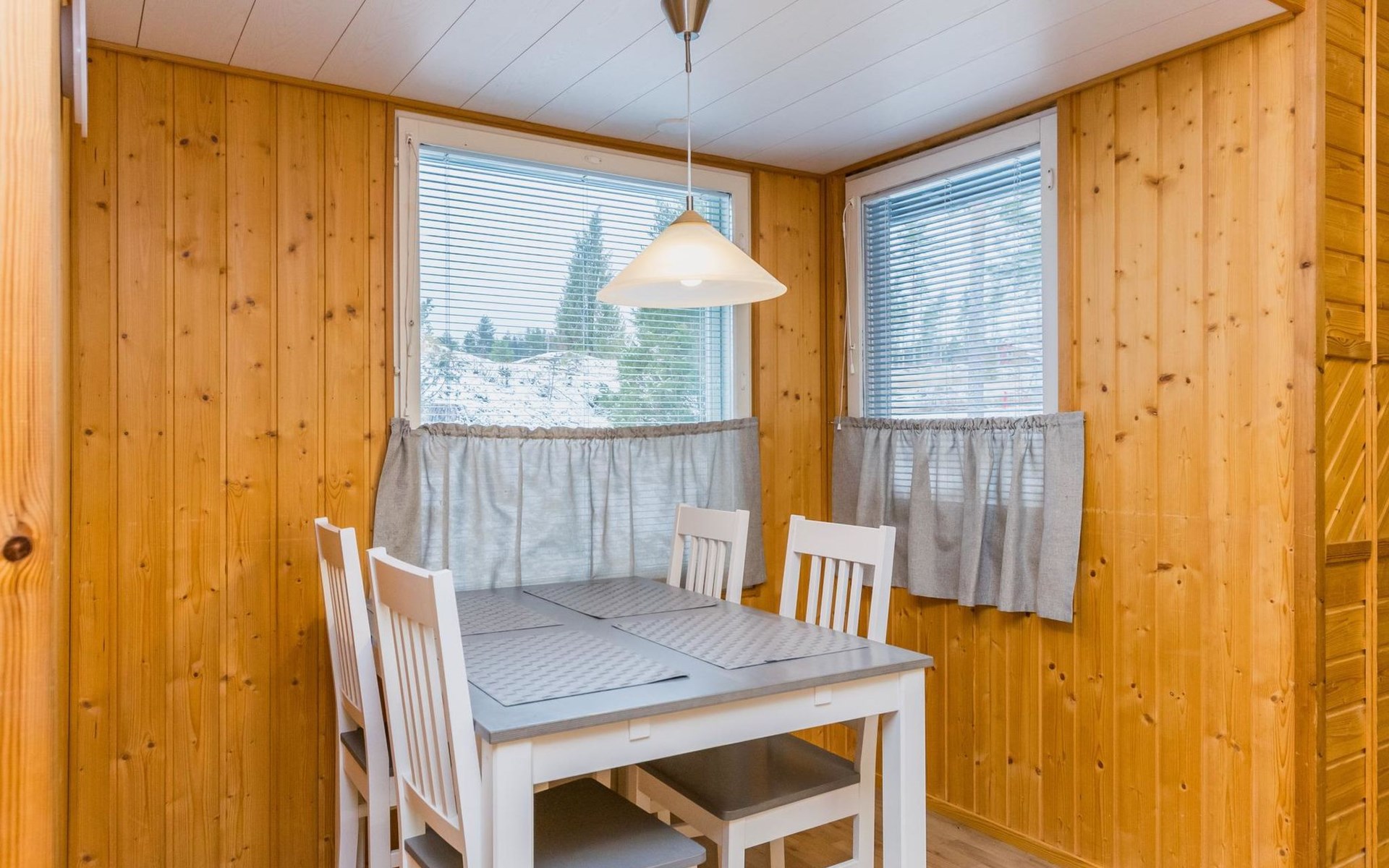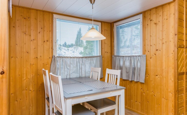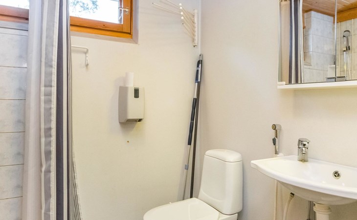 Wooden cabin with boarded outer walls, built in 1985, and refurbished in 2024. A kitchen with two hot plates but no oven, a living room with a sofa bed for two, and a bedroom with two single beds. The washroom features a shower and a WC, and the sauna is equipped with an electric stove.