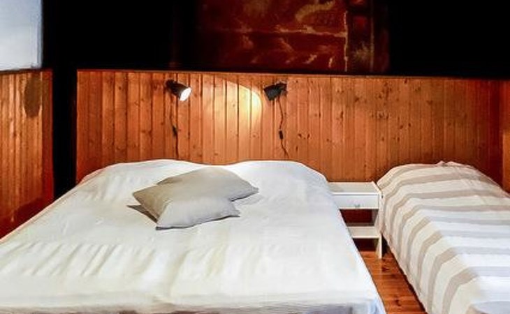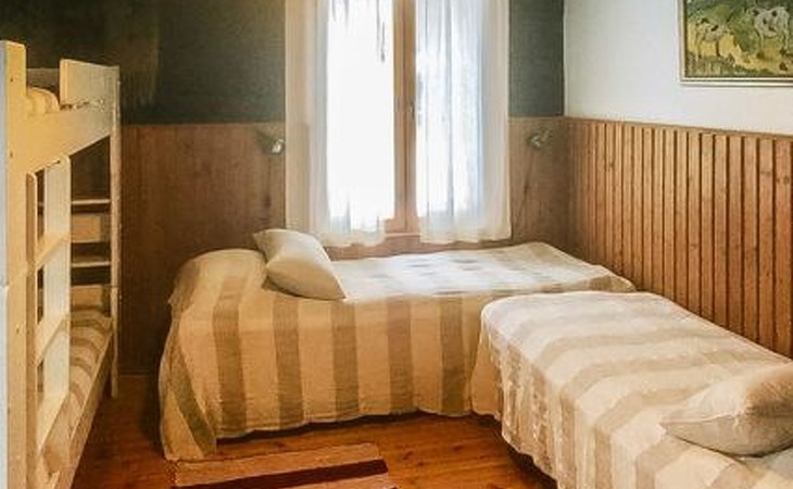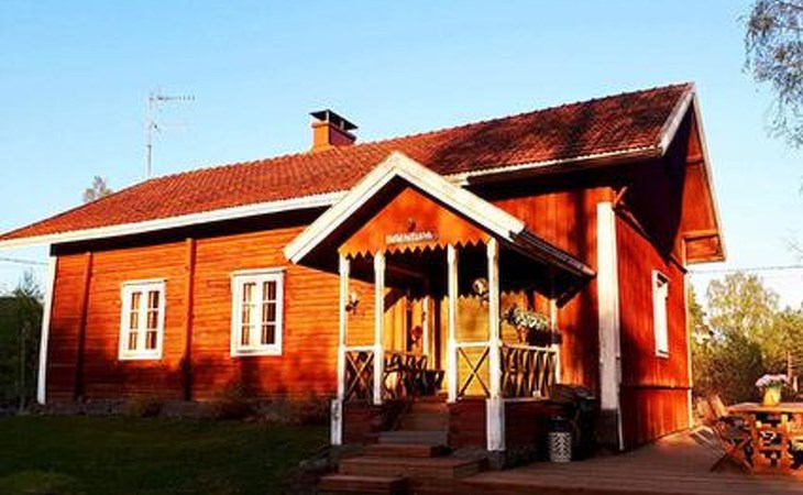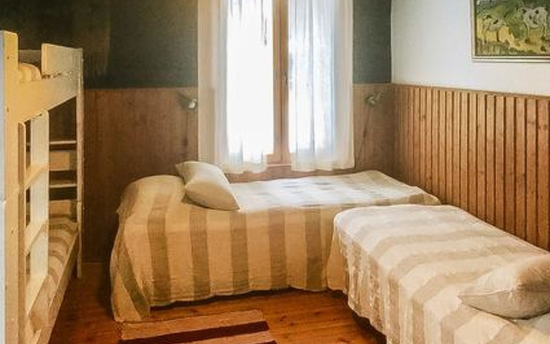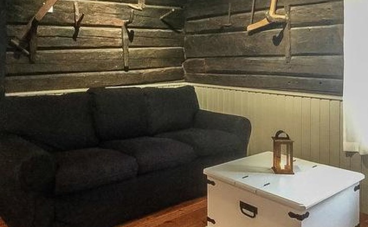 Log house 1888, renovated 2000 and 2018, kitchen-living room sofa bed, a bedroom with three beds and a bedroom with two beds and a bunk bed, sauna (electric stove), shower room, entrance hall, wood storage shed, porch, patio.