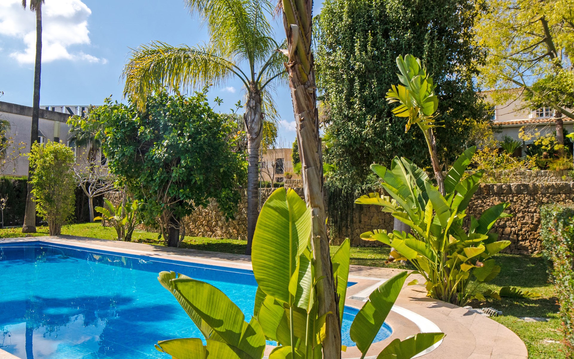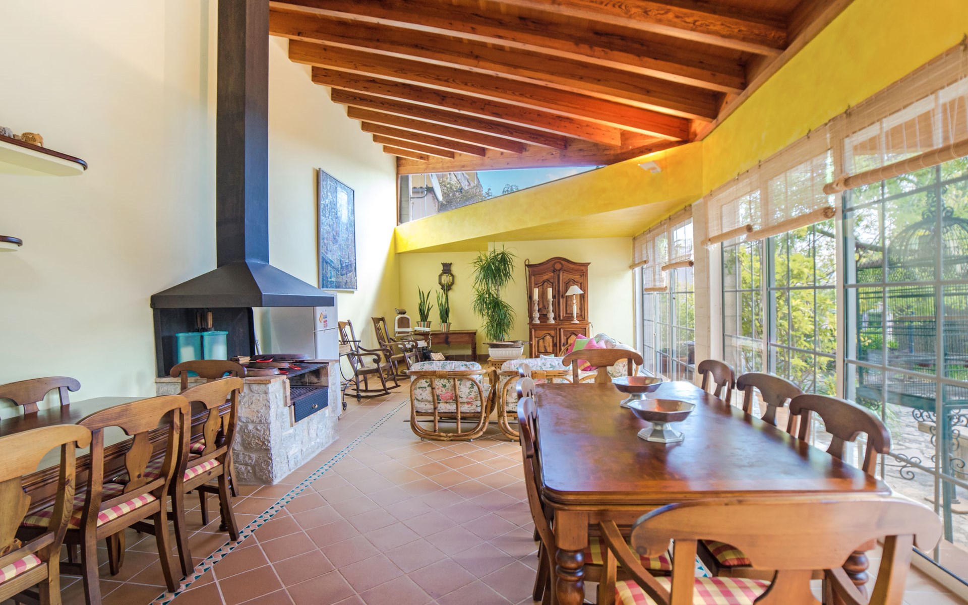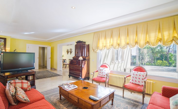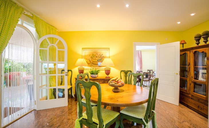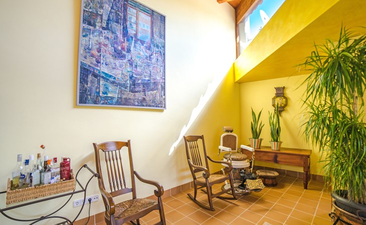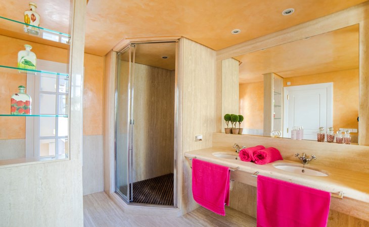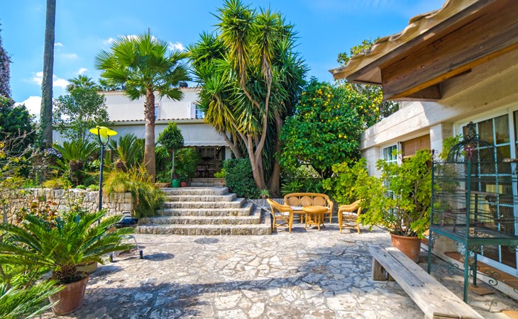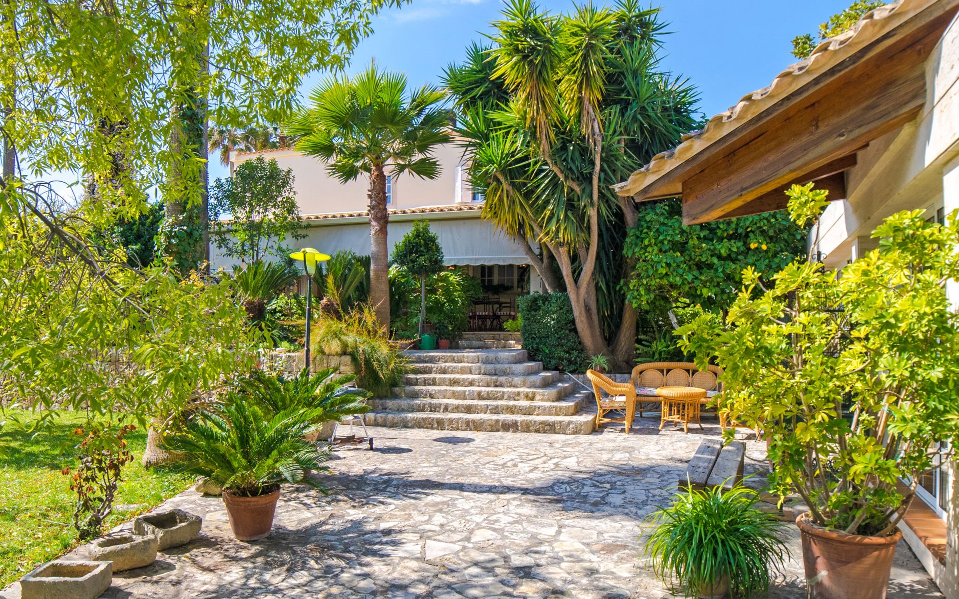 Inca: Very large, beautiful, luxurious villa "Villa Can Mandol", 2 storeys. In the resort Inca, in a sunny position, 22 km from the sea, 22 km from the beach. Private: large, beautiful, well-kept garden with lawn and trees, swimming pool angular (10 x 5 m, depth 200 cm, seasonal availability: 01.Jan. - 31.Dec.). Outdoor shower, pool house with fridge, shower, WC and cooking stove, patio, arbour, pergola, garden furniture, barbecue, barbecue house. In the house: internet access, WiFi, central heating system, air conditioning, washing machine. Parking at the house on the premises. Shop, grocery, supermarket 500 m, restaurant, bar 10 m, bakery 200 m, café, internet café, pub garden 10 m, bus stop "Inca" 2 km, railway station "Inca" 2 km, sandy beach "Port Alcúdia" 25 km, shingle beach "Alcanada Alcúdia" 27 km. Sports harbour 25 km, marina 25 km, golf course (18 hole) 27 km. Please note: suitable for families, suitable for seniors. Object suitable for 8 adults groups of teenagers on request only. Loading and unloading of baggage is possible at the holiday house. Airfield 40 km from the property.