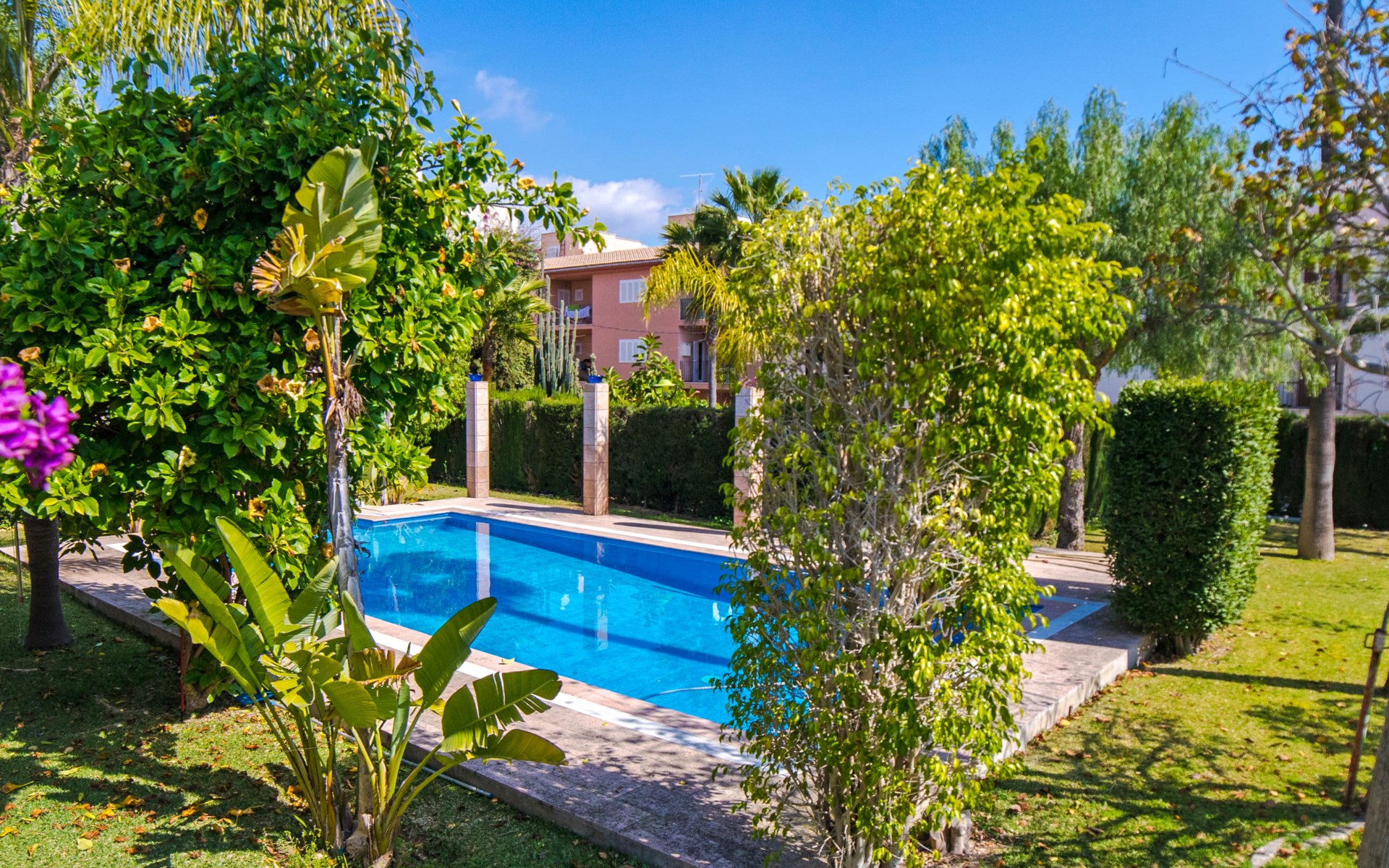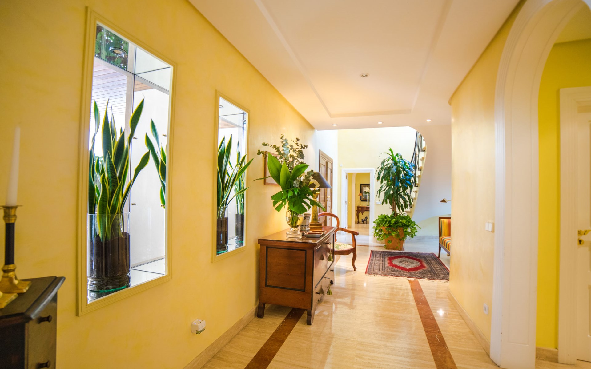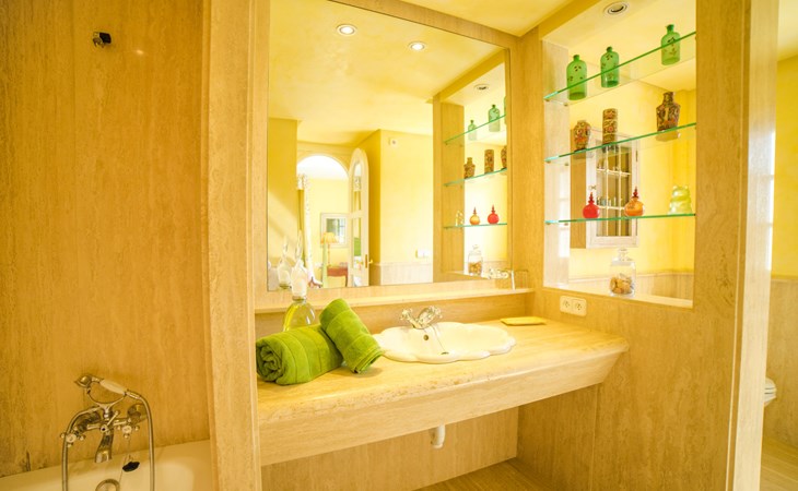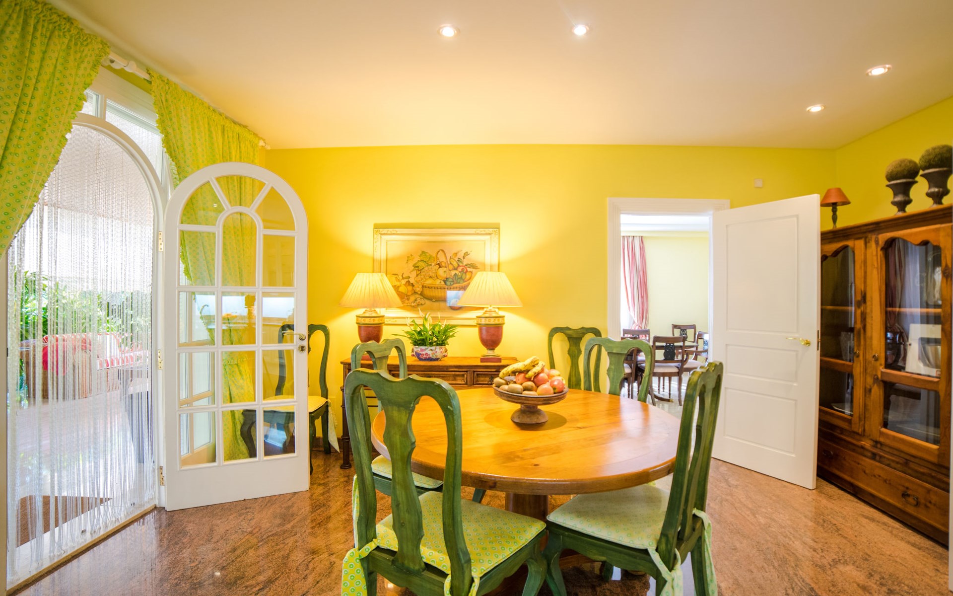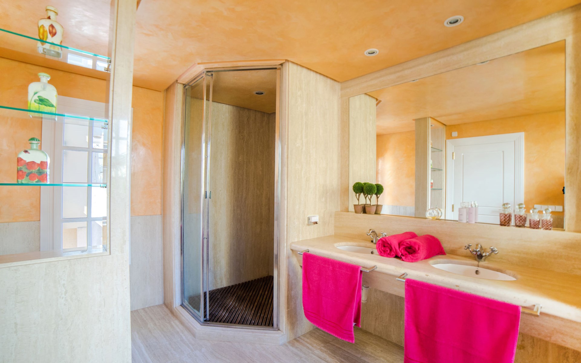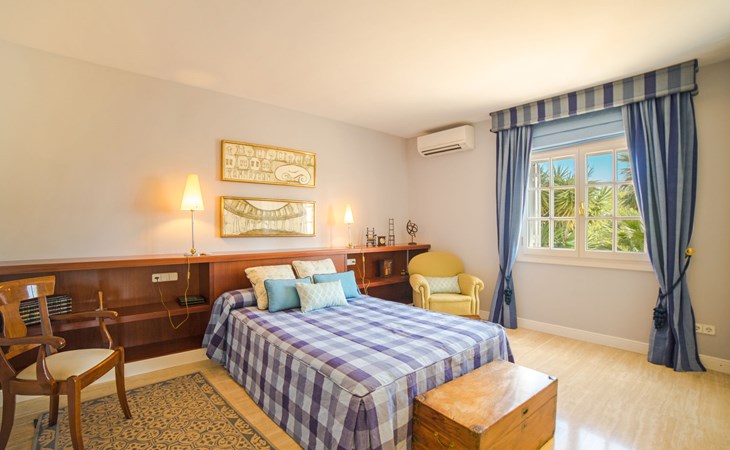 Inca: Very large, beautiful, luxurious villa "Villa Can Mandol", 2 storeys. In the resort Inca, in a sunny position, 22 km from the sea, 22 km from the beach. Private: large, beautiful, well-kept garden with lawn and trees, swimming pool angular (10 x 5 m, depth 200 cm, seasonal availability: 01.Jan. - 31.Dec.). Outdoor shower, pool house with fridge, shower, WC and cooking stove, patio, arbour, pergola, garden furniture, barbecue, barbecue house. In the house: internet access, WiFi, central heating system, air conditioning, washing machine. Parking at the house on the premises. Shop, grocery, supermarket 500 m, restaurant, bar 10 m, bakery 200 m, café, internet café, pub garden 10 m, bus stop "Inca" 2 km, railway station "Inca" 2 km, sandy beach "Port Alcúdia" 25 km, shingle beach "Alcanada Alcúdia" 27 km. Sports harbour 25 km, marina 25 km, golf course (18 hole) 27 km. Please note: suitable for families, suitable for seniors. Object suitable for 8 adults groups of teenagers on request only. Loading and unloading of baggage is possible at the holiday house. Airfield 40 km from the property.