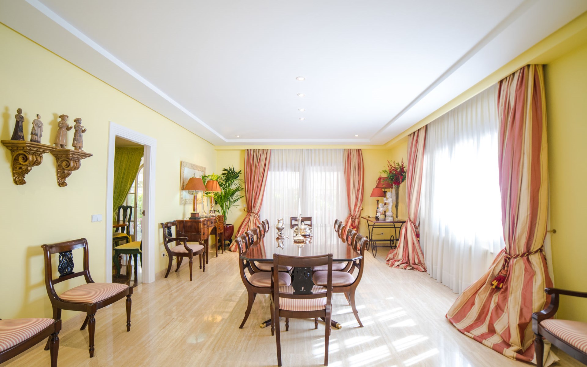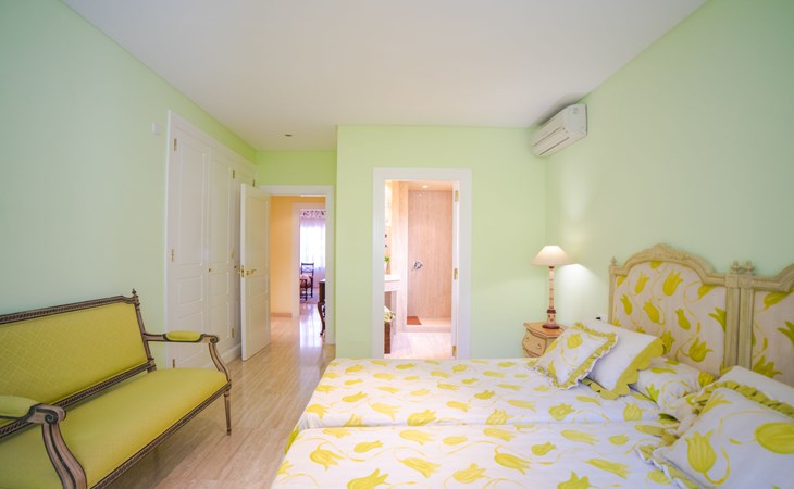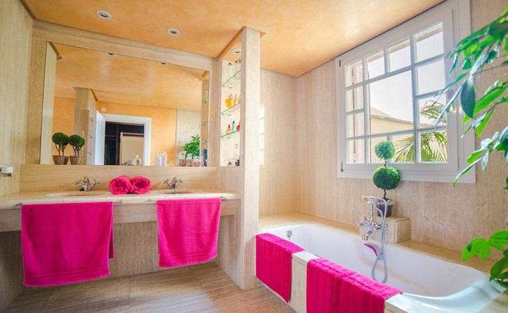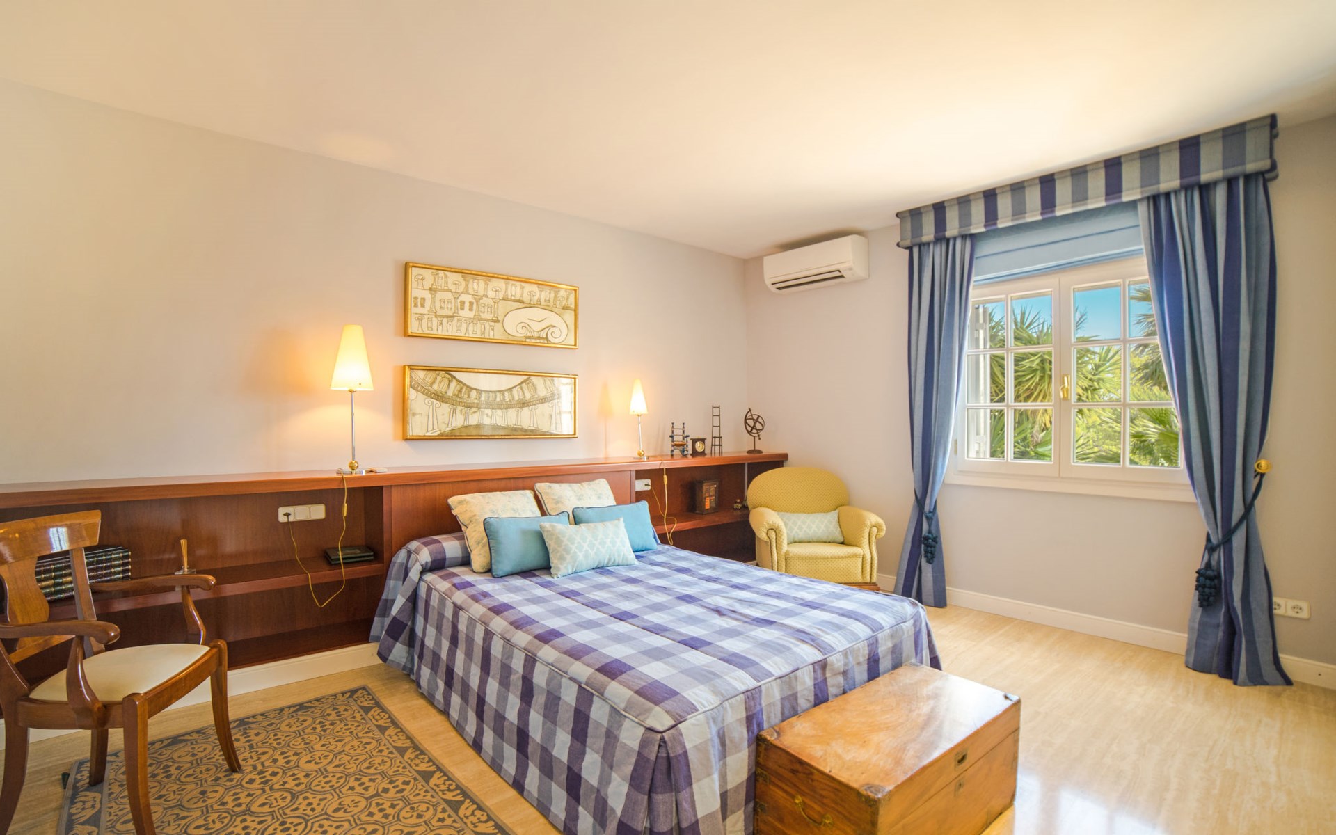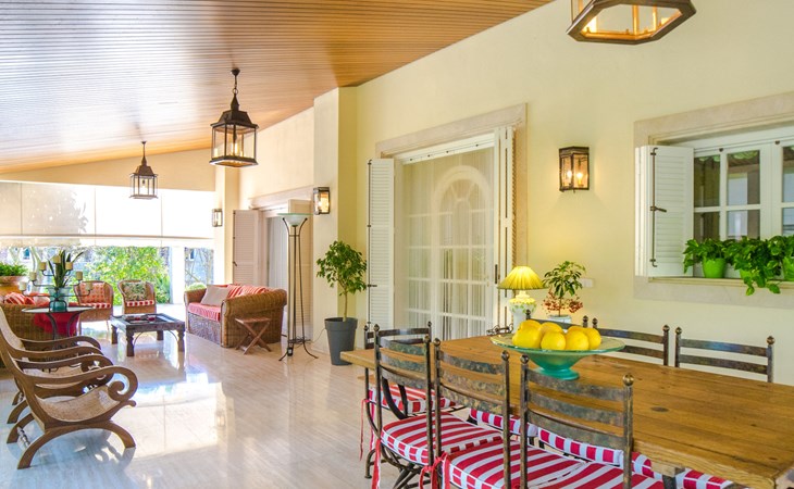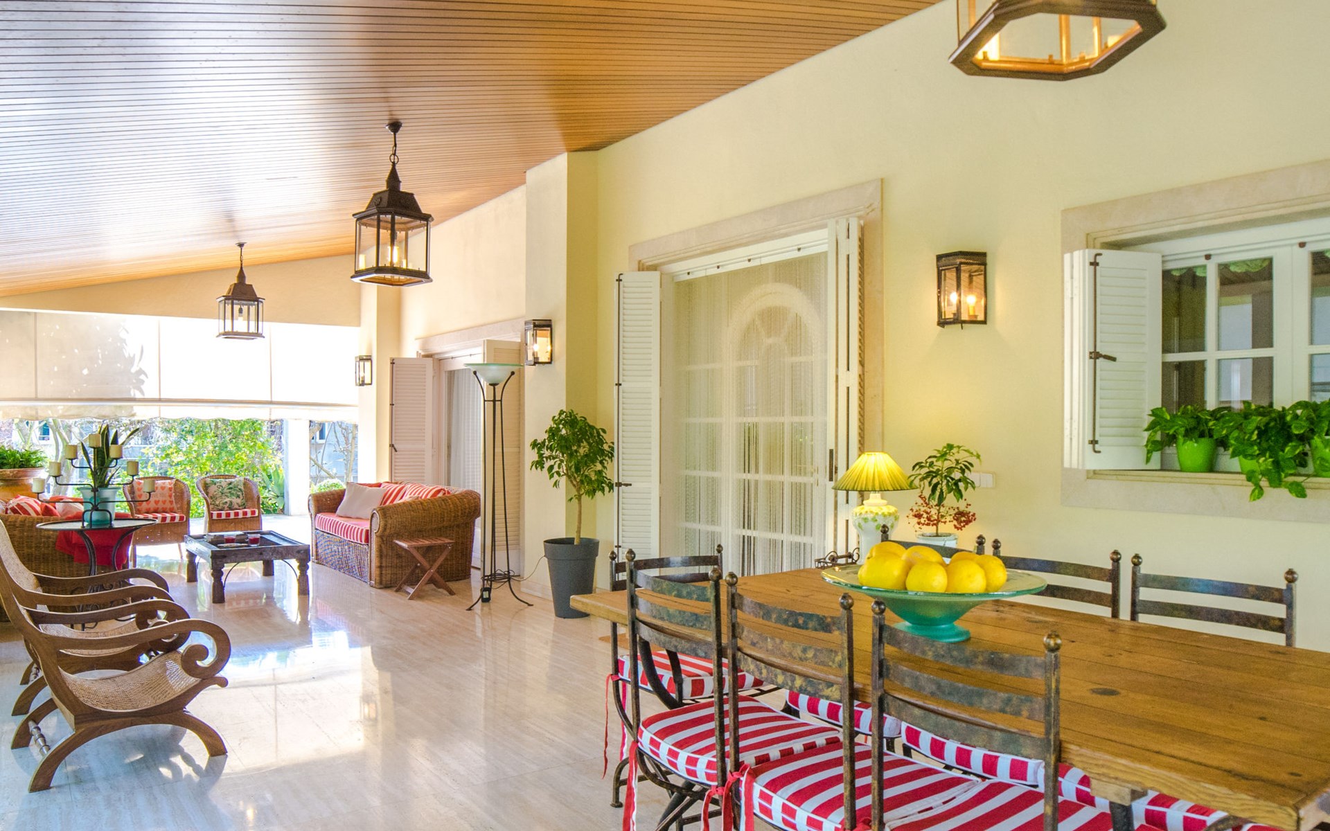 Inca: Very large, beautiful, luxurious villa "Villa Can Mandol", 2 storeys. In the resort Inca, in a sunny position, 22 km from the sea, 22 km from the beach. Private: large, beautiful, well-kept garden with lawn and trees, swimming pool angular (10 x 5 m, depth 200 cm, seasonal availability: 01.Jan. - 31.Dec.). Outdoor shower, pool house with fridge, shower, WC and cooking stove, patio, arbour, pergola, garden furniture, barbecue, barbecue house. In the house: internet access, WiFi, central heating system, air conditioning, washing machine. Parking at the house on the premises. Shop, grocery, supermarket 500 m, restaurant, bar 10 m, bakery 200 m, café, internet café, pub garden 10 m, bus stop "Inca" 2 km, railway station "Inca" 2 km, sandy beach "Port Alcúdia" 25 km, shingle beach "Alcanada Alcúdia" 27 km. Sports harbour 25 km, marina 25 km, golf course (18 hole) 27 km. Please note: suitable for families, suitable for seniors. Object suitable for 8 adults groups of teenagers on request only. Loading and unloading of baggage is possible at the holiday house. Airfield 40 km from the property.