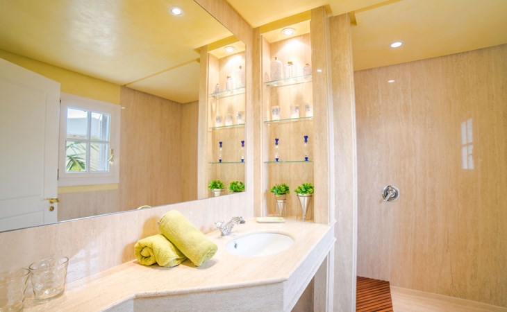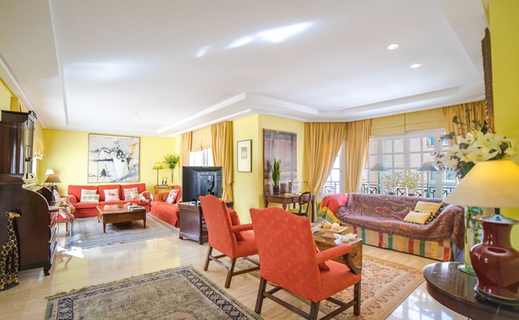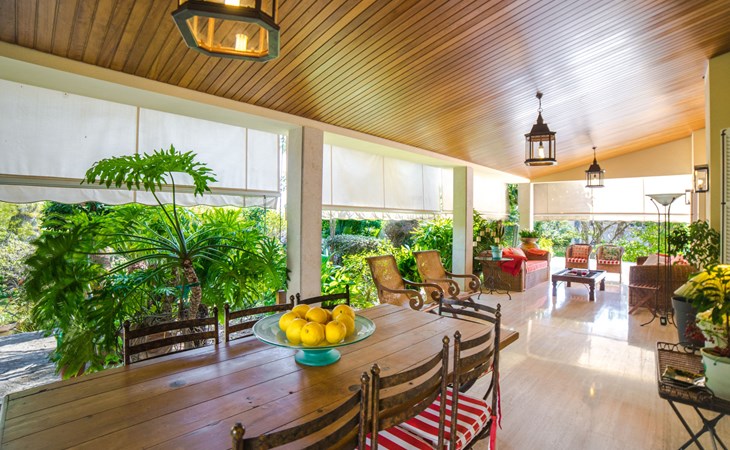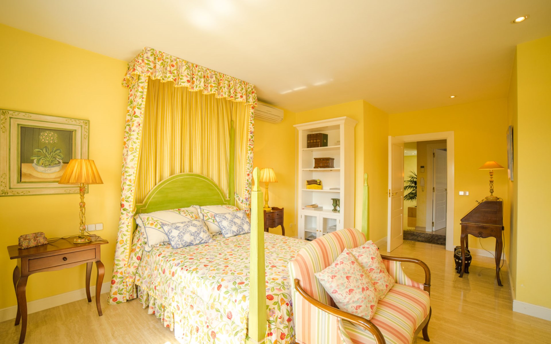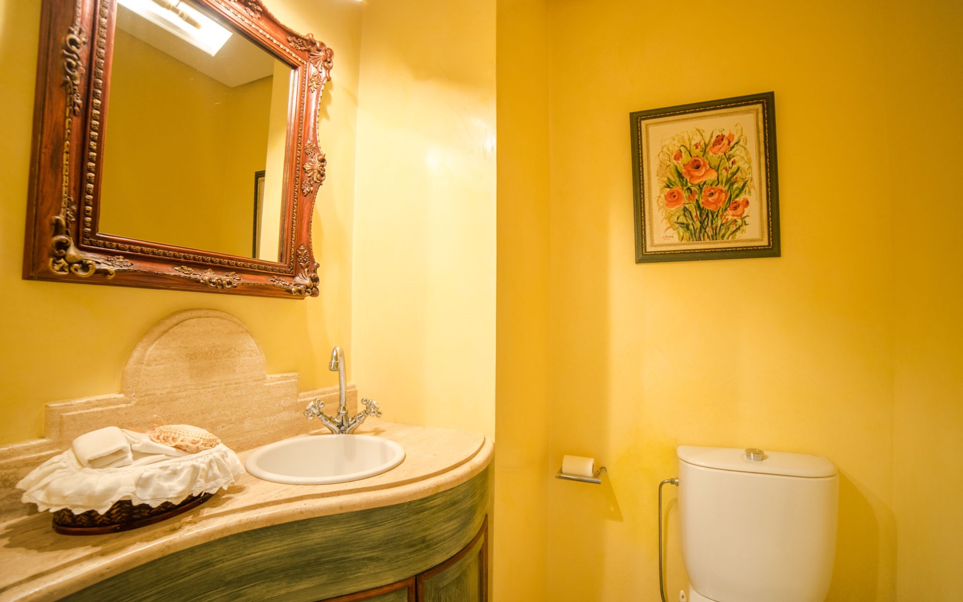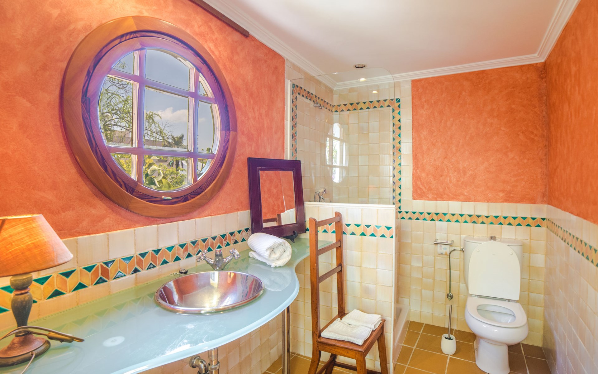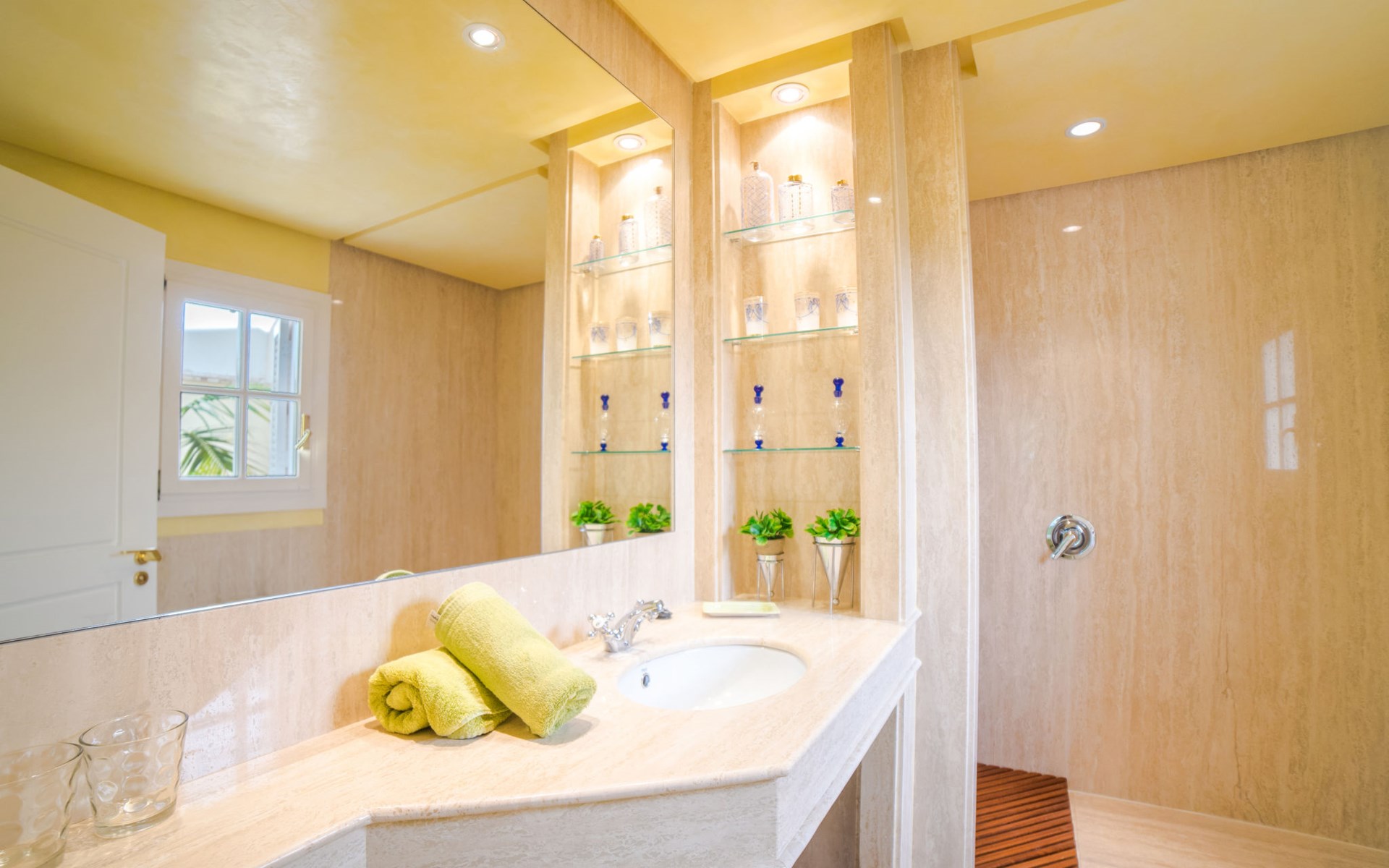 Inca: Very large, beautiful, luxurious villa "Villa Can Mandol", 2 storeys. In the resort Inca, in a sunny position, 22 km from the sea, 22 km from the beach. Private: large, beautiful, well-kept garden with lawn and trees, swimming pool angular (10 x 5 m, depth 200 cm, seasonal availability: 01.Jan. - 31.Dec.). Outdoor shower, pool house with fridge, shower, WC and cooking stove, patio, arbour, pergola, garden furniture, barbecue, barbecue house. In the house: internet access, WiFi, central heating system, air conditioning, washing machine. Parking at the house on the premises. Shop, grocery, supermarket 500 m, restaurant, bar 10 m, bakery 200 m, café, internet café, pub garden 10 m, bus stop "Inca" 2 km, railway station "Inca" 2 km, sandy beach "Port Alcúdia" 25 km, shingle beach "Alcanada Alcúdia" 27 km. Sports harbour 25 km, marina 25 km, golf course (18 hole) 27 km. Please note: suitable for families, suitable for seniors. Object suitable for 8 adults groups of teenagers on request only. Loading and unloading of baggage is possible at the holiday house. Airfield 40 km from the property.