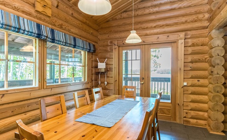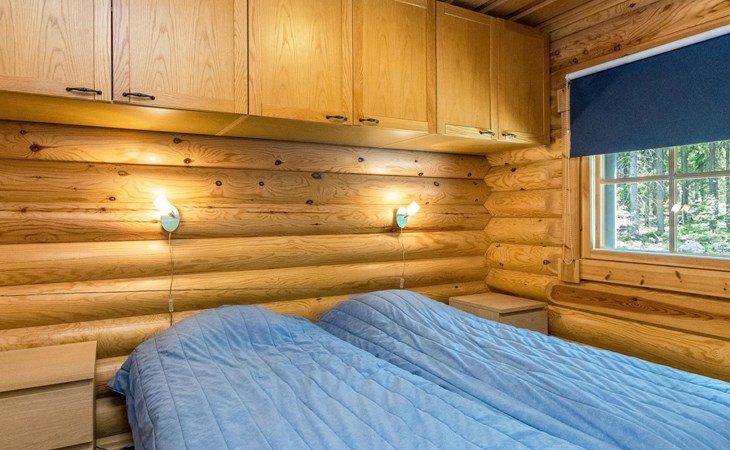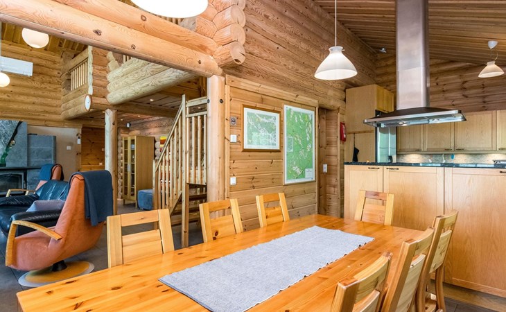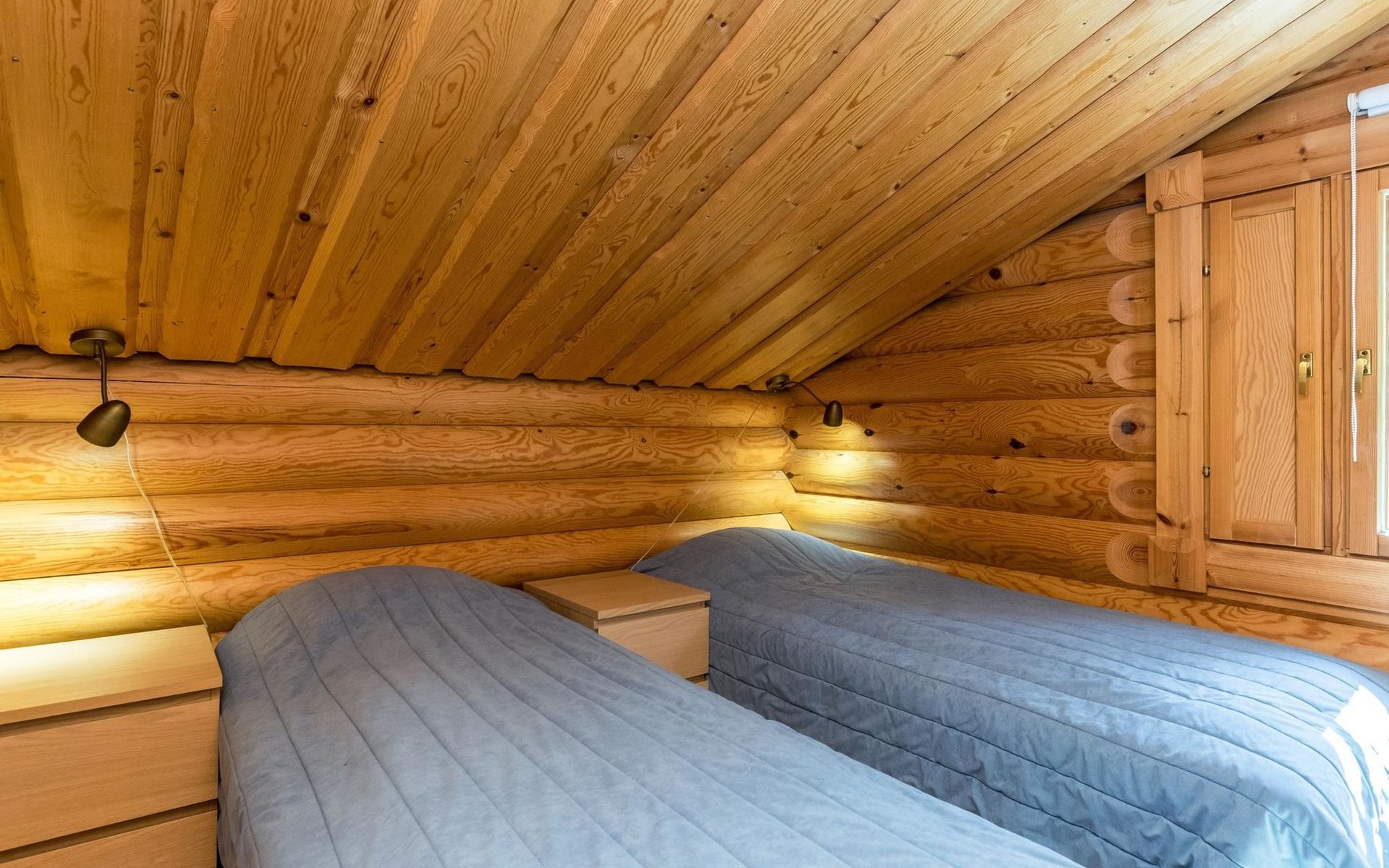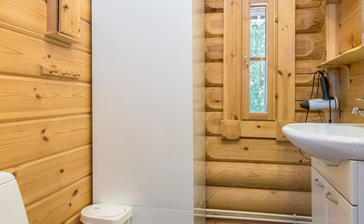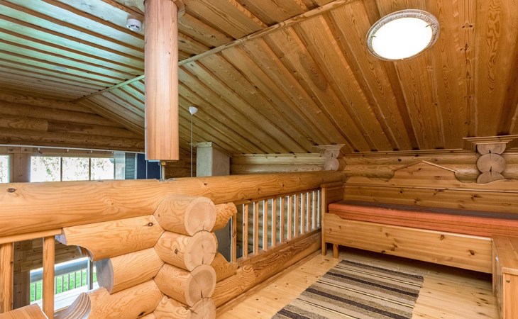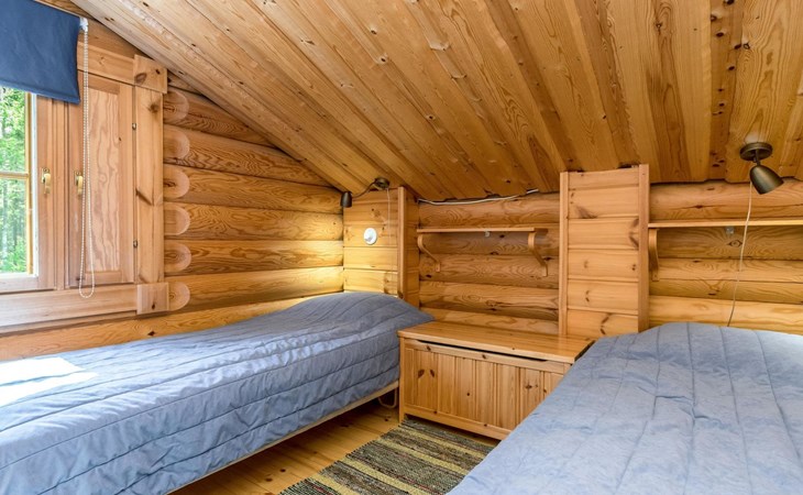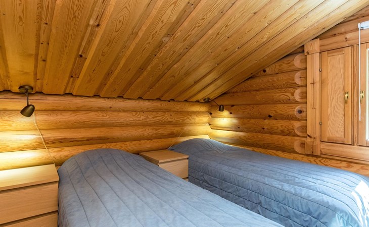 Log cottage 2005, kitchen, dining room, living room, two bedrooms, both with 2 separate beds, washroom, sauna (wood stove), utility room, separate toilet. Upstairs, two bedrooms, each with 2 separate beds. Large covered terrace, barbeque, bio toilet.