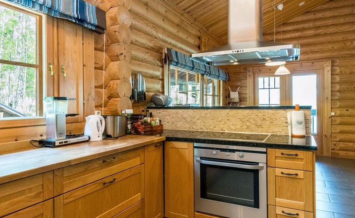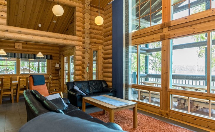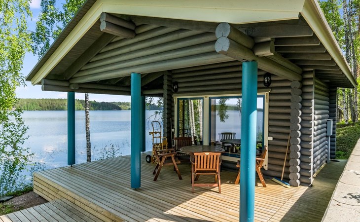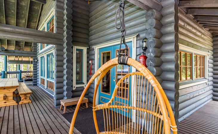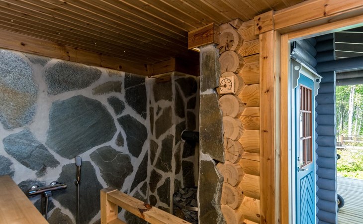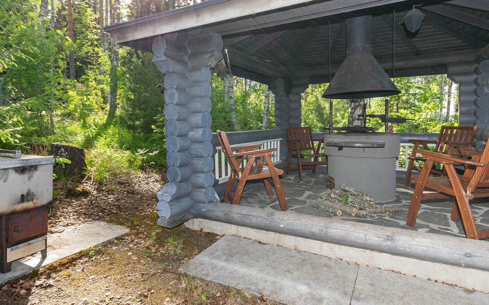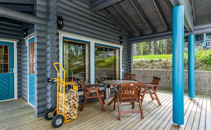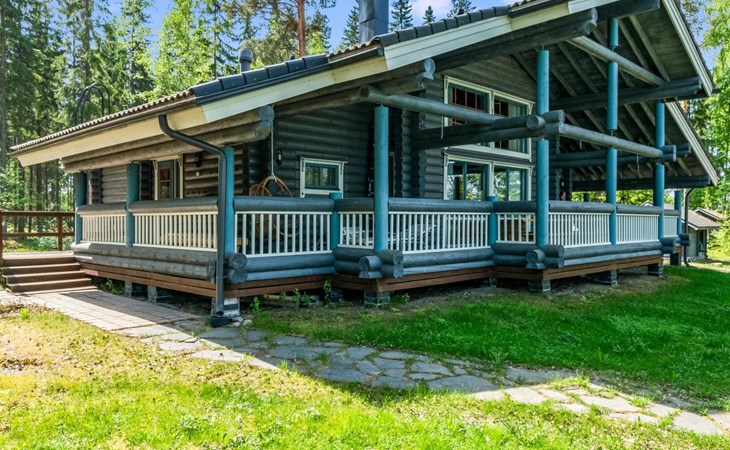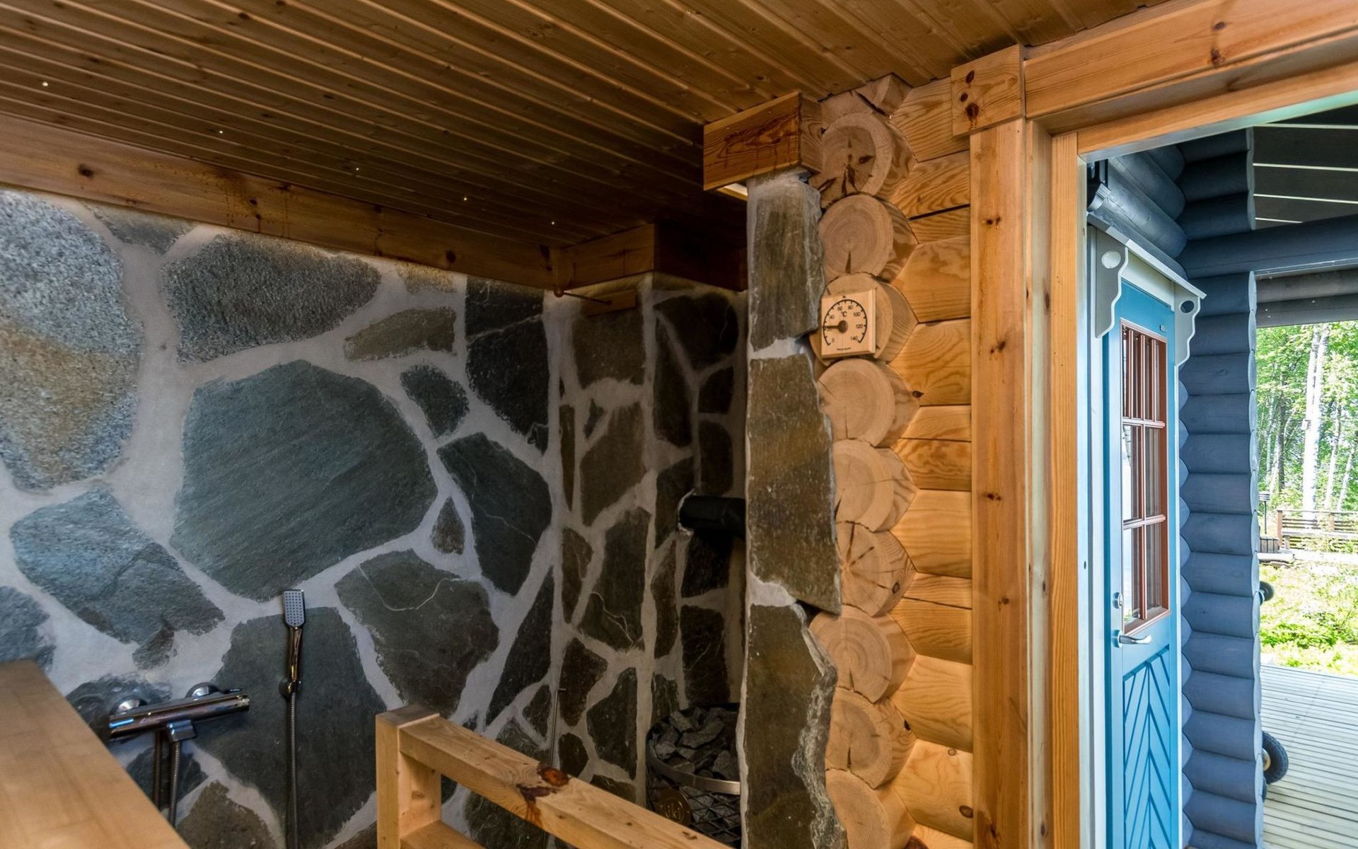 Log cottage 2005, kitchen, dining room, living room, two bedrooms, both with 2 separate beds, washroom, sauna (wood stove), utility room, separate toilet. Upstairs, two bedrooms, each with 2 separate beds. Large covered terrace, barbeque, bio toilet.