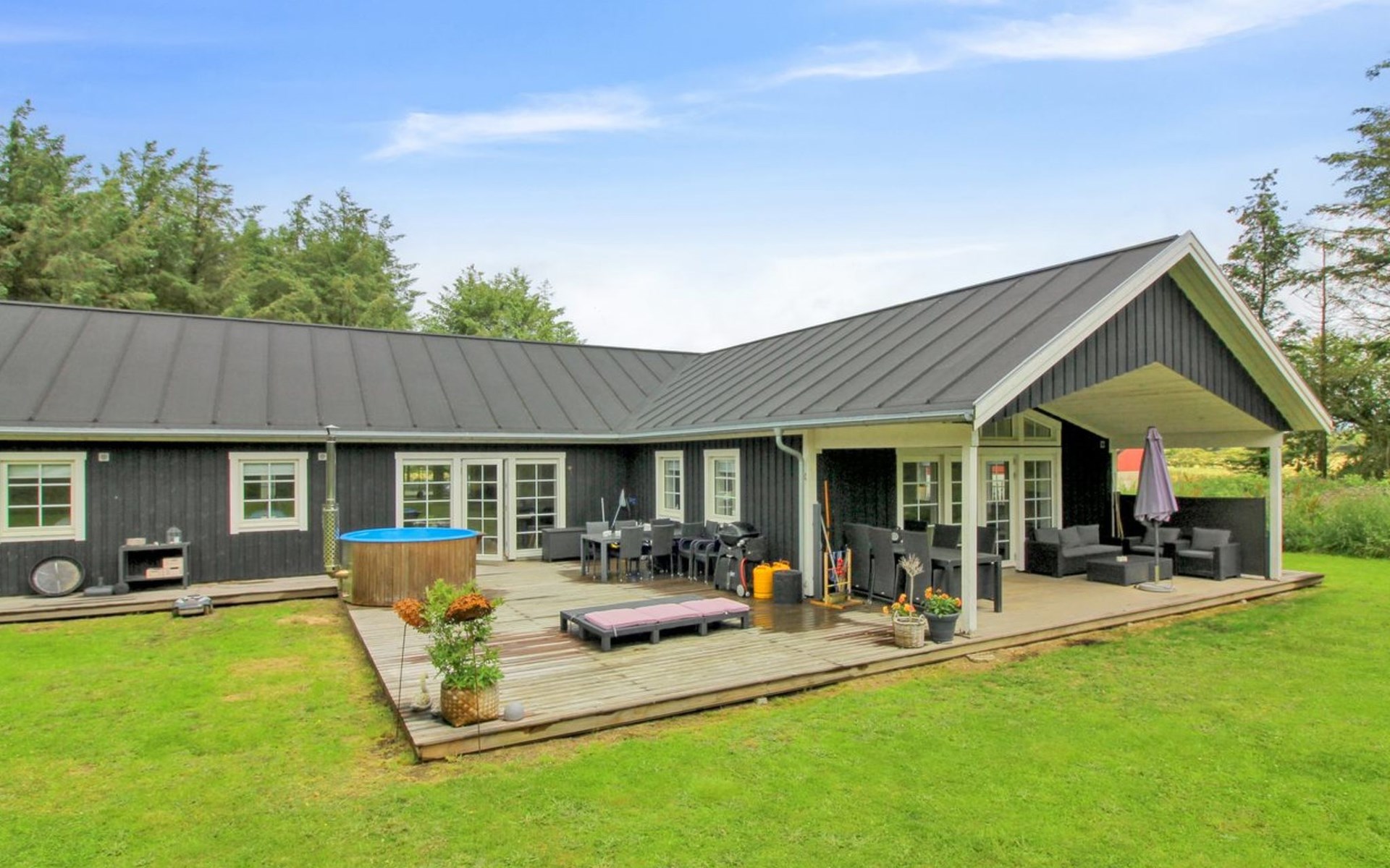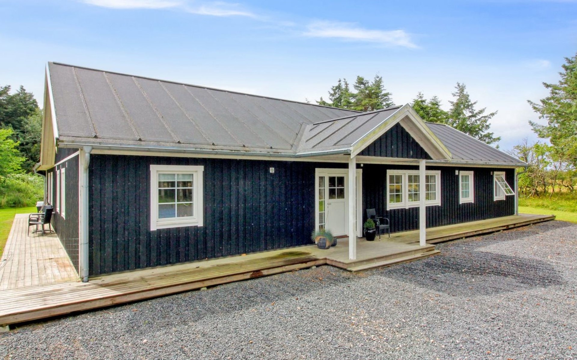 Single-family house, built in 2018. 1.5 km from the sea. Private: natural state property 2'500 m2. Barbecue. In the house: washing machine, tumble dryer. Parking at the house. E-charging station. Grocery 1.2 km. The owner does not accept any youth groups.