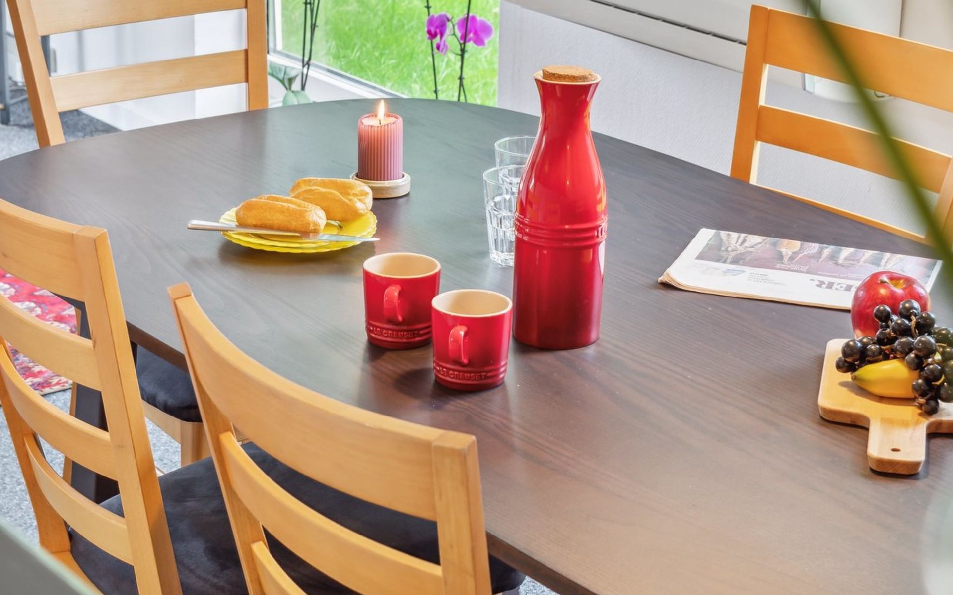 Single-family house, built in 1972. 3.6 km from the sea. Private: property 1'184 m2, well-kept garden. Barbecue. In the house: washing machine. Parking at the house. Grocery 1.3 km. The owner does not accept any youth groups.