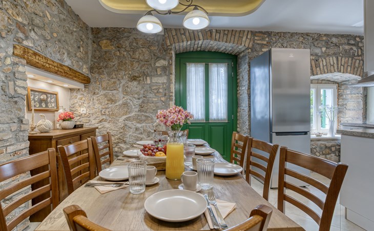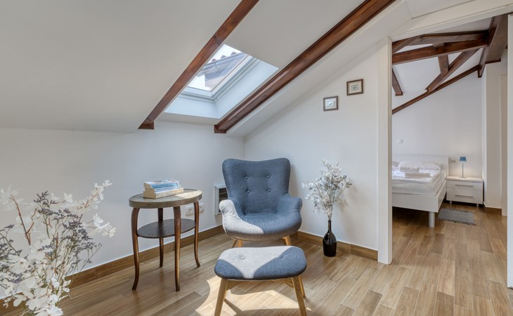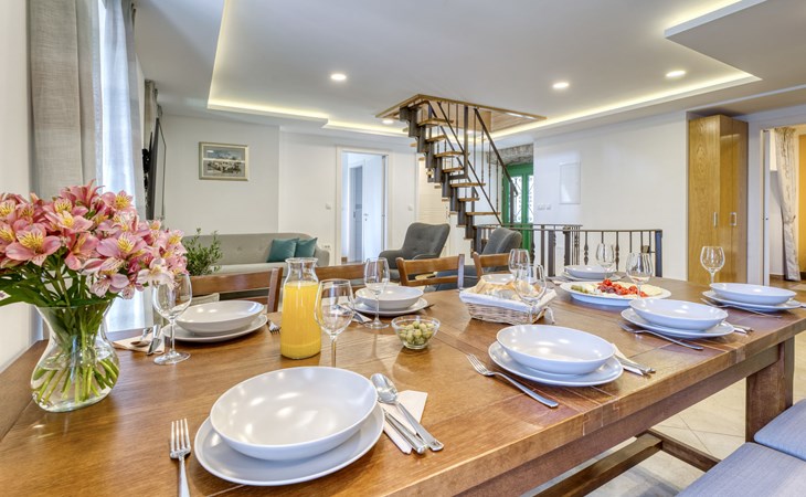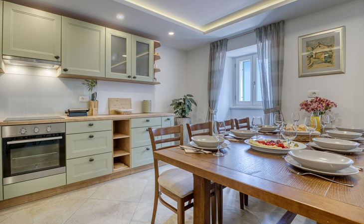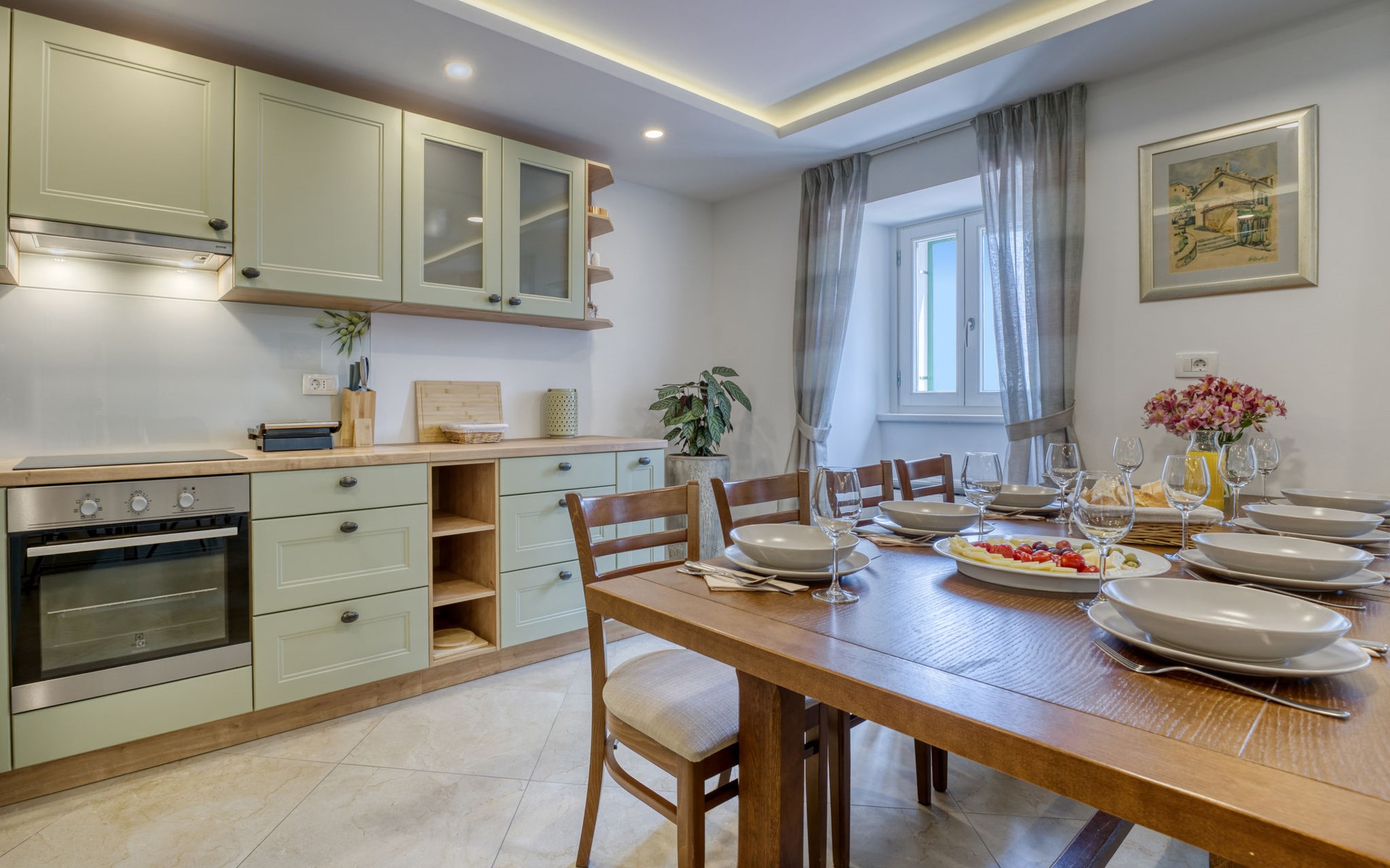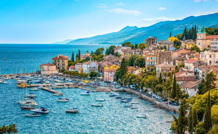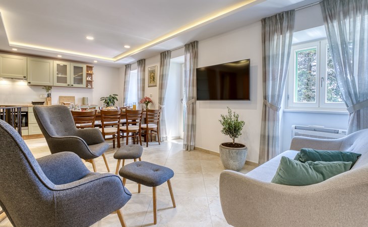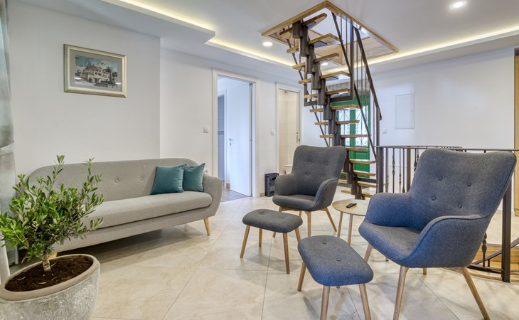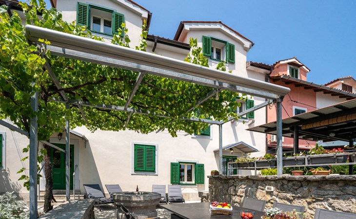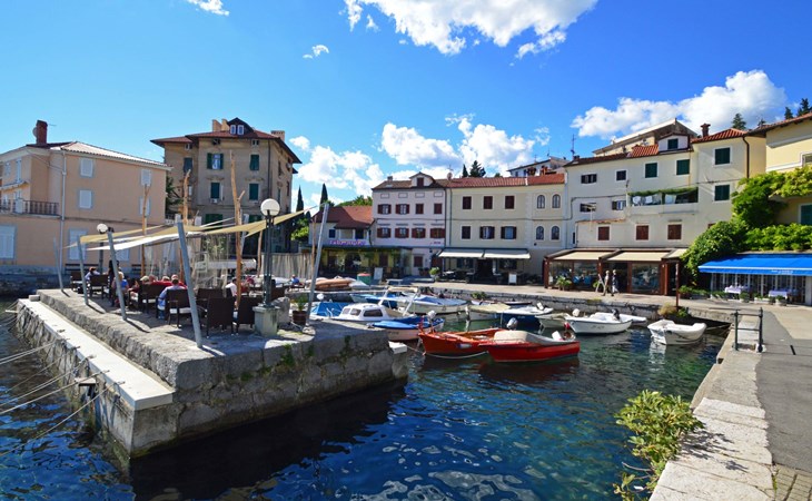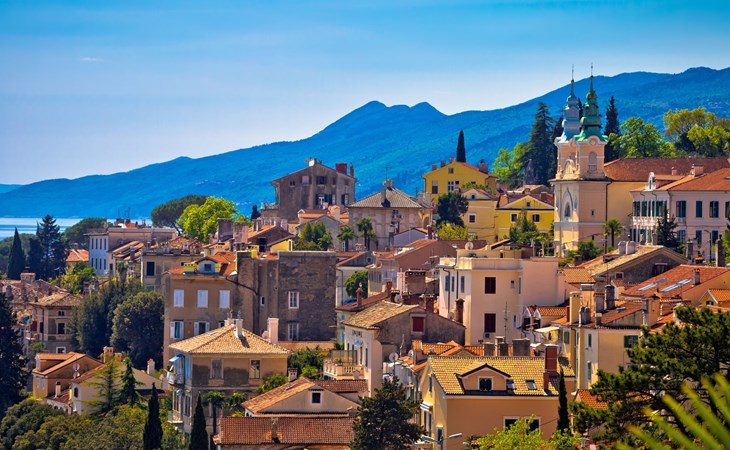 Volosko: Semi-detached house "Conrad", 3 storeys. In the centre of Volosko 1.5 km from the centre of Opatija, in a sunny position, 30 m from the sea, 50 m from the beach. Private: outdoor shower, terrace (45 m2), garden furniture. In the house: internet access, air conditioning. Stepped path (30 steps) to the house. Public parking on the road. Shop 200 m, supermarket 500 m, restaurant 30 m, bar 20 m, bus stop 200 m, pebble beach, concrete beach 50 m. Surf school, walking paths from the house 150 m, children's playground 20 m. Groups of teenagers on request only. Part of the house is closed and unoccupied.