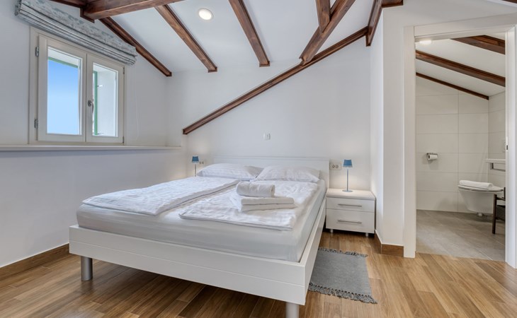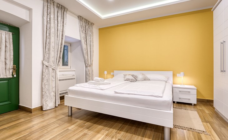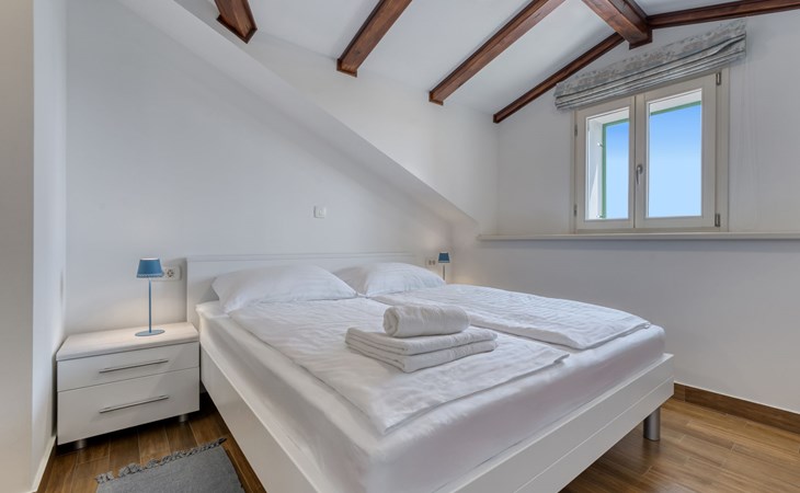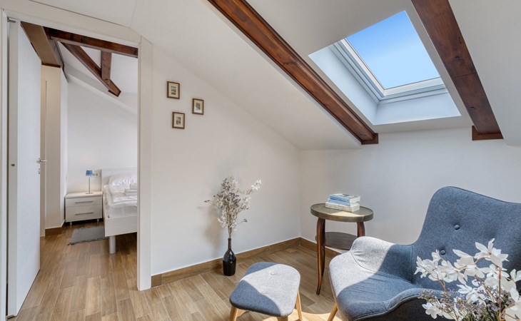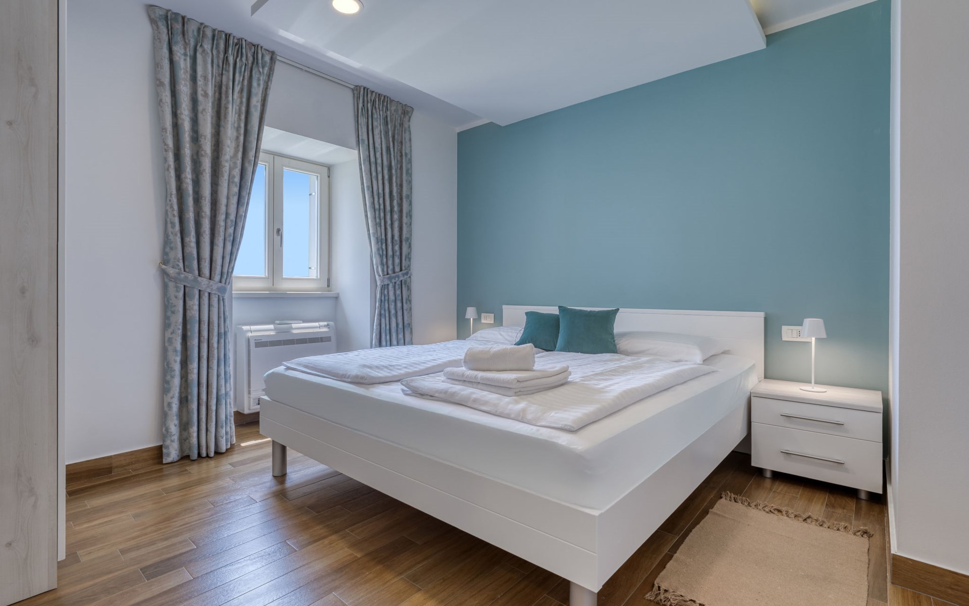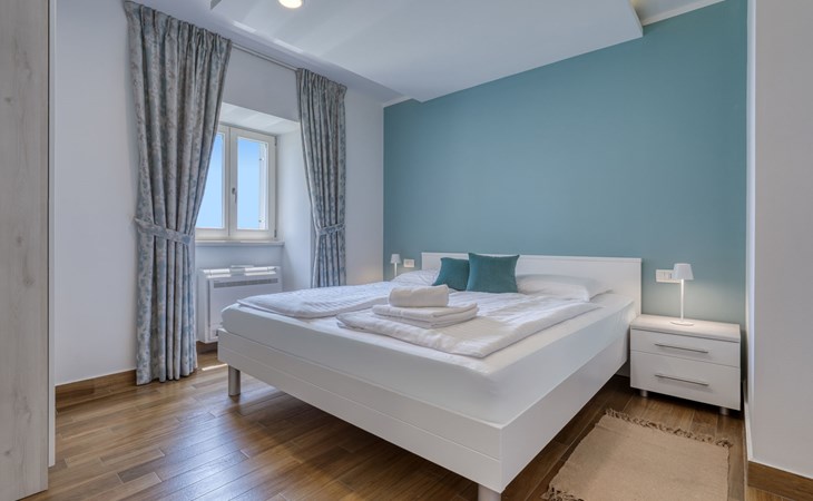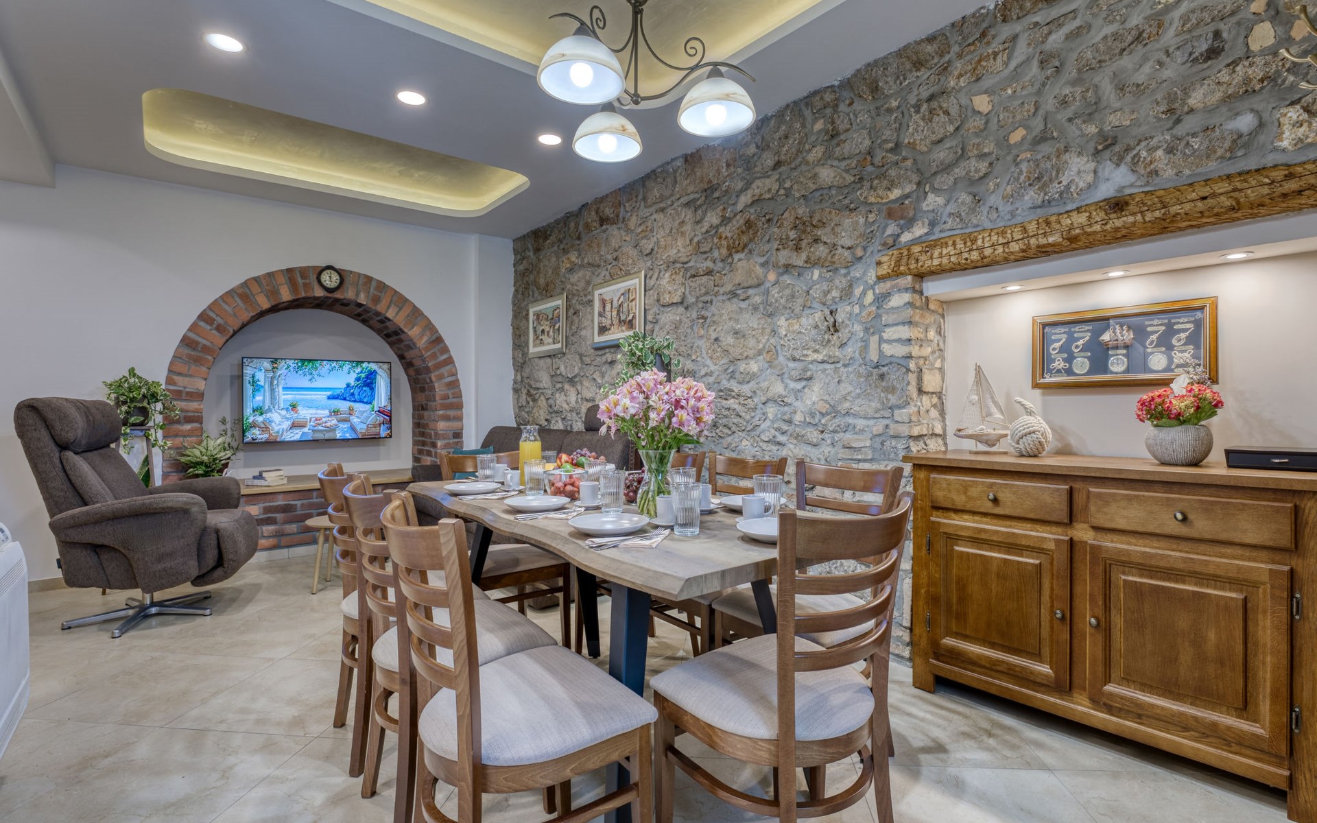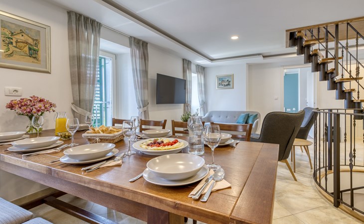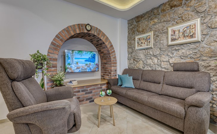 Volosko: Semi-detached house "Conrad", 3 storeys. In the centre of Volosko 1.5 km from the centre of Opatija, in a sunny position, 30 m from the sea, 50 m from the beach. Private: outdoor shower, terrace (45 m2), garden furniture. In the house: internet access, air conditioning. Stepped path (30 steps) to the house. Public parking on the road. Shop 200 m, supermarket 500 m, restaurant 30 m, bar 20 m, bus stop 200 m, pebble beach, concrete beach 50 m. Surf school, walking paths from the house 150 m, children's playground 20 m. Groups of teenagers on request only. Part of the house is closed and unoccupied.