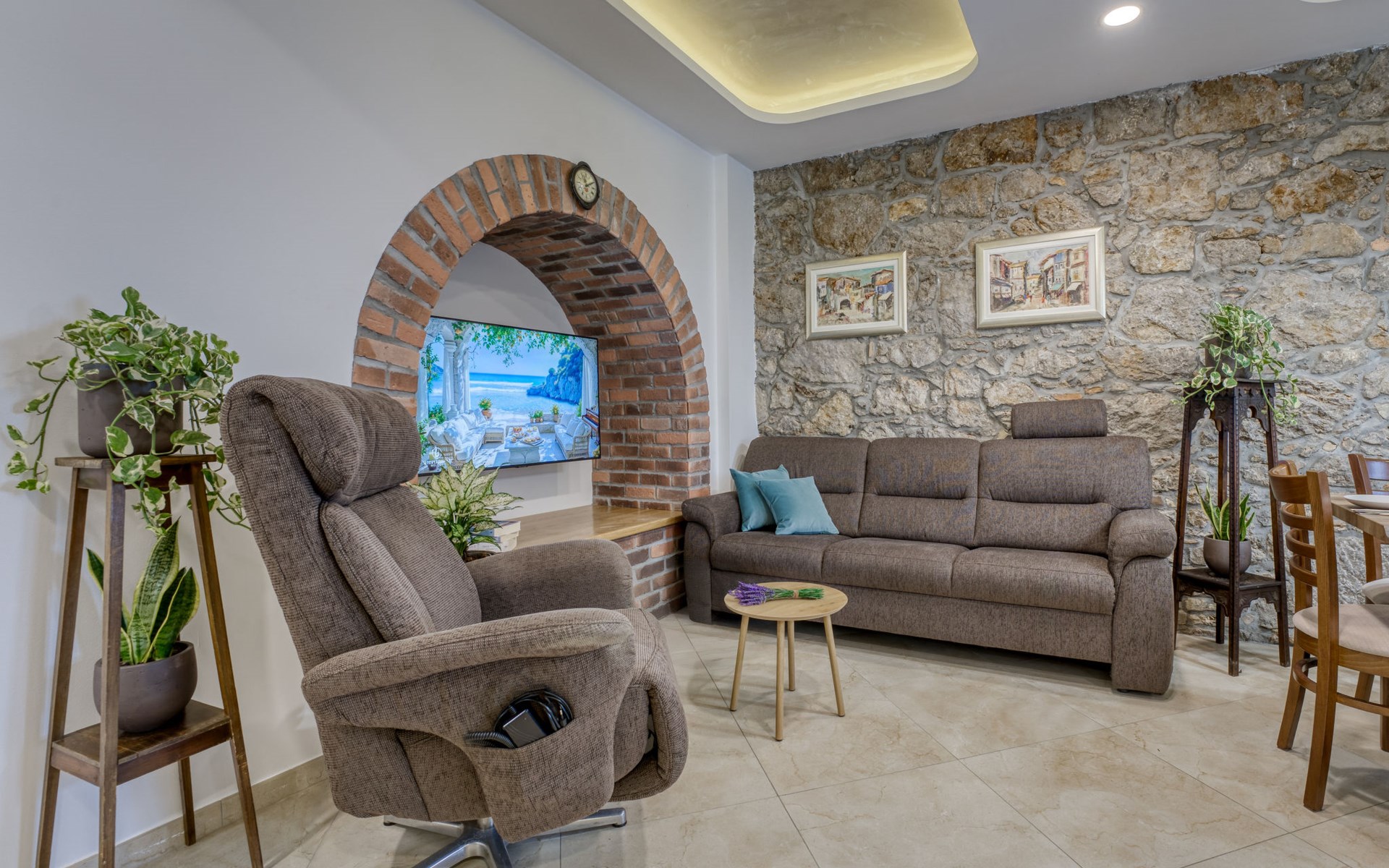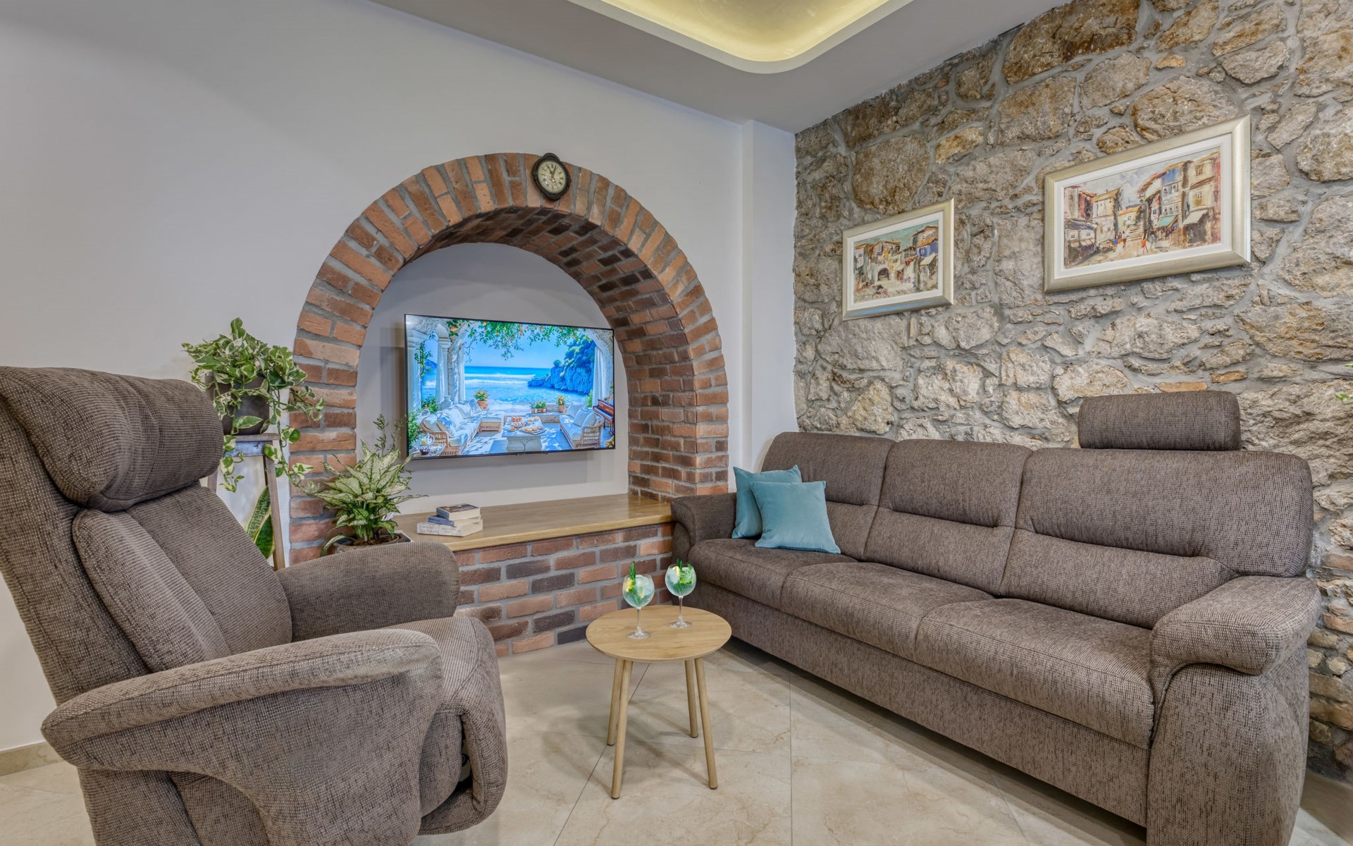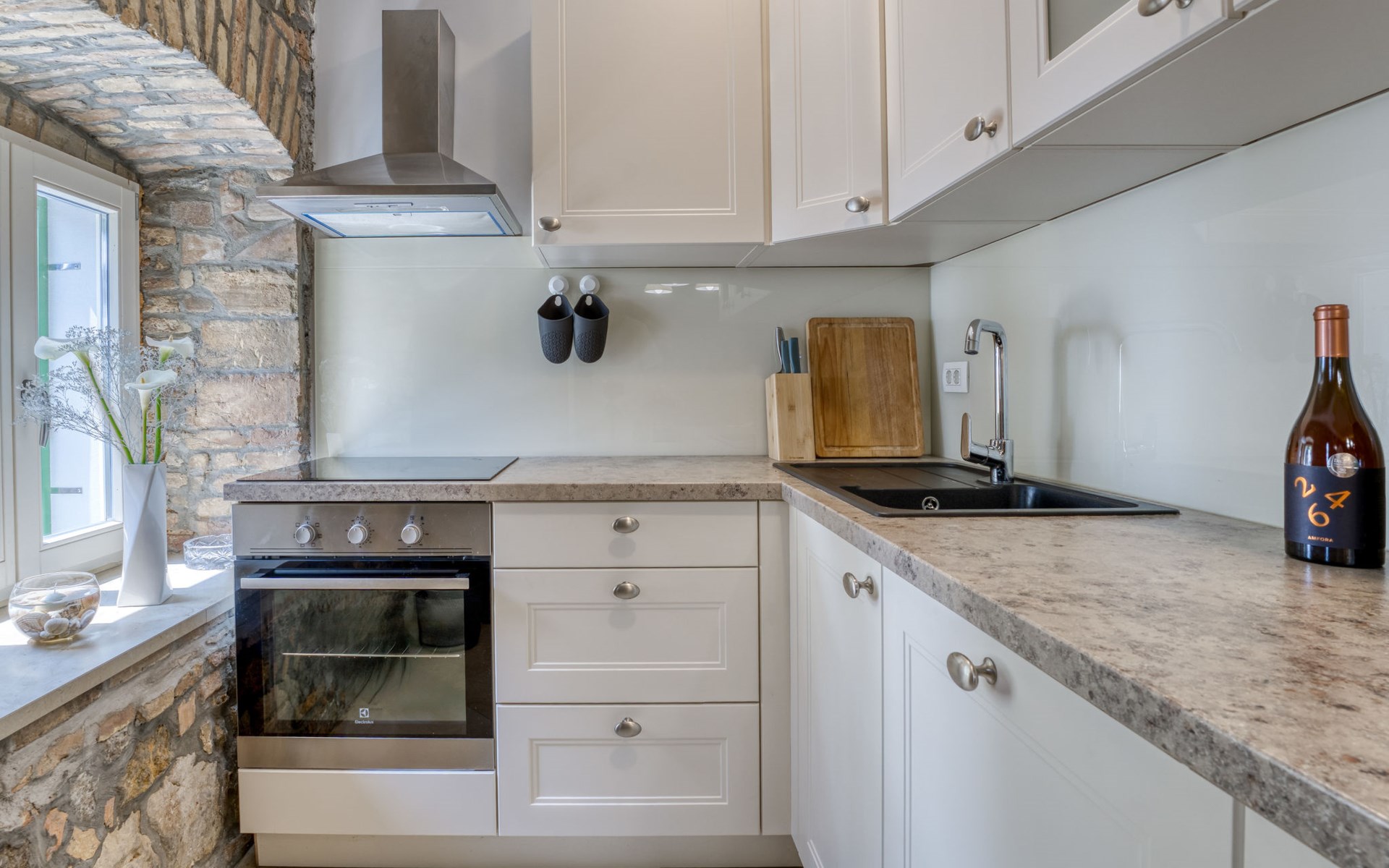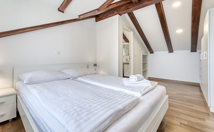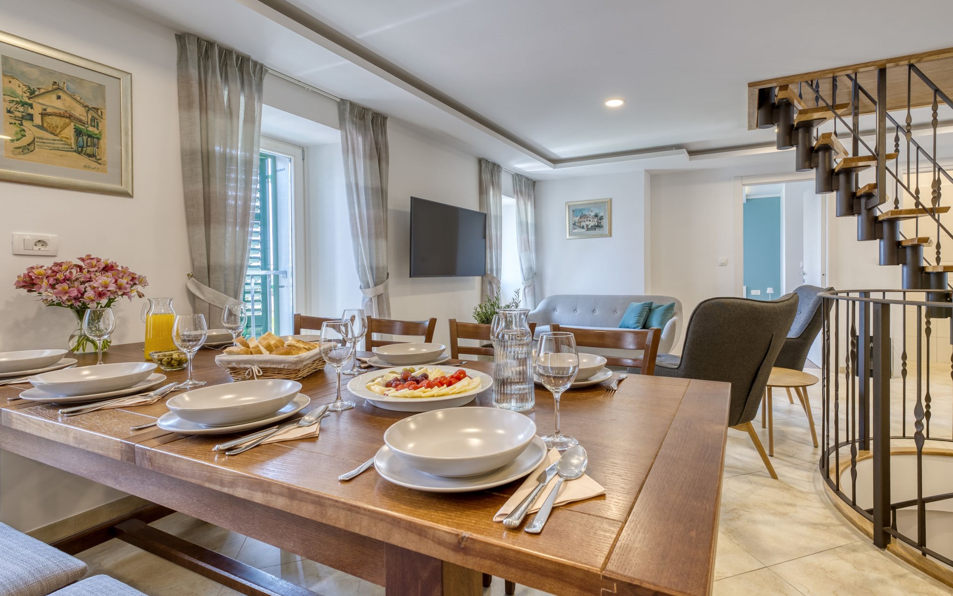 Volosko: Semi-detached house "Conrad", 3 storeys. In the centre of Volosko 1.5 km from the centre of Opatija, in a sunny position, 30 m from the sea, 50 m from the beach. Private: outdoor shower, terrace (45 m2), garden furniture. In the house: internet access, air conditioning. Stepped path (30 steps) to the house. Public parking on the road. Shop 200 m, supermarket 500 m, restaurant 30 m, bar 20 m, bus stop 200 m, pebble beach, concrete beach 50 m. Surf school, walking paths from the house 150 m, children's playground 20 m. Groups of teenagers on request only. Part of the house is closed and unoccupied.