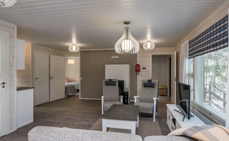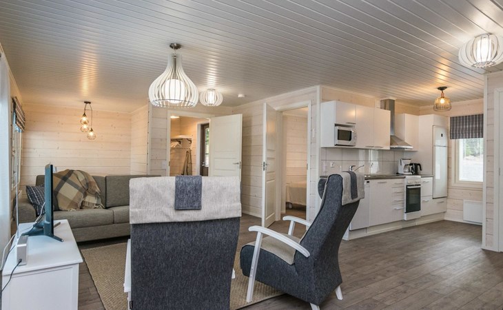 Wooden cottage, built in 1967, renovated in 2018, living room-kitchen foldable sofa bed for two, bedroom with two beds, second bedroom with two beds, dining area, toilet, washroom and sauna (electric stove). Air source heat pump, Wifi connection (8 MB).