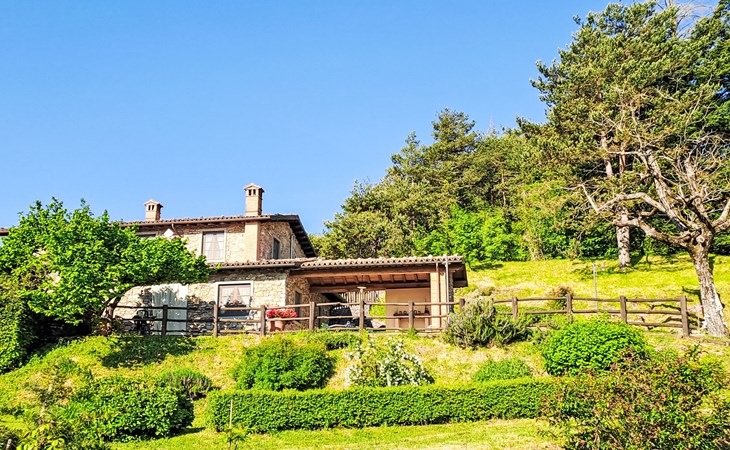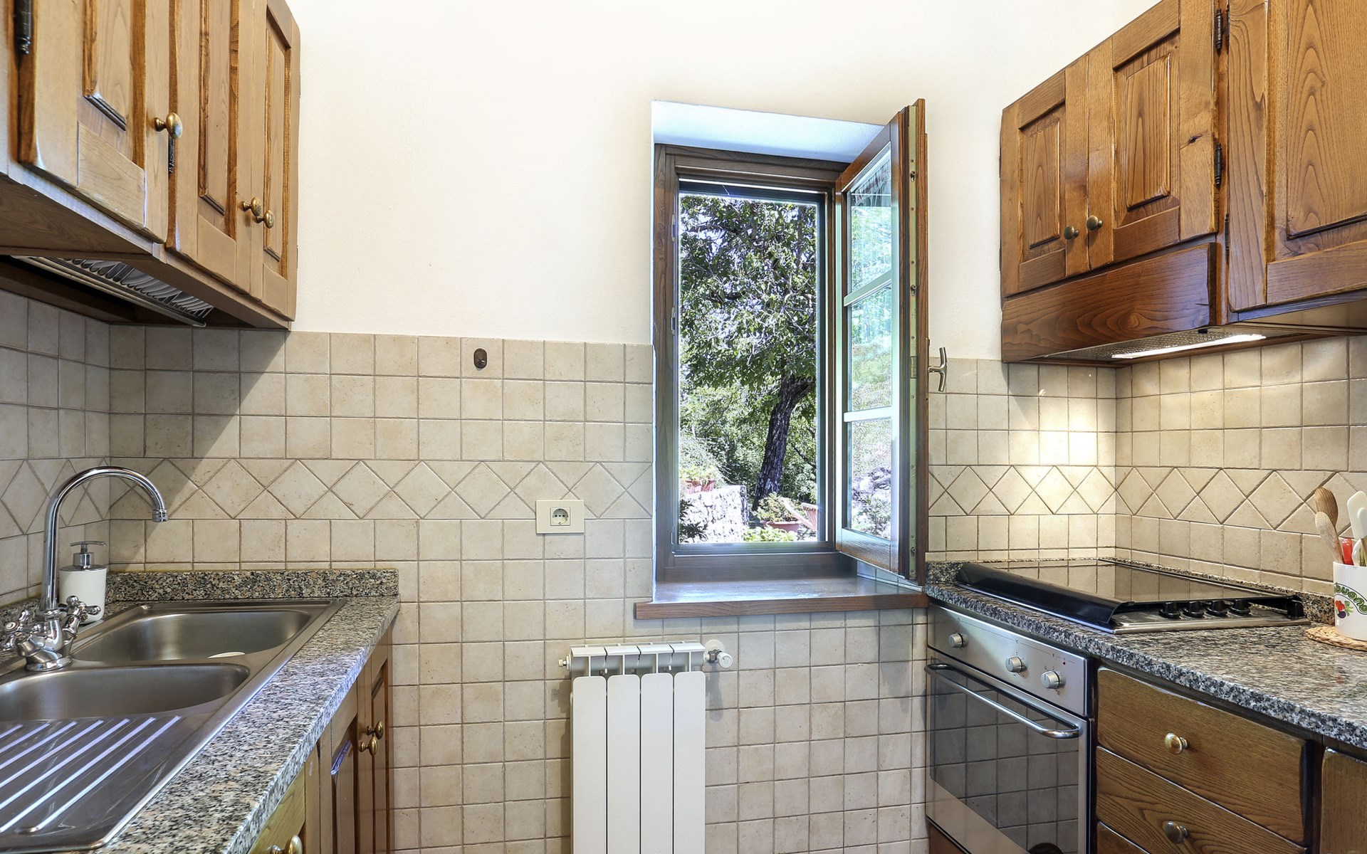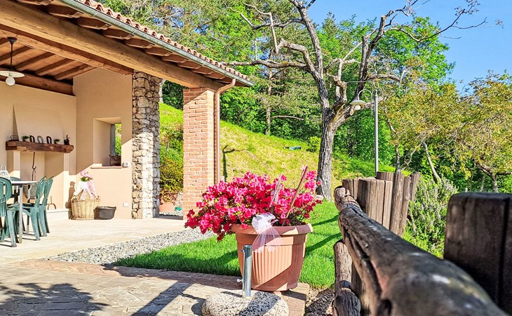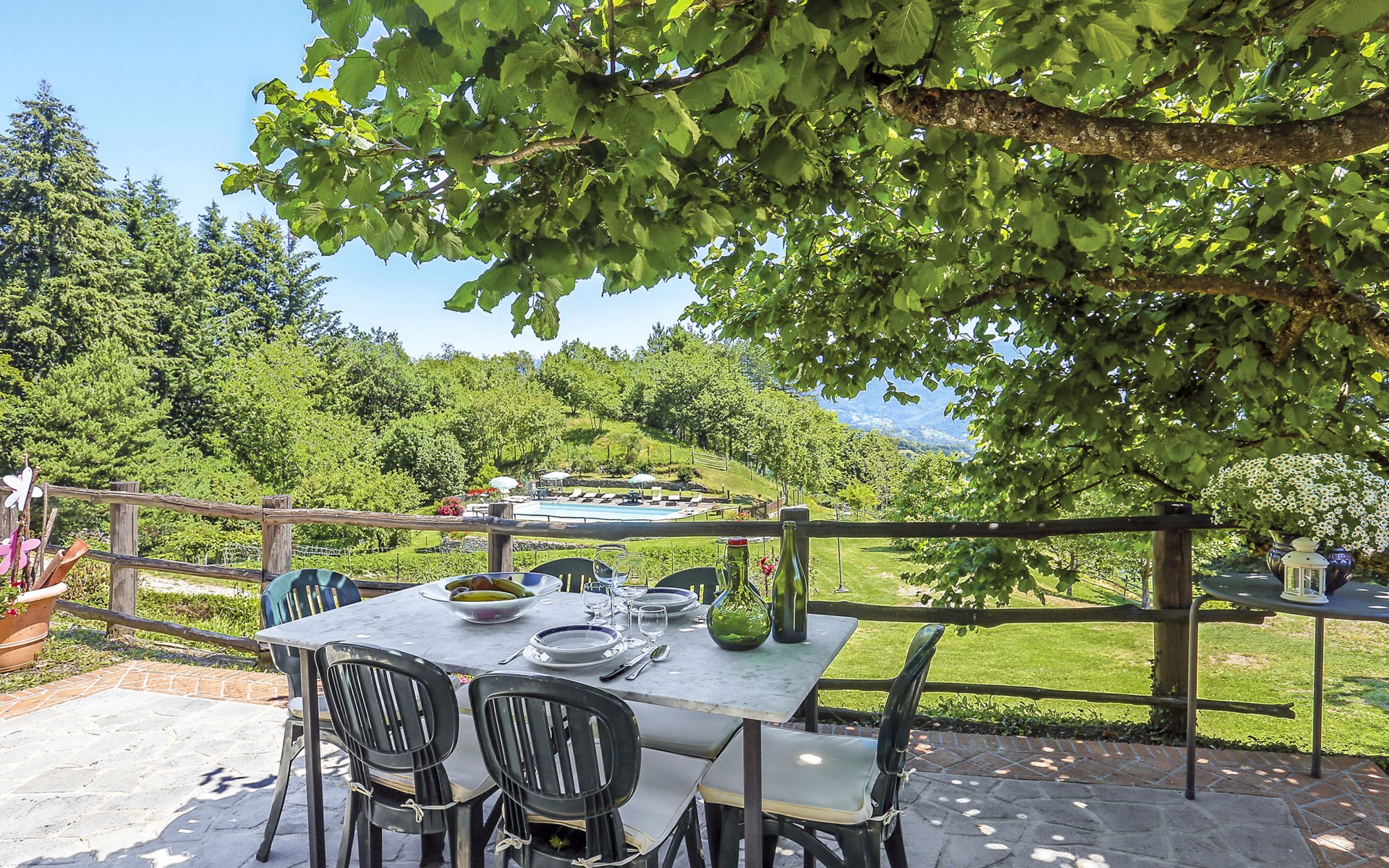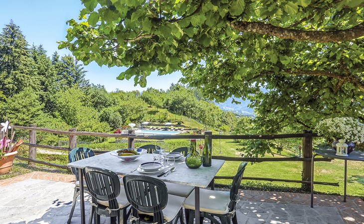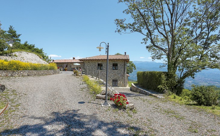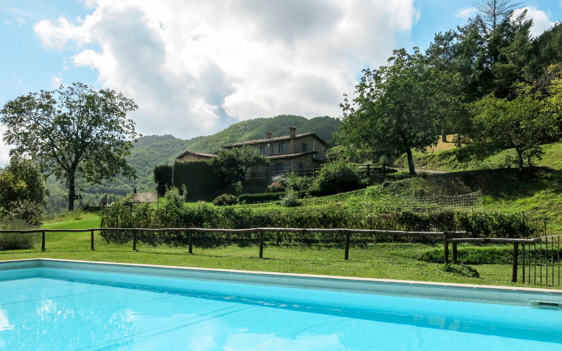 Molazzana 8 km from Casteln. di Garfagnana: Country house "Le Bore", 700 m a.s.l., surrounded by trees and meadows. 2 houses in the resort. 8 km from the centre of Castelnuovo di Garfagnana, 47 km from the centre of Lucca, 64 km from the centre of Pisa, in a secluded, quiet position on a slope, 74 km from the sea, in the countryside. For shared use: property 50'000 m2 (fenced), small garden with lawn and plants, natural garden, meadow, swimming pool (12 x 6 m, seasonal availability: 01.May. - 01.Oct.). Shower/WC in the pool area, outdoor shower, barbecue. In the house: washing machine (for shared use). 600 m long narrow motor access (mountain road). Parking on the premises. Shop 5 km, supermarket 8 km, bus stop 500 m, sandy beach "Lido di Camaiore" 74 km. The owner does not accept any youth groups. Local sale of farm products.
