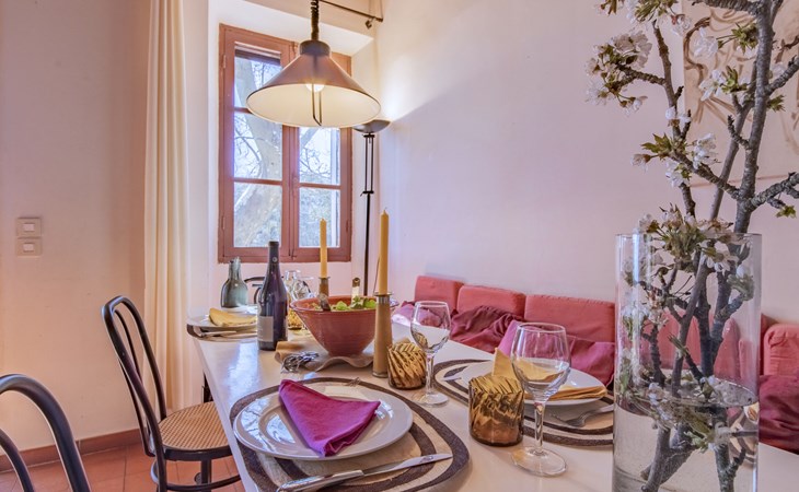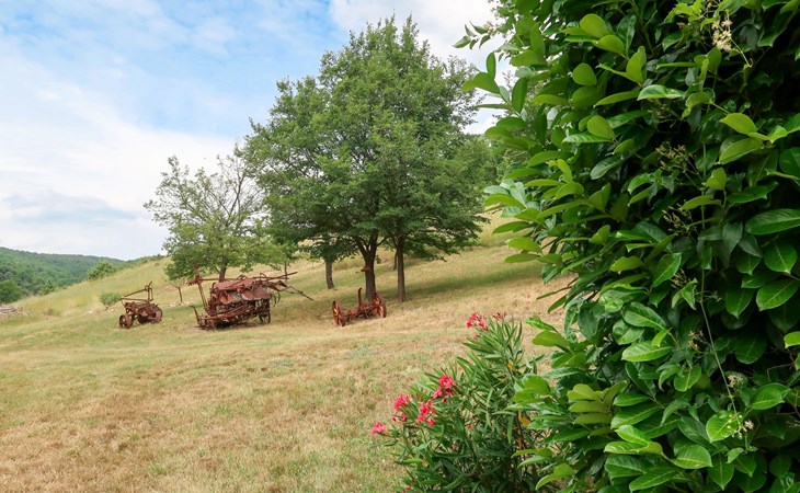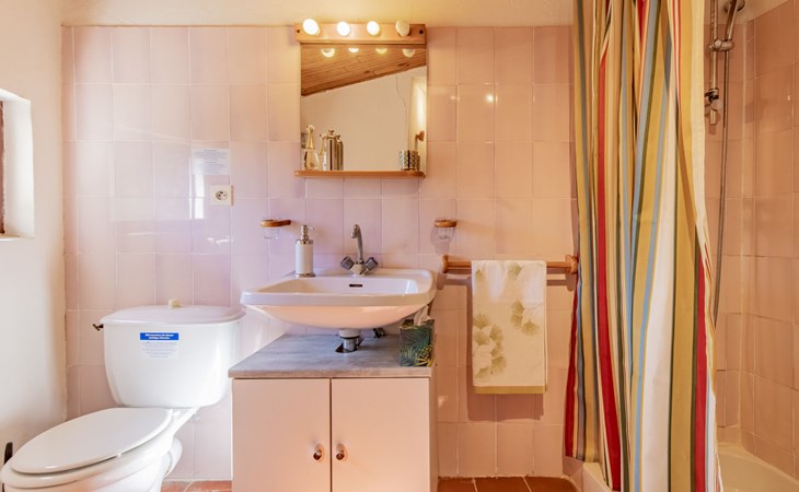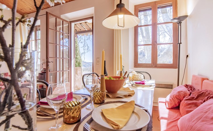 Small, cosy, rustic large working farm "Les Hauts Bronzets", 650 m a.s.l., surrounded by trees and fields. 3 apartments in the property. 12 km from the centre of Oraison, 25 km from the centre of Forcalquier, 90 km from the centre of Aix-en-Provence, in a secluded, elevated position on a slope, in the countryside. For shared use: natural state property 180 ha with meadow. In the house: washing machine (for shared use). Storeroom available. Bumpy motor access (900 m via unmade road). Stepped path (10 steps) to the house. Parking on the premises. Shop 3 km, supermarket 12 km, restaurant 3 km, bus stop 6 km, outdoor swimming pool 12 km. Golf course (9 hole) 15 km, tennis 12 km, cycle lane 12 km. Nearby attractions: Moustiers Sainte Marie, Gorges du Verdon, Abbaye de Notre Dame de Ganagobie, Les penitentes Les Mées, Musée et Jardins de Salagon. Well-known lakes can easily be reached: Lac des Buissonades 16 km, Lac de Sainte Croix 47 km. Please note: Additional accommodations can be booked.