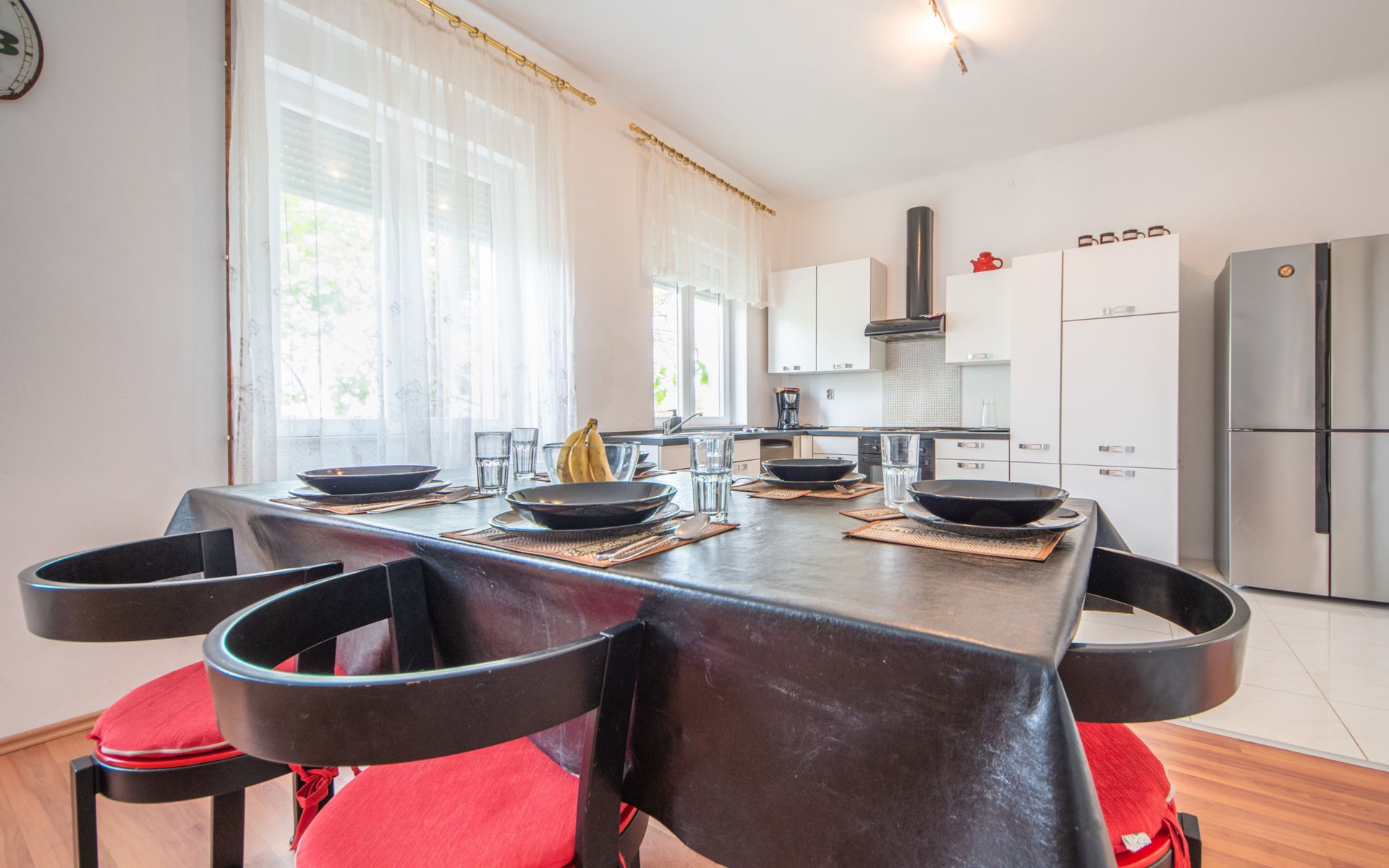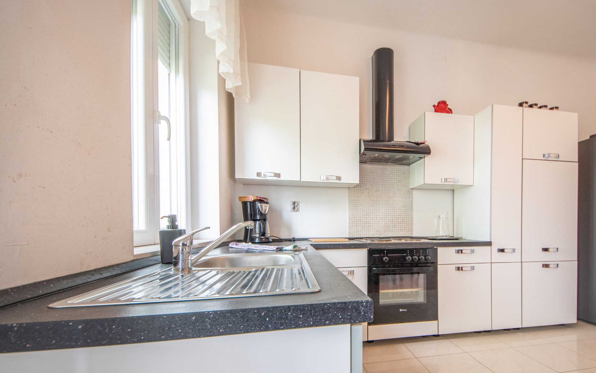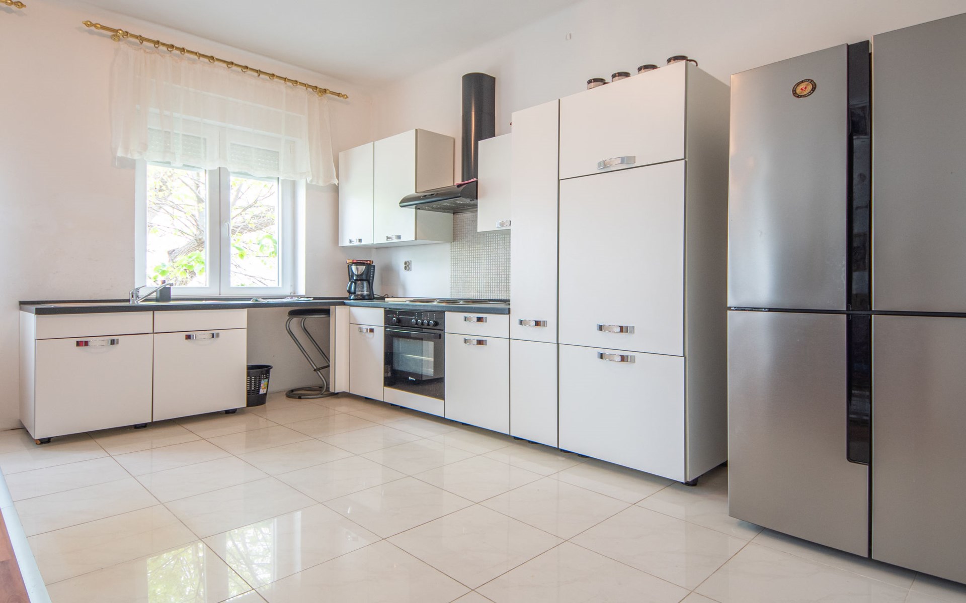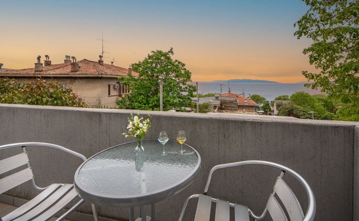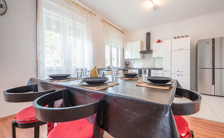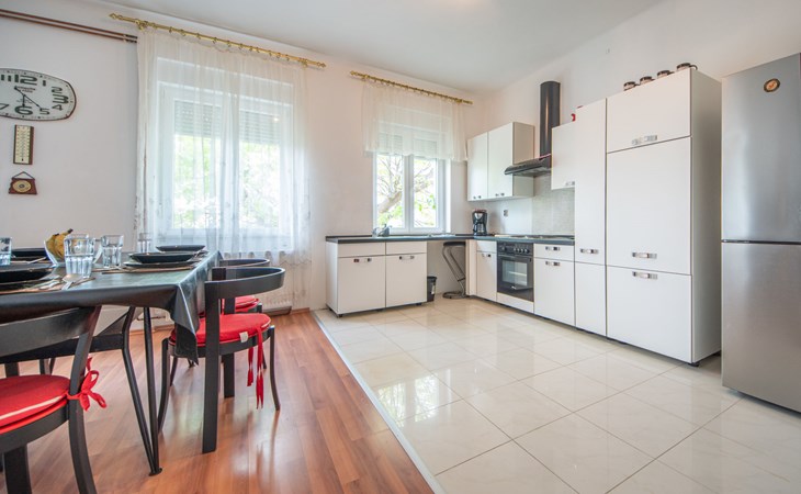 2-family house "Kantrida". In the district of Kantrida 4.4 km from the centre of Rijeka, 8.5 km from the centre of Opatija, in a sunny position in the residential district, traffic calmed area, 200 m from the sea, from the beach. In the house: internet access. Public parking 40 m. Supermarket 750 m, restaurant 300 m, café 400 m, bicycle rental 1.1 km, bus stop 100 m, pebble beach 450 m, diving center 1 km, outdoor swimming pool 1.1 km, indoor swimming pool 1.1 km, public bathing area 200 m. Sports harbour 600 m, surf school 8 km, sailing school 9 km, tennis 1.4 km, sports centre 600 m, walking paths from the house 200 m. Nearby attractions: Trsat castle 7 km, astronomical observatory 7 km, Lungo mare promenade 7 km, Motorsport race track Grobnik 22 km. Groups of teenagers on request only. Please note: Loading and unloading of baggage is possible at the holiday house. The apartment is located in a zone with limited traffic. Additional accommodations can be booked. Property ref. HR3150.107.2 is situated on the same property.