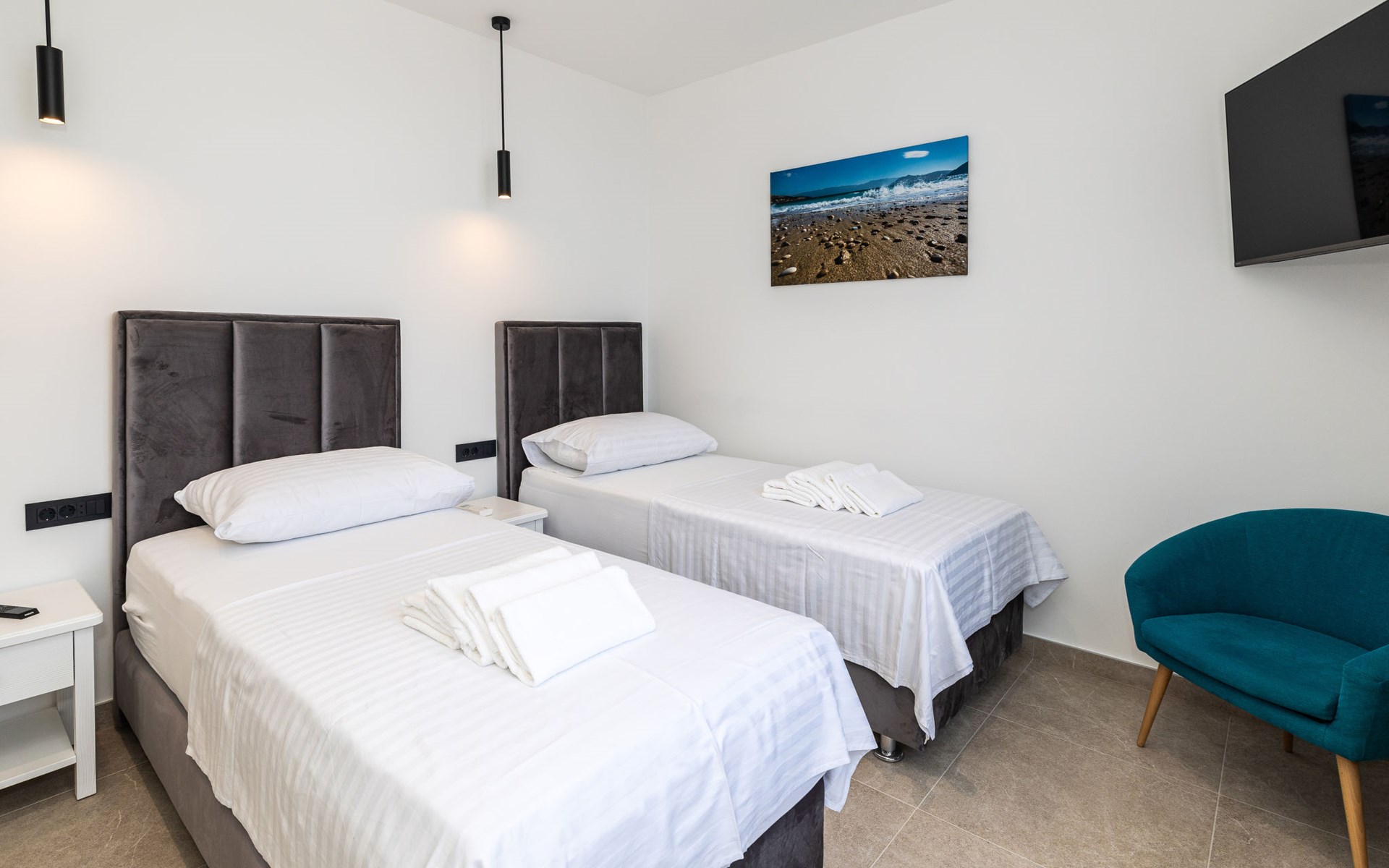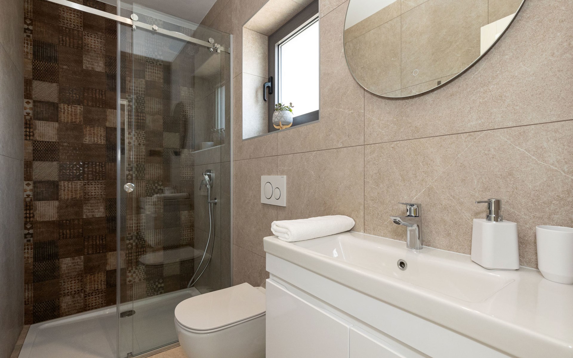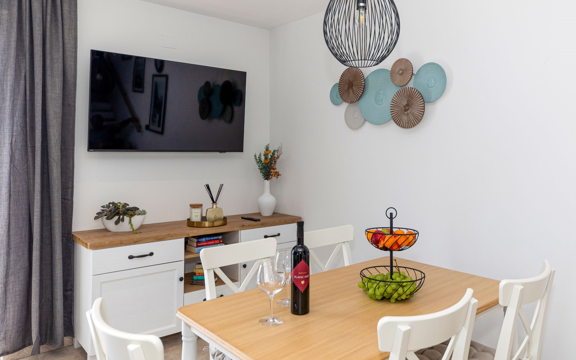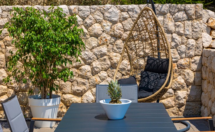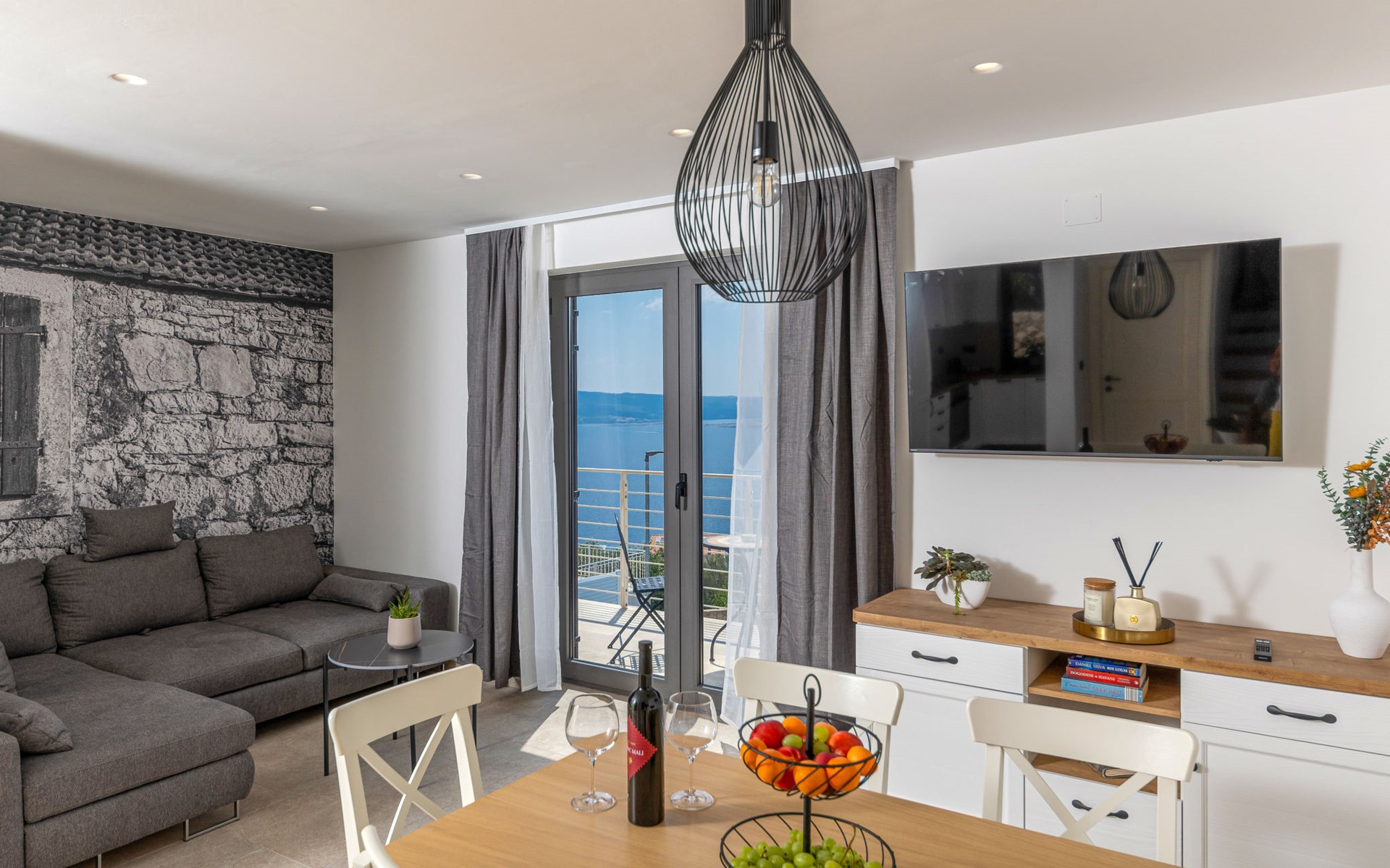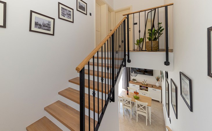Dramalj 4 km from Crikvenica: Modern, comfortable semi-detached house "Marika", 2 storeys. 650 m from the centre of Dramalj, in a quiet, sunny position, 500 m from the sea, 500 m from the beach. Private: property 200 m2 (fenced), swimming pool angular (24 m2, depth 140 cm, seasonal availability: 01.May. - 31.Oct.) with internal staircase. Outdoor shower, pool maintenance by the owner/gardener. In the house: internet access, washing machine. Parking (for 3 cars) at the house on the premises. Shop 650 m, supermarket 2.2 km, restaurant 600 m, bus stop 1.3 km, pebble beach, concrete beach 500 m. The owner does not accept any youth groups.