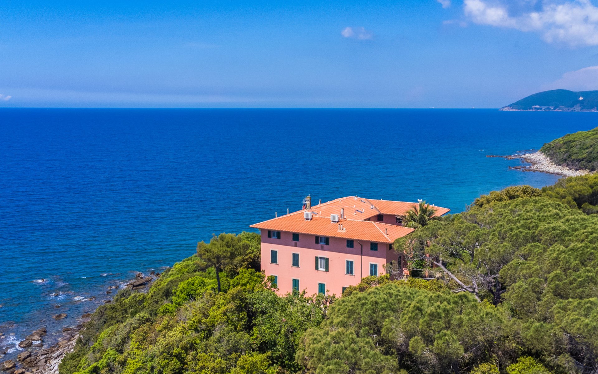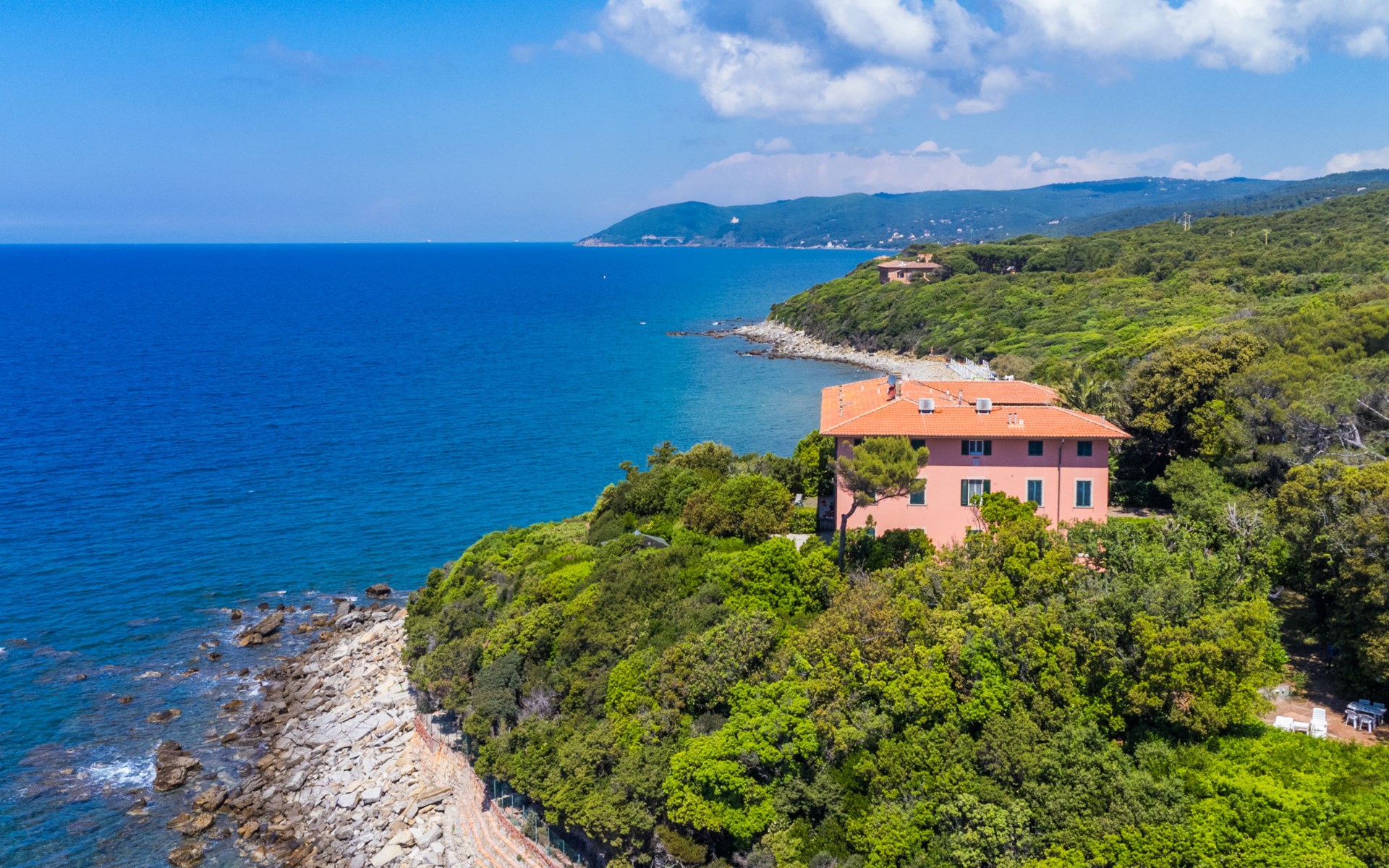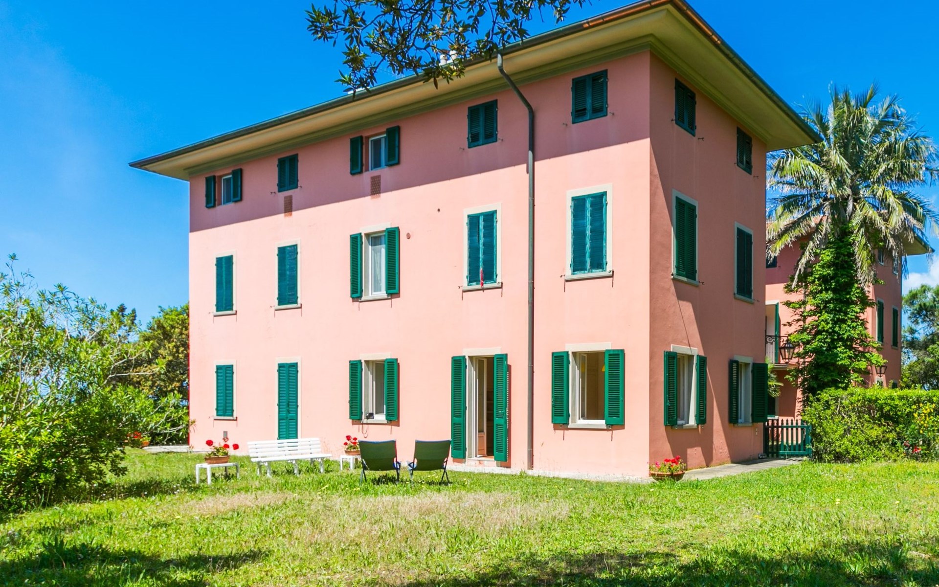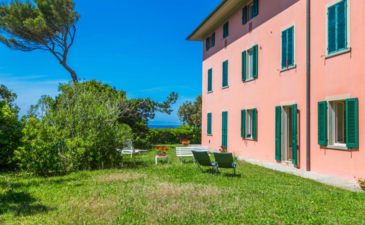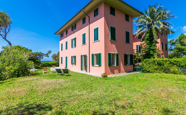 Manor house "Fortullino", 3 storeys, surrounded by trees and meadows. 12 apartments in the property. 3.5 km from the centre of Castiglioncello, 4 km from the centre of Quercianella, residential area (villas), 50 m from the sea, 50 m from the beach, direct access to the beach. For shared use: park 2 ha (fenced), swimming pool (24 x 12 m, seasonal availability: 01.Jun. - 30.Sep.). Outdoor shower. Heating available only from 20.Oct. - 03.May.. Motor boat (on request Local agreement). Linen change (suppl. charge extra). Towel change (suppl. charge extra). Parking. Shop 3.5 km, grocery 3.5 km, supermarket 3.5 km, restaurant 600 m, bus stop 200 m, railway station "Castiglioncello" 4 km, pebble beach "Fortullino", rocky beach 50 m, thermal baths "Calidario" 60 km. Sports harbour 150 m. Nearby attractions: Pisa 40 km, Lucca 65 km, Firenze 100 km. Please note: private mooring (extra) on request. Residence with electric gates.