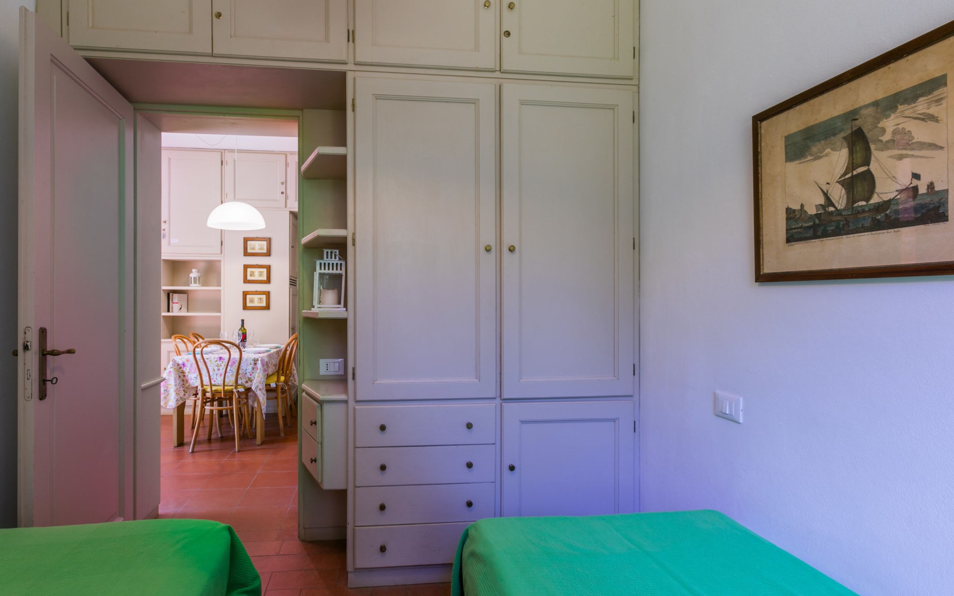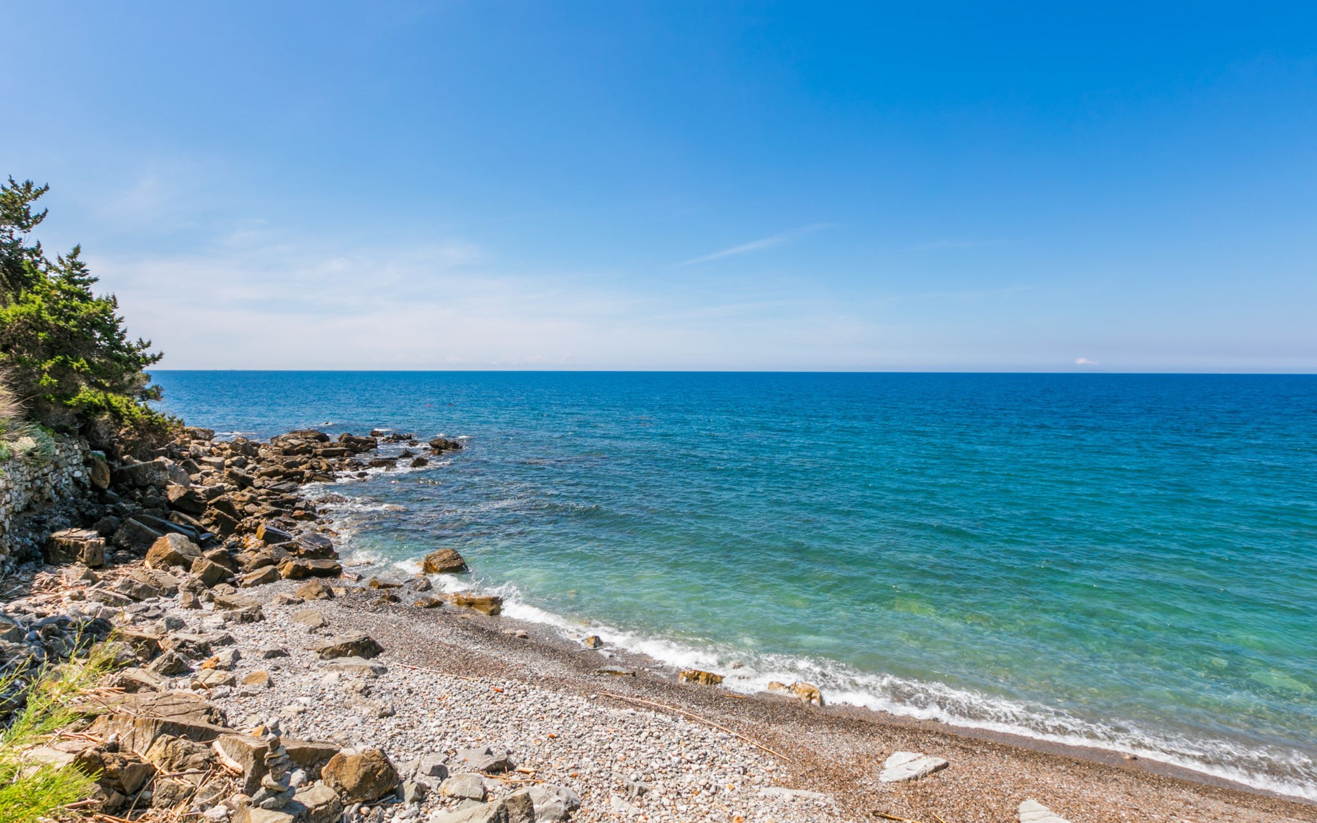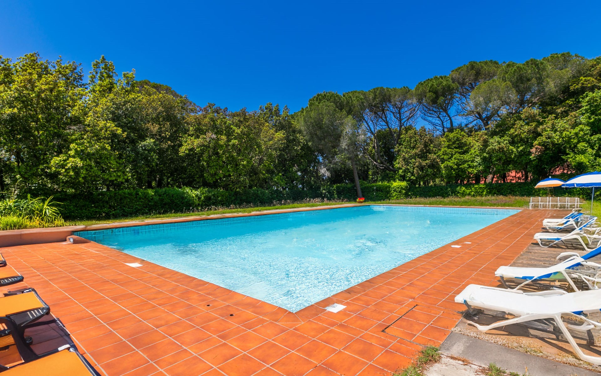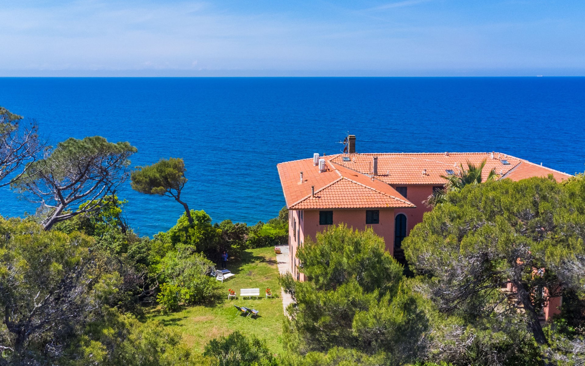 Manor house "Fortullino", 3 storeys, surrounded by trees and meadows. 12 apartments in the property. 3.5 km from the centre of Castiglioncello, 4 km from the centre of Quercianella, residential area (villas), 50 m from the sea, 50 m from the beach, direct access to the beach. For shared use: park 2 ha (fenced), swimming pool (24 x 12 m, seasonal availability: 01.Jun. - 30.Sep.). Outdoor shower. Heating available only from 20.Oct. - 03.May.. Motor boat (on request Local agreement). Linen change (suppl. charge extra). Towel change (suppl. charge extra). Parking. Shop 3.5 km, grocery 3.5 km, supermarket 3.5 km, restaurant 600 m, bus stop 200 m, railway station "Castiglioncello" 4 km, pebble beach "Fortullino", rocky beach 50 m, thermal baths "Calidario" 60 km. Sports harbour 150 m. Nearby attractions: Pisa 40 km, Lucca 65 km, Firenze 100 km. Please note: private mooring (extra) on request. Residence with electric gates.