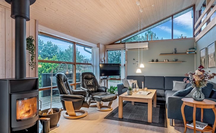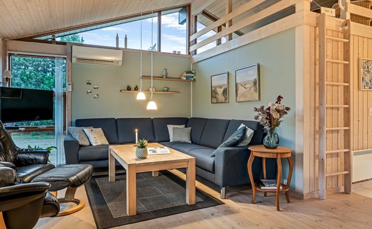 Single-family house, built in 2007. 2.5 km from the sea. Private: natural state property 1'250 m2. Barbecue. In the house: sauna, washing machine. Parking at the house. E-charging station. Grocery 900 m. Golf course 6 km. The owner does not accept any youth groups.