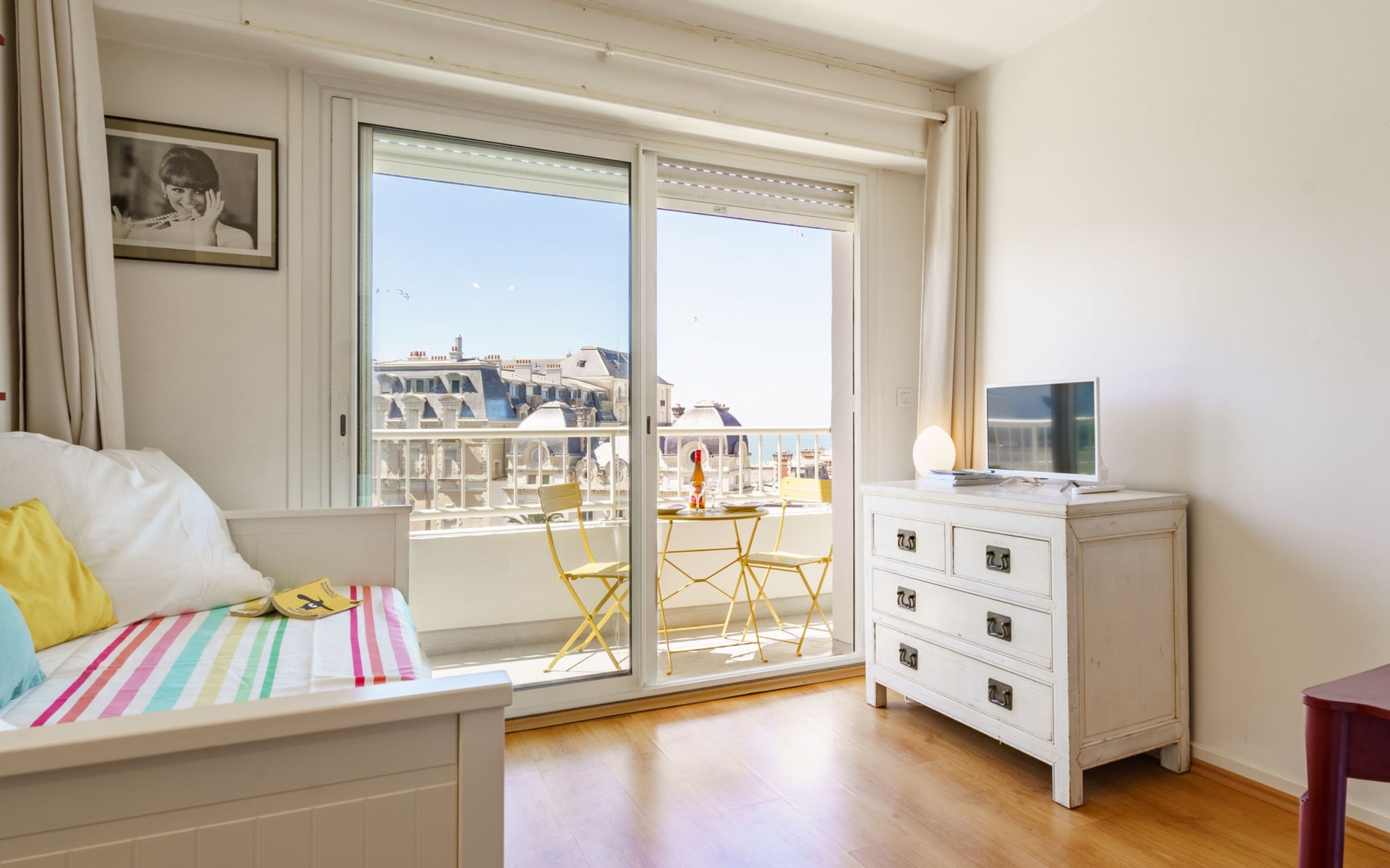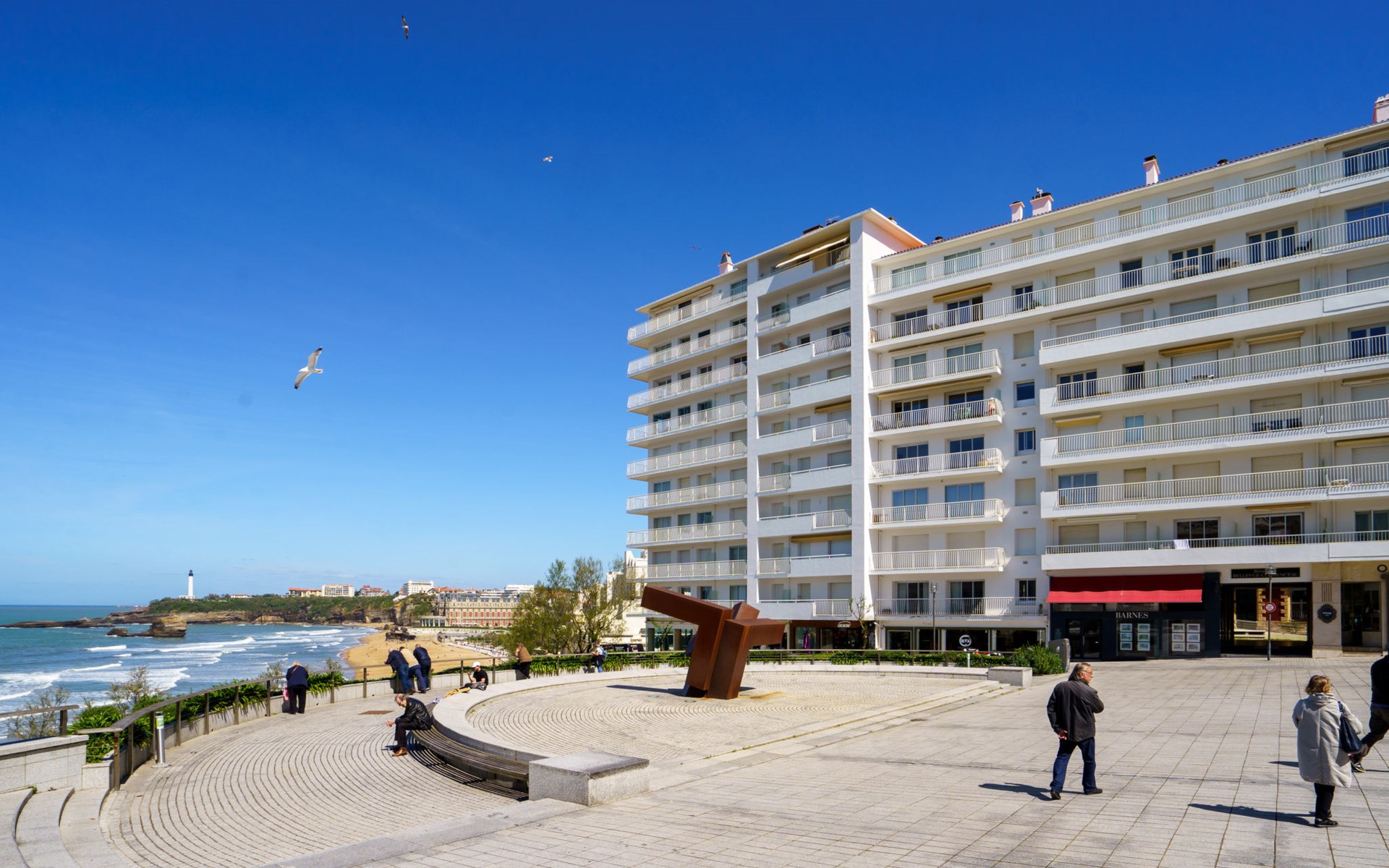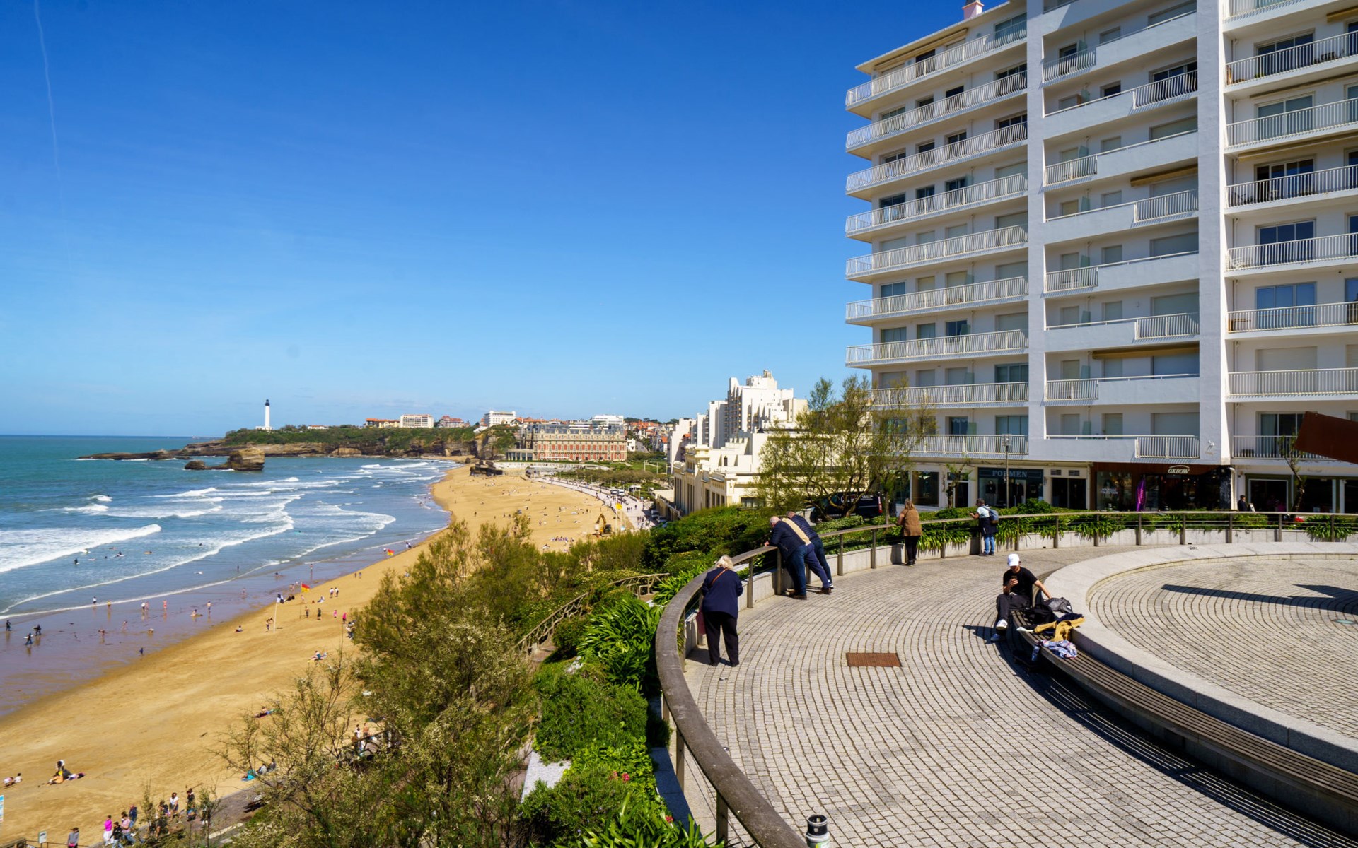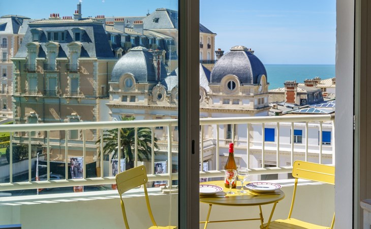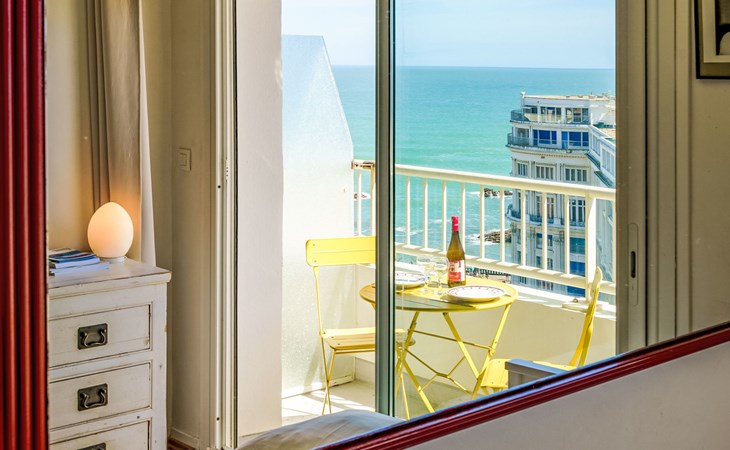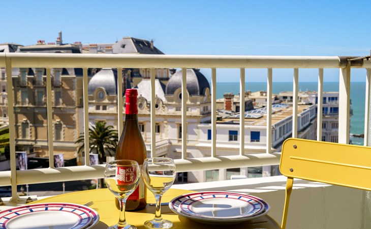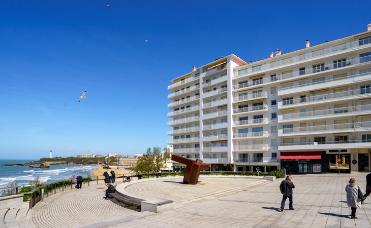 Biarritz: Residence "Bellevue Clemenceau", 7 storeys. In the centre of Biarritz, 150 m from the sea, 150 m from the beach. In the house: lift. Shop 50 m, grocery 100 m, supermarket, restaurant, café 50 m, bus stop 50 m, railway station 2.5 km, sandy beach "La grande Plage" 150 m, indoor swimming pool 200 m. Golf course (18 hole) 2.8 km, surf school 150 m. Nearby attractions: Marché des Halles 280 m, Port des Pêcheurs 400 m, Aquarium 750 m, Phare de Biarritz 1.7 km, Bayonne 8 km, St-Jean-de-Luz 17 km. Hiking paths: Le Chemin du Littoral 400 m, La Rhune 28 km. The keys‘ handover takes place by the agency Interhome.