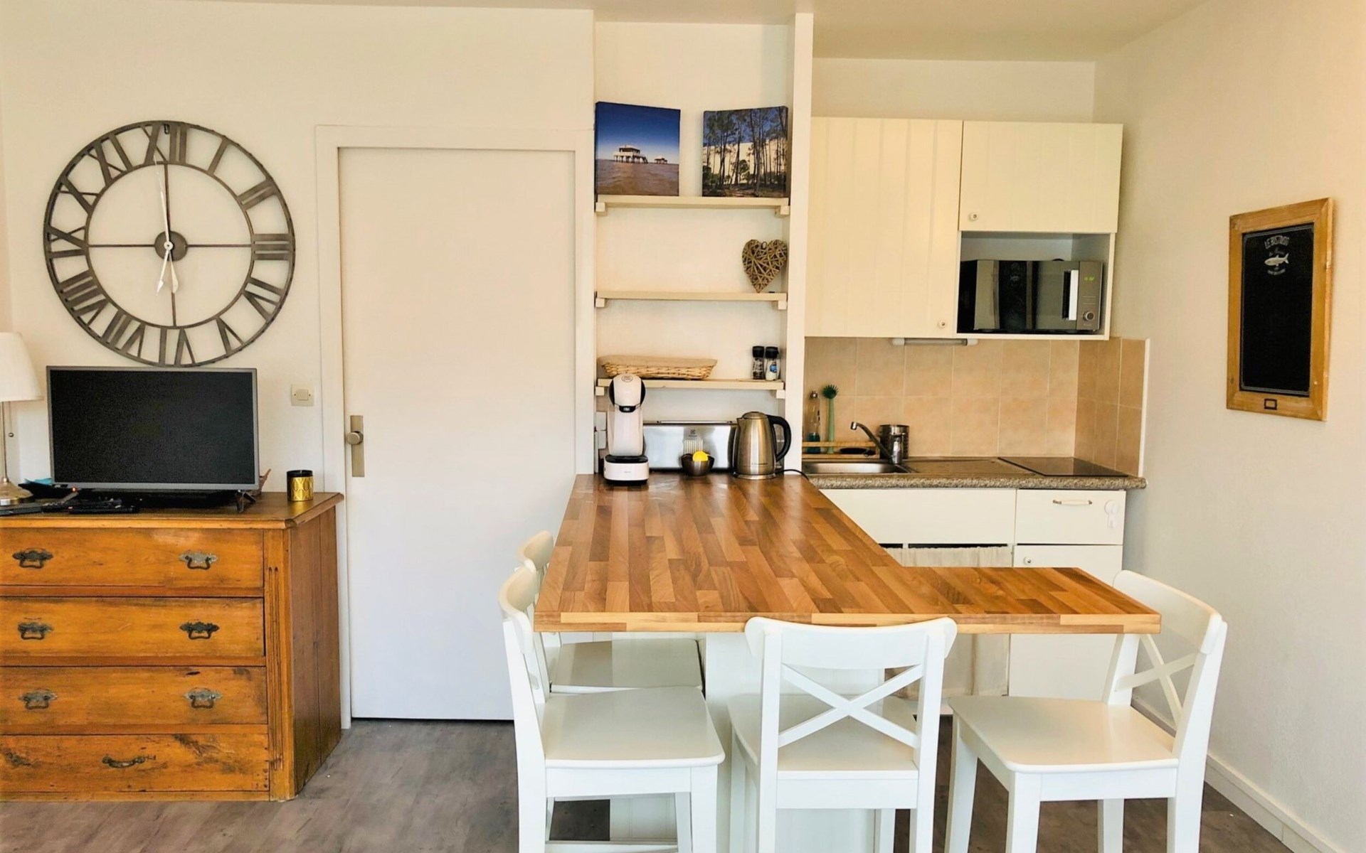 Beautiful residence "Jetée des Marins", 5 storeys. In a quiet position in the residential district, 100 m from the sea, 100 m from the beach, road to cross. In the complex: lift, storage room for bicycles. Shop, grocery 200 m, supermarket 700 m, shopping centre 4.3 km, restaurant 600 m, bar 1 km, bakery 700 m, bicycle rental 450 m, 5 minute walk to the centre, bus stop "Rue Baleste Guilhem" 260 m, railway station "Arcachon" 1.4 km, sandy beach "Jetée de la Chapelle" 100 m, grass beach "Arbousiers" 2.9 km, park "Mauresque" 800 m, thermal baths "Thalazur" 2.1 km. Sports harbour 4.1 km, golf course (18 hole) 4.2 km, surf school 3.4 km, sailing school 4.7 km, cycle lane 5 m. Nearby attractions: Kid Parc 10.2 km, Aqualand 10.1 km, Parc Ornithologique du Teich 15.3 km, Dune du Pyla 10.7 km, Kayak sur la Leyre 15.6 km, Casino 1.2 km. Well-known lakes can easily be reached: Lac de la Magdeleine 10.6 km, Lac de Cazaux 17.1 km.