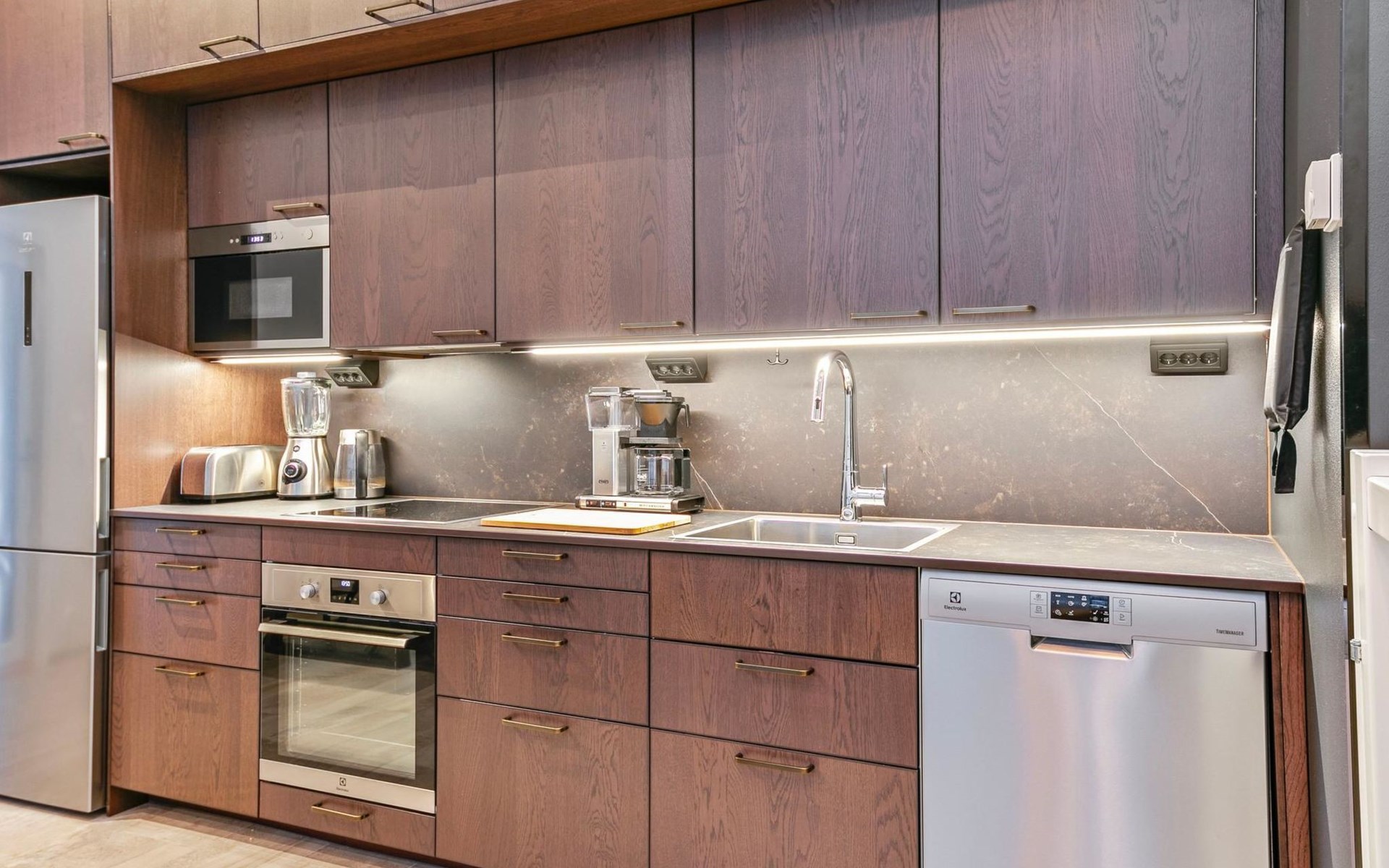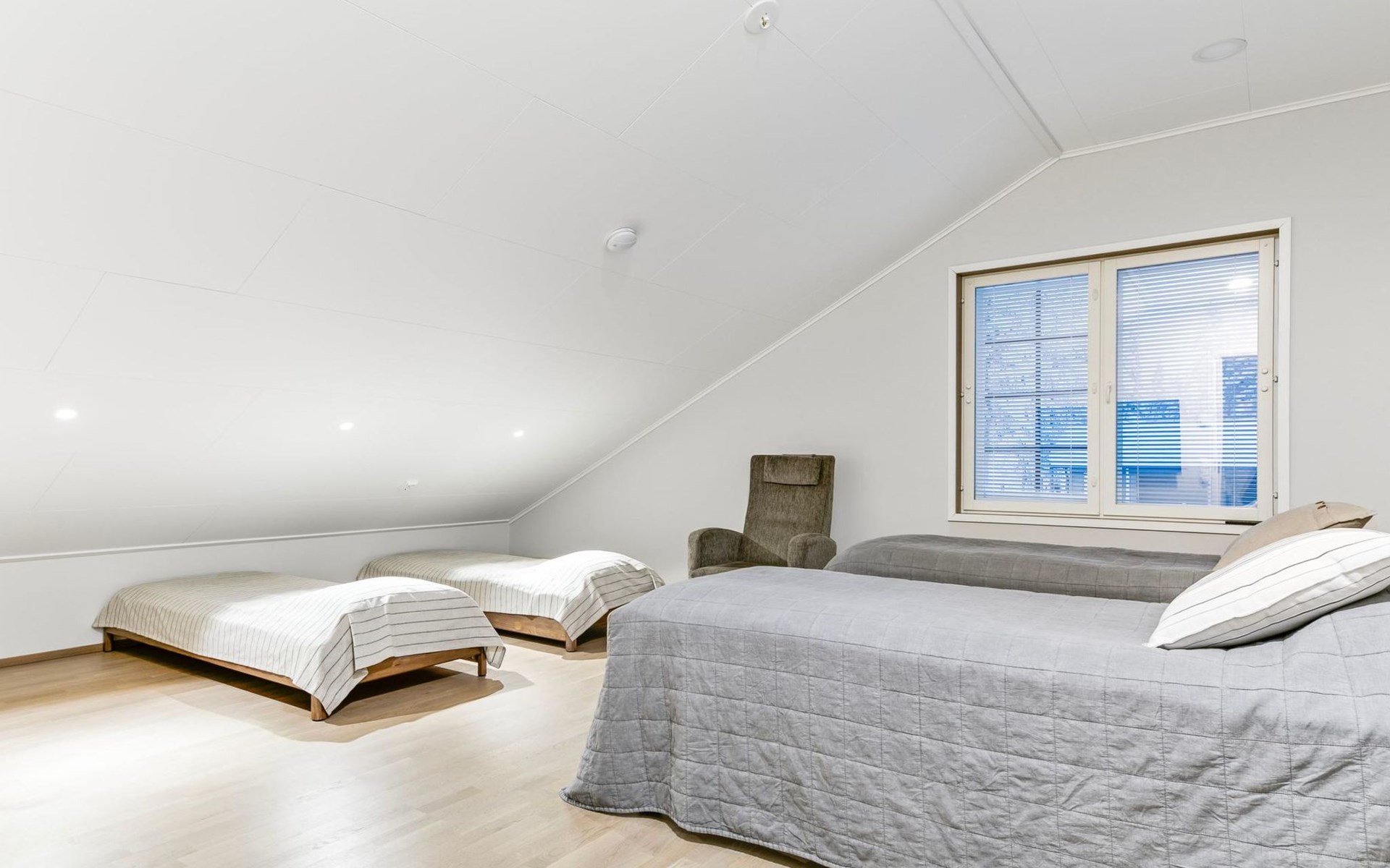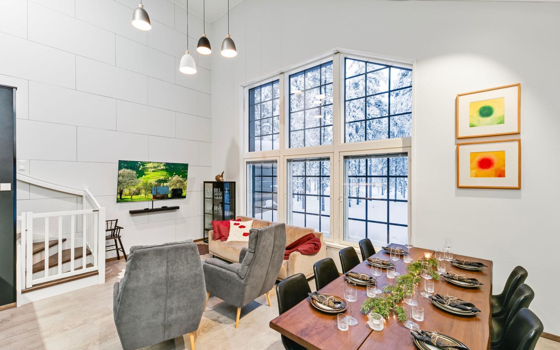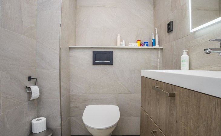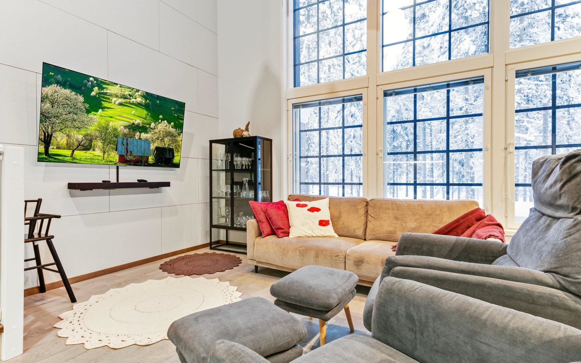 The modernly decorated open-plan kitchen and spacious living areas provide plenty of room for togetherness. The utility room includes a washing machine, dryer, and sink, adding extra convenience to your stay. You can enjoy relaxing sauna moments in the sauna and cozy bathroom.