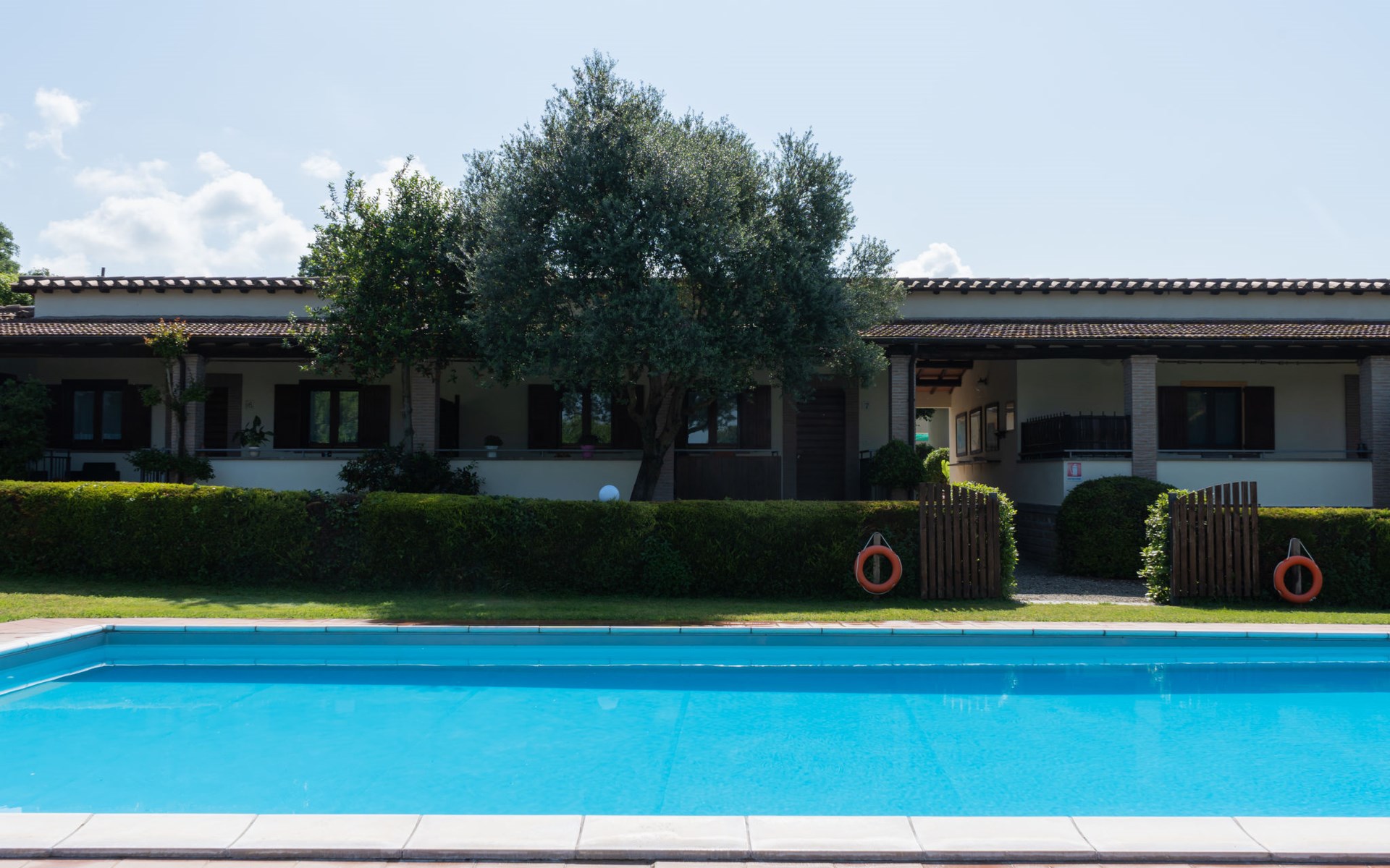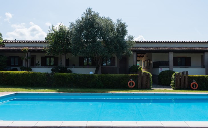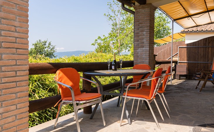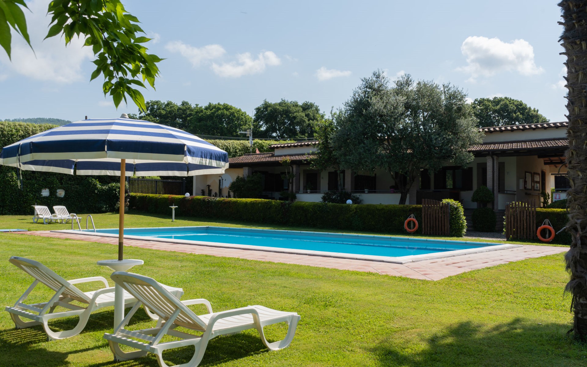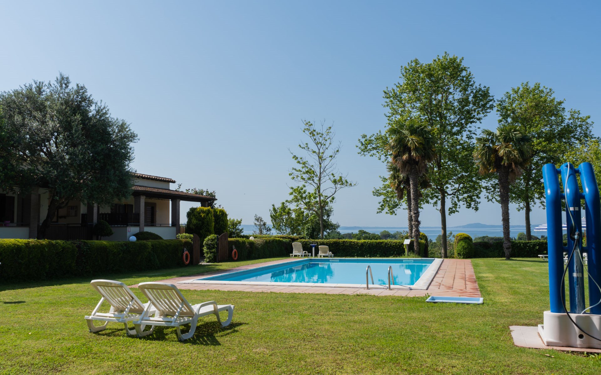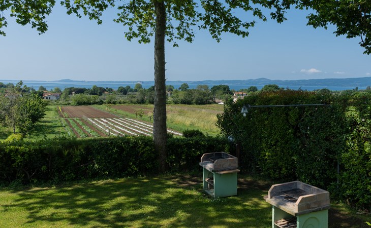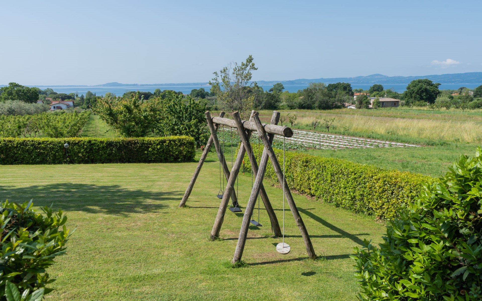 Country house "Dolce Vita". 4 houses in the residence. 9 apartments in the residence. 3 km from the centre of Bolsena, 25 km from the centre of Orvieto, 100 km from the centre of Roma, 900 m from the lake, in the countryside. For shared use: property 5'000 m2 with lawn and trees, orchard, lawn for sunbathing, swimming pool (12 x 6 m, depth 120 - 150 cm, seasonal availability: 16.May. - 10.Oct.). Outdoor shower, barbecue, children's playground. In the house: washing machine (for shared use). Roofed, parking on the premises. Shop 3 km, supermarket 4 km, bus stop 800 m, sandy beach "Lago di Bolsena" 900 m. Golf course (9 hole) 15 km. Nearby attractions: Orvieto 35 km, Viterbo 35 km. Well-known lakes can easily be reached: Bolsena 900 m. Local sale of farm products. Please note: Loading and unloading of baggage is possible at the holiday house. The owner lives on the same property. Motorway 24 km from the property. Airfield 35 km from the property. Additional accommodations can be booked.