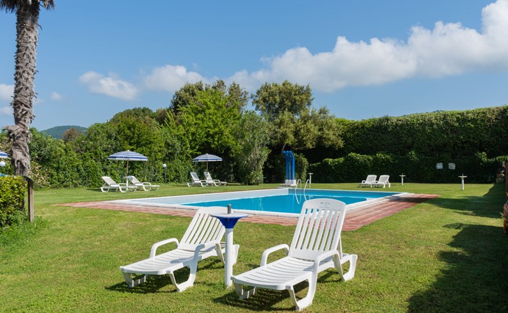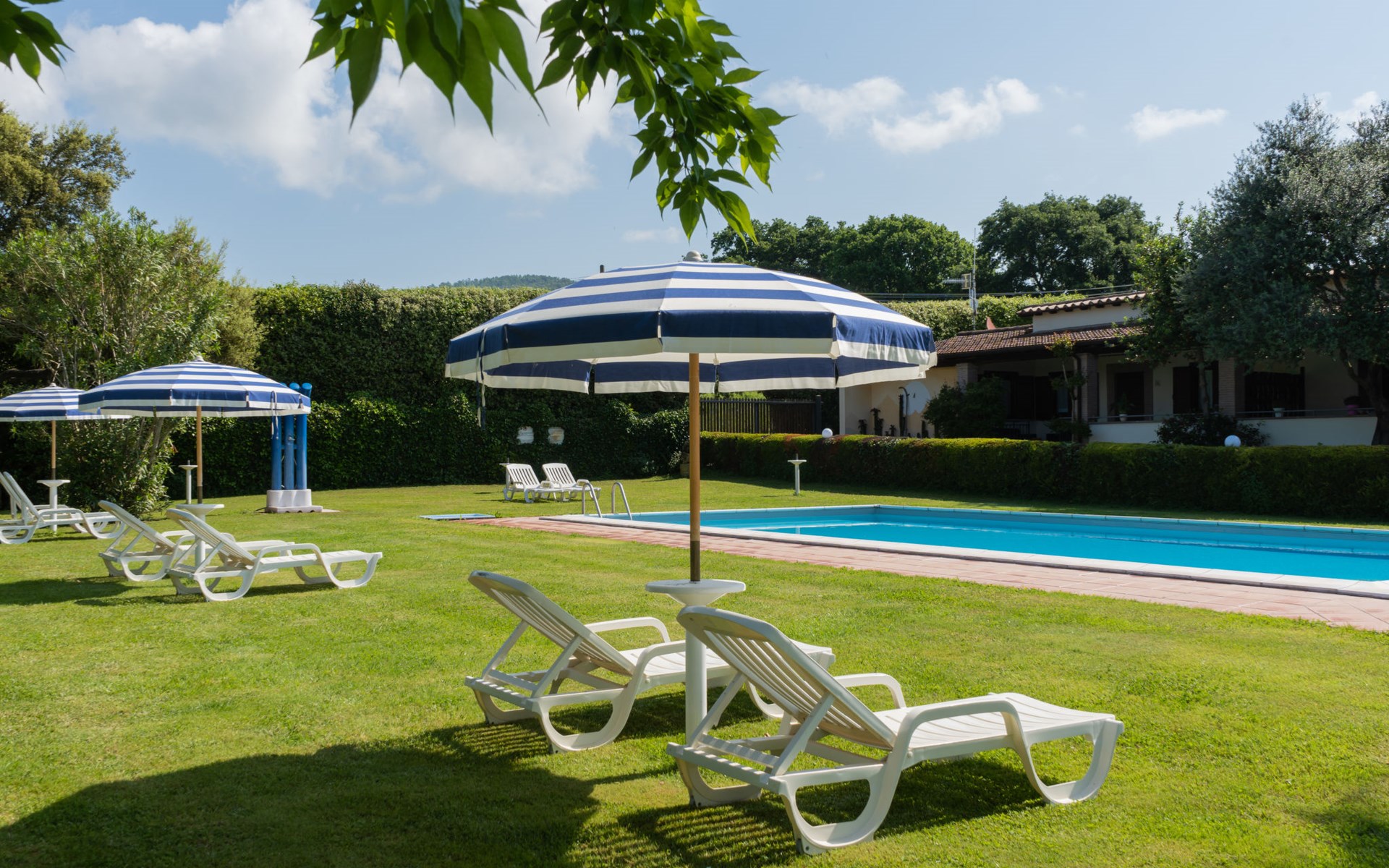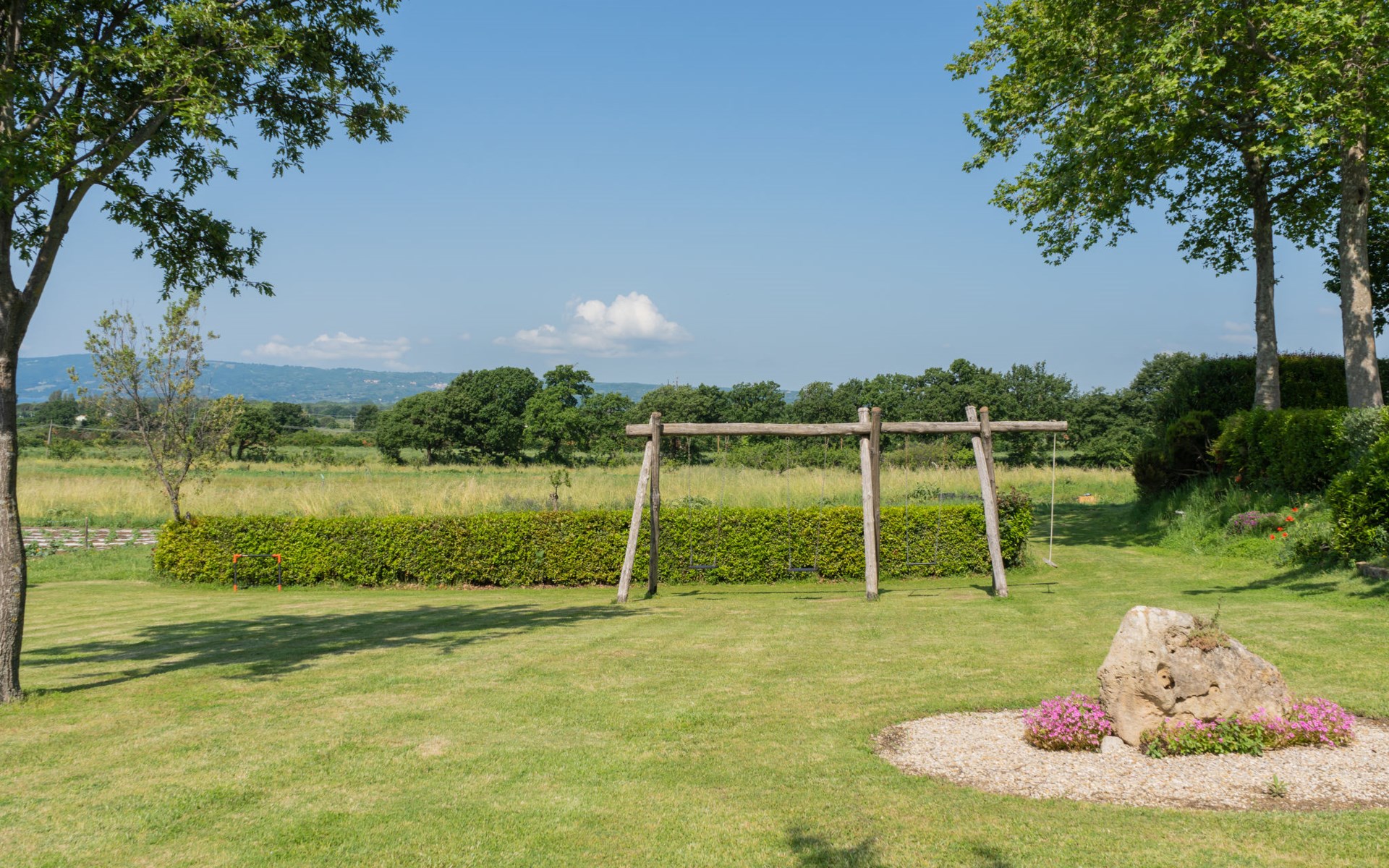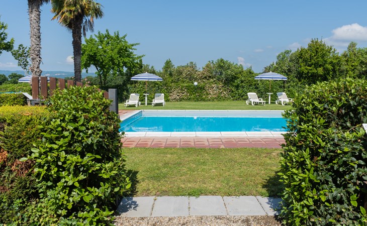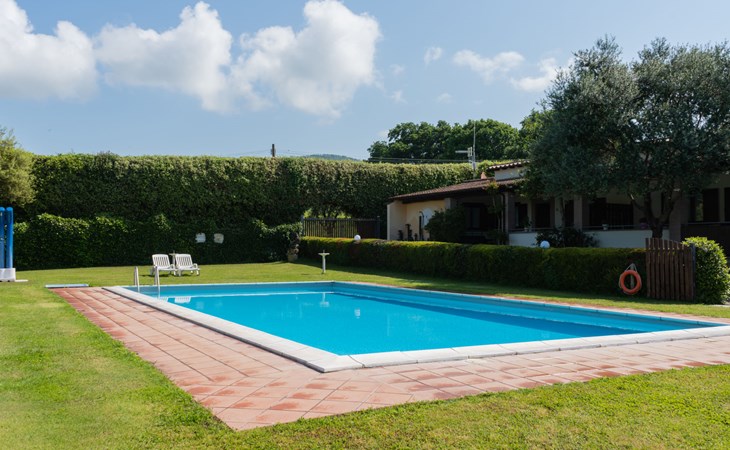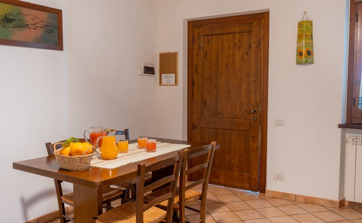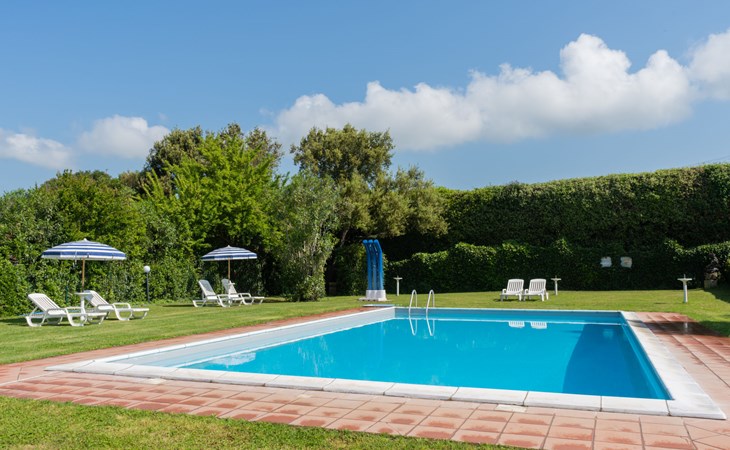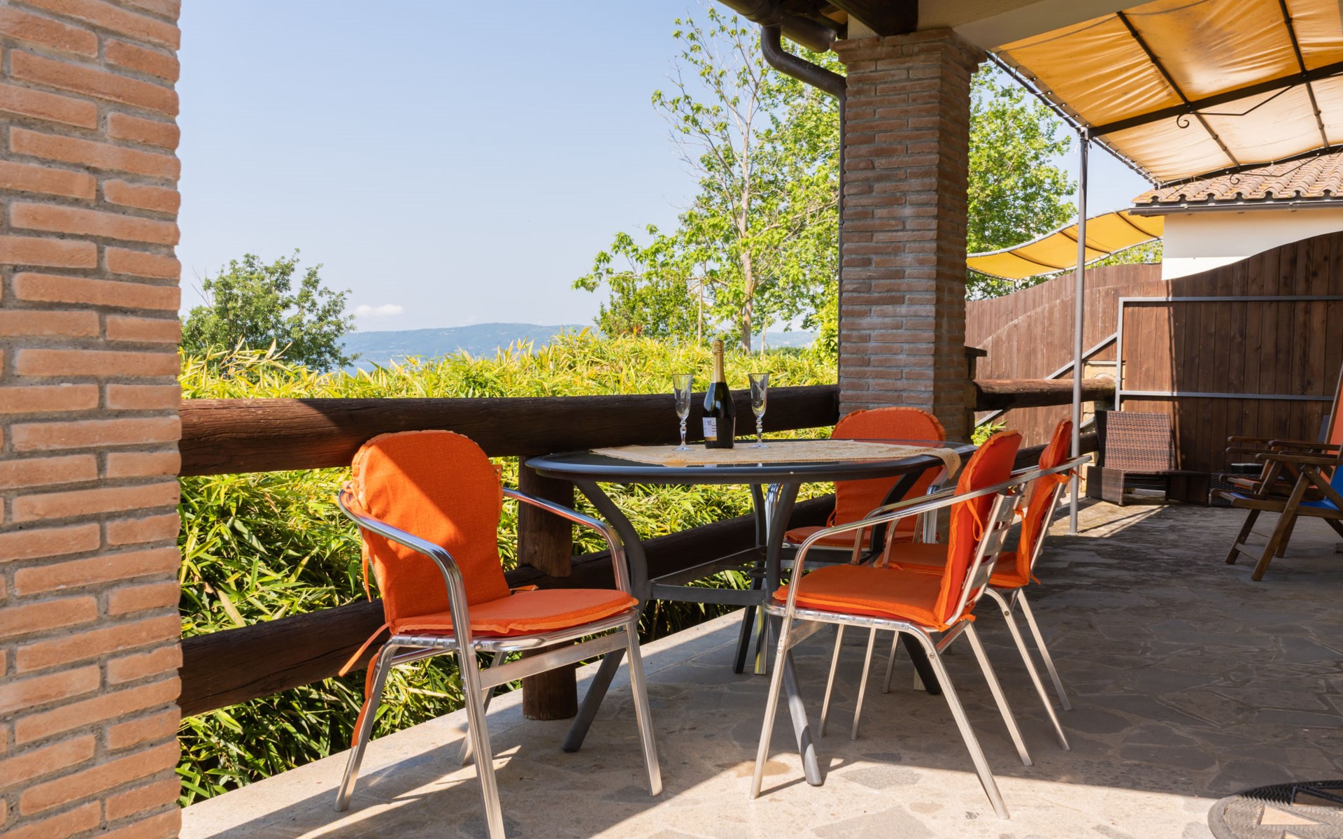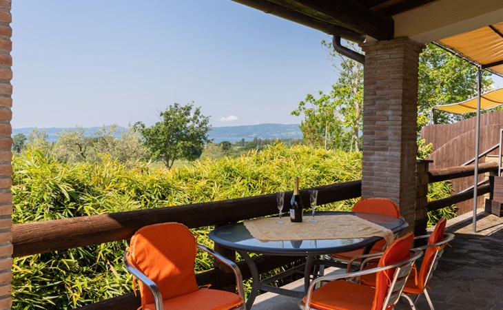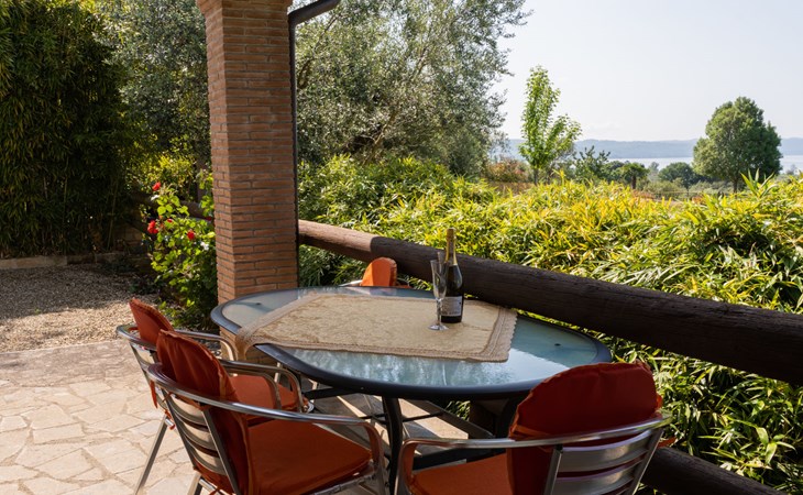 Country house "Dolce Vita". 4 houses in the residence. 9 apartments in the residence. 3 km from the centre of Bolsena, 25 km from the centre of Orvieto, 100 km from the centre of Roma, 900 m from the lake, in the countryside. For shared use: property 5'000 m2 with lawn and trees, orchard, lawn for sunbathing, swimming pool (12 x 6 m, depth 120 - 150 cm, seasonal availability: 16.May. - 10.Oct.). Outdoor shower, barbecue, children's playground. In the house: washing machine (for shared use). Roofed, parking on the premises. Shop 3 km, supermarket 4 km, bus stop 800 m, sandy beach "Lago di Bolsena" 900 m. Golf course (9 hole) 15 km. Nearby attractions: Orvieto 35 km, Viterbo 35 km. Well-known lakes can easily be reached: Bolsena 900 m. Local sale of farm products. Please note: Loading and unloading of baggage is possible at the holiday house. The owner lives on the same property. Motorway 24 km from the property. Airfield 35 km from the property. Additional accommodations can be booked.