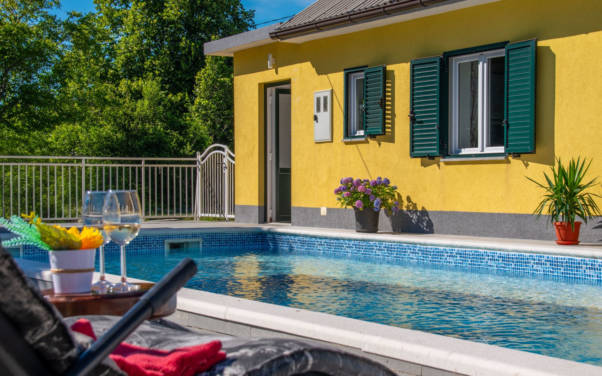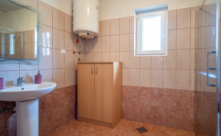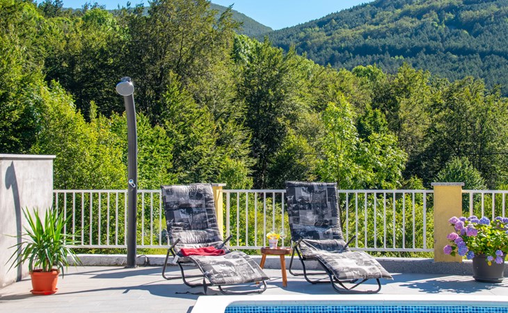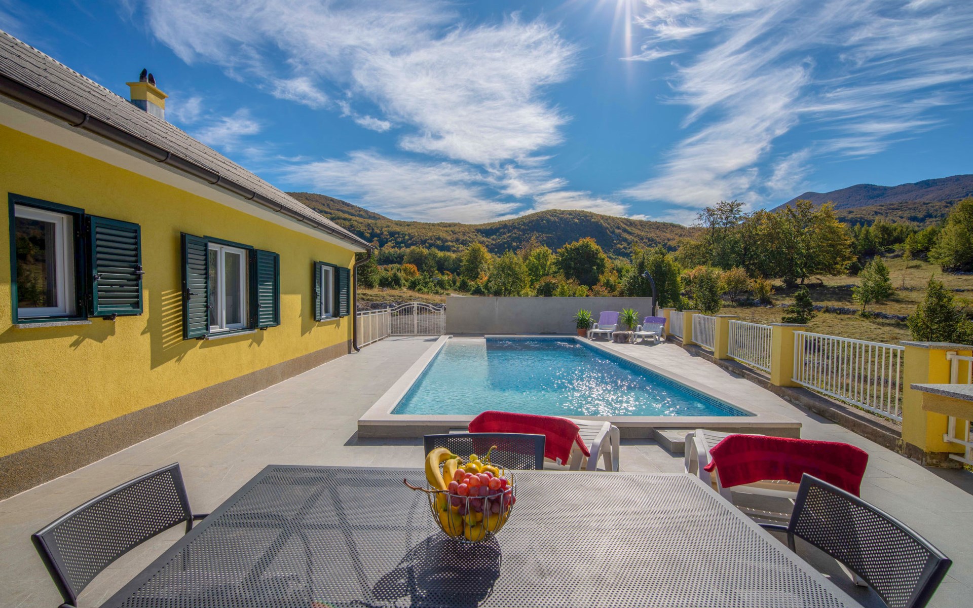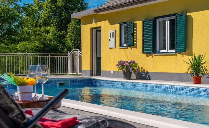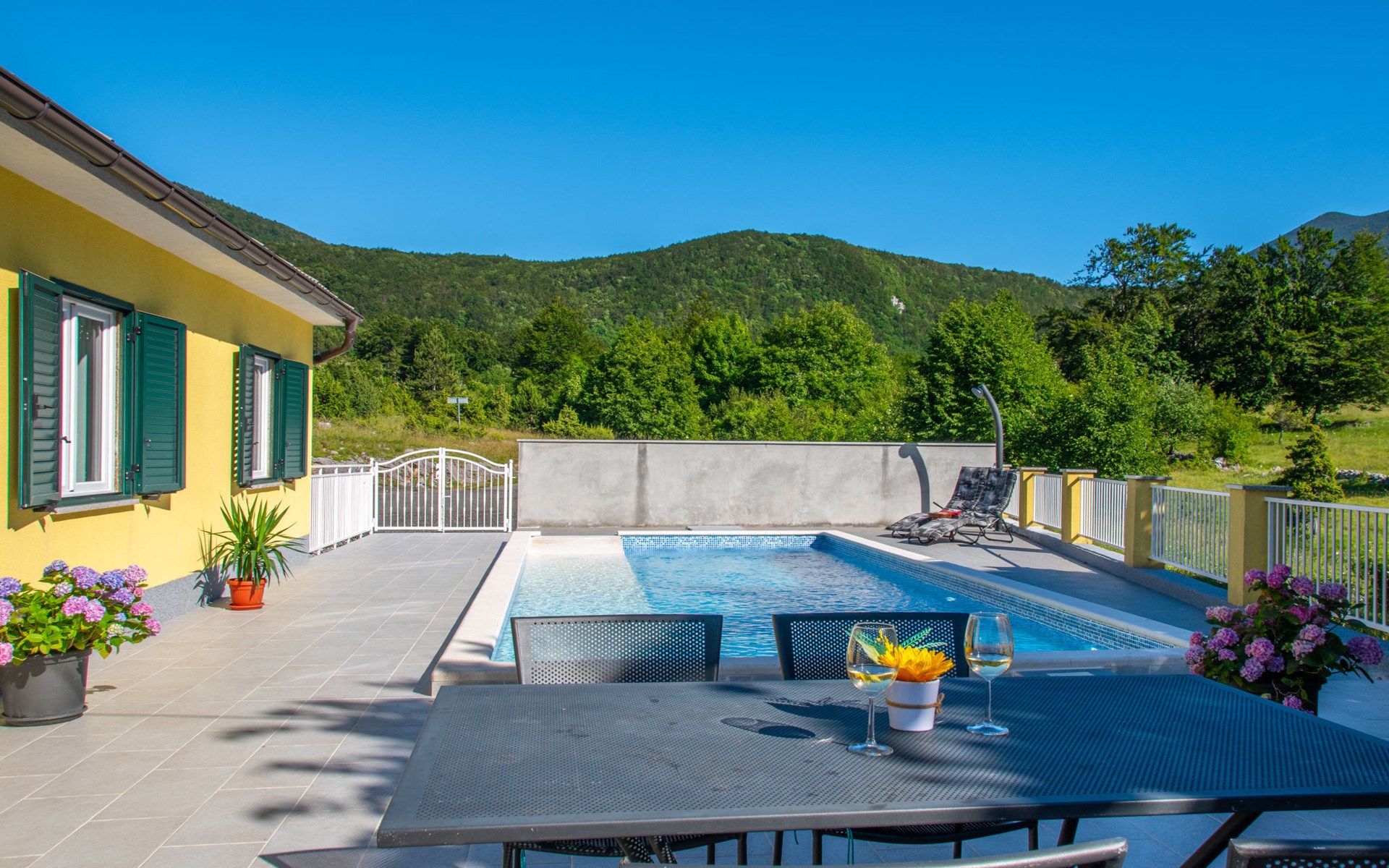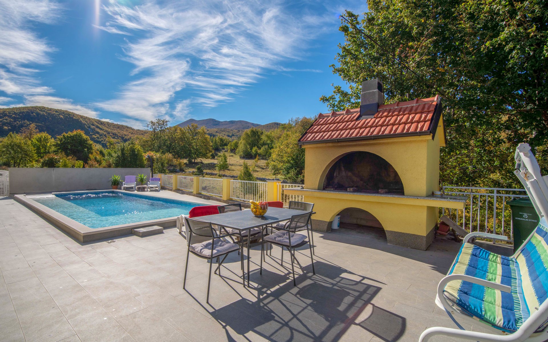 Single-family house "Saulja". In the hamlet Oltari 14 km from the centre of Sveti Juraj, in a quiet, sunny position, 14 km from the sea, in the countryside. Private: property 960 m2, swimming pool angular (10 x 4 m, depth 80 - 140 cm, seasonal availability: 01.May. - 01.Oct.) with internal staircase and salt-electrolysis pool-cleaning system. Outdoor shower, terrace (45 m2), garden furniture, barbecue, pool maintenance by the owner/gardener. In the house: internet access, washing machine. Parking (for 3 cars) at the house on the premises. Shop 10 km, restaurant 10 km, bus stop 500 m, pebble beach 14 km, concrete beach 14 km. Nearby attractions: national parki Sjeverni Velebit 18 km. Swimming pool with hydromassage. Swimming pool with handicap access.