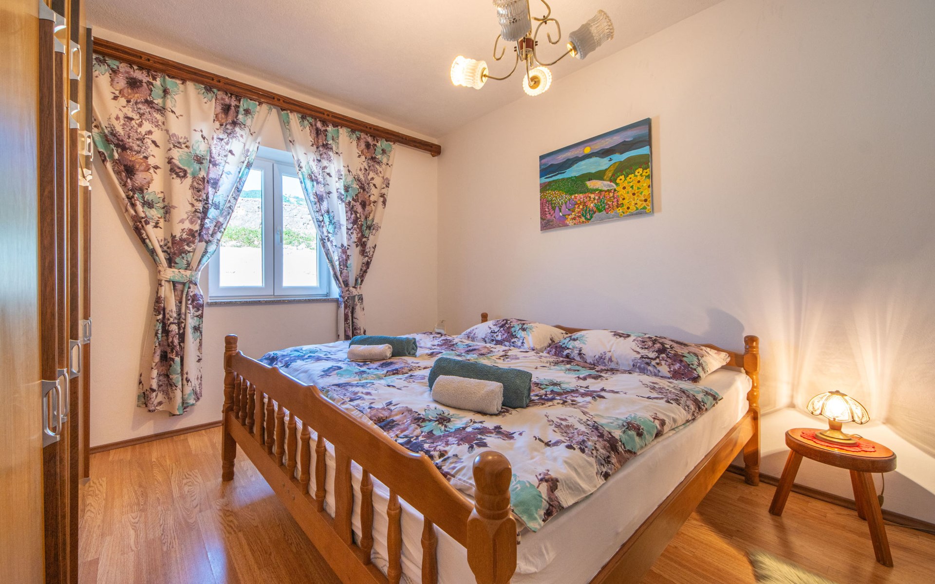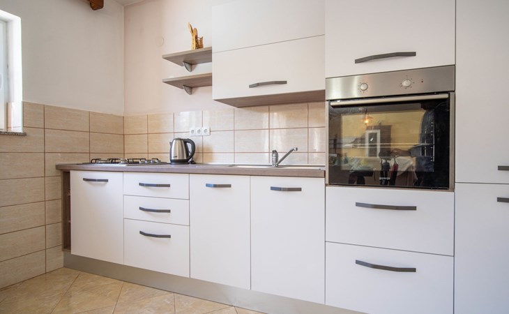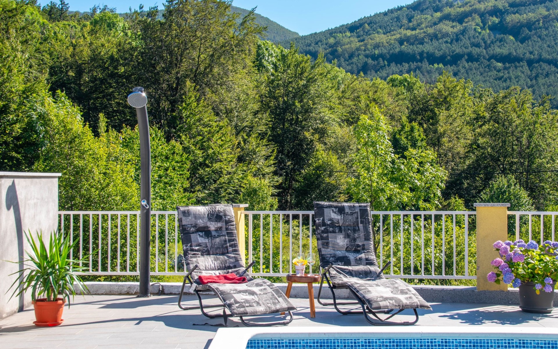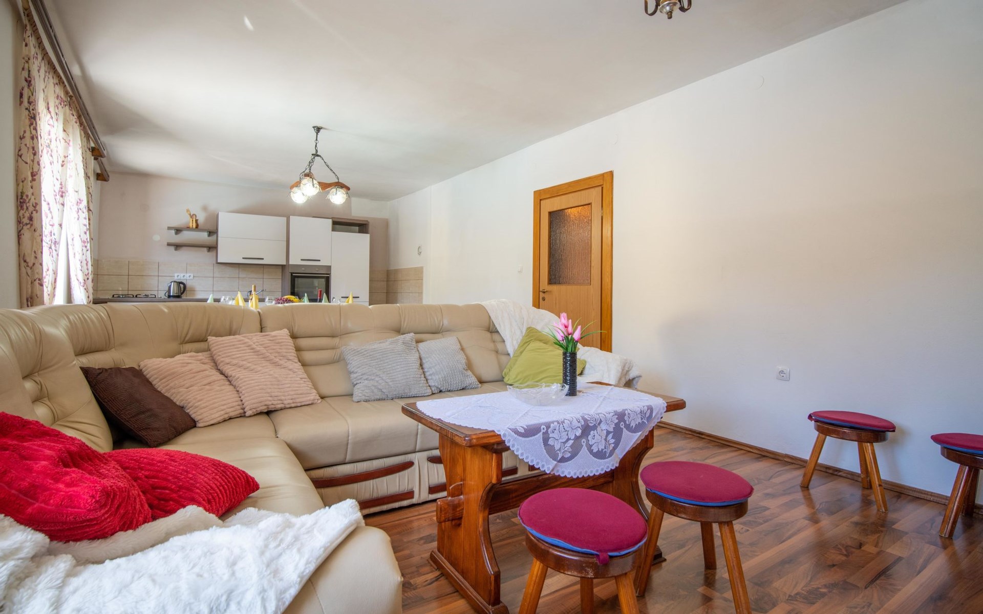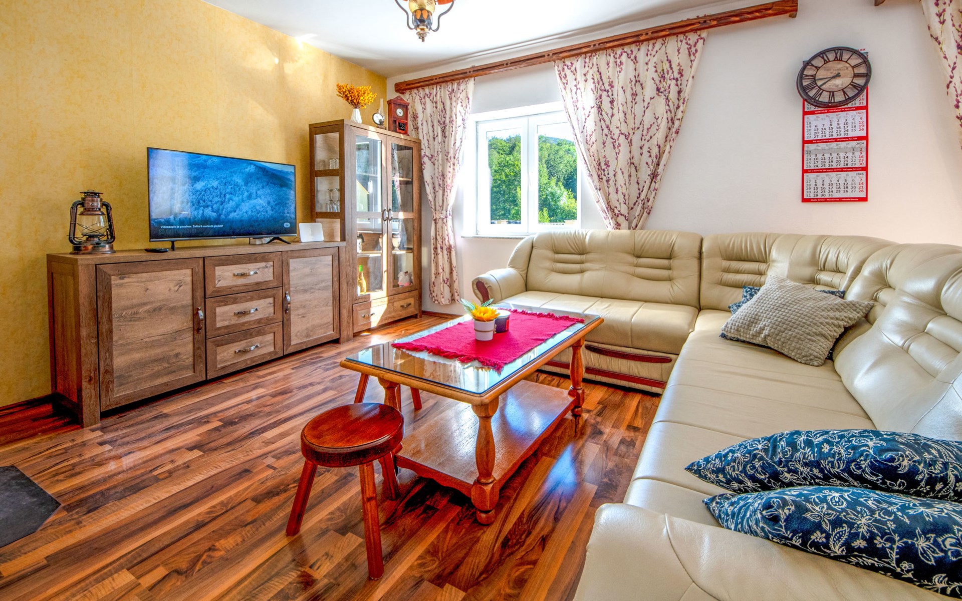 Single-family house "Saulja". In the hamlet Oltari 14 km from the centre of Sveti Juraj, in a quiet, sunny position, 14 km from the sea, in the countryside. Private: property 960 m2, swimming pool angular (10 x 4 m, depth 80 - 140 cm, seasonal availability: 01.May. - 01.Oct.) with internal staircase and salt-electrolysis pool-cleaning system. Outdoor shower, terrace (45 m2), garden furniture, barbecue, pool maintenance by the owner/gardener. In the house: internet access, washing machine. Parking (for 3 cars) at the house on the premises. Shop 10 km, restaurant 10 km, bus stop 500 m, pebble beach 14 km, concrete beach 14 km. Nearby attractions: national parki Sjeverni Velebit 18 km. Swimming pool with hydromassage. Swimming pool with handicap access.
