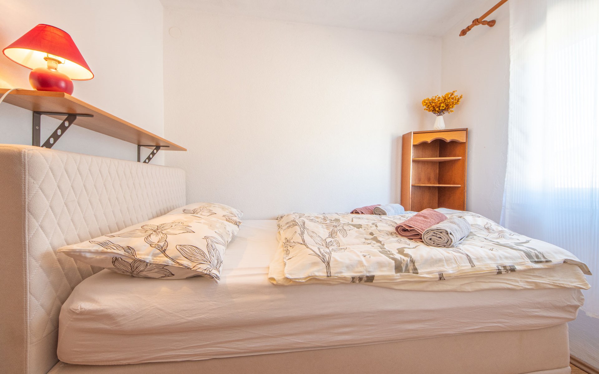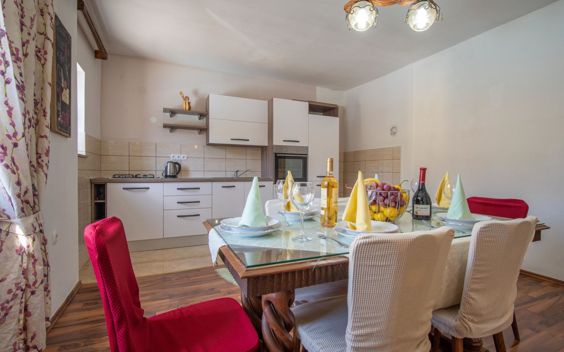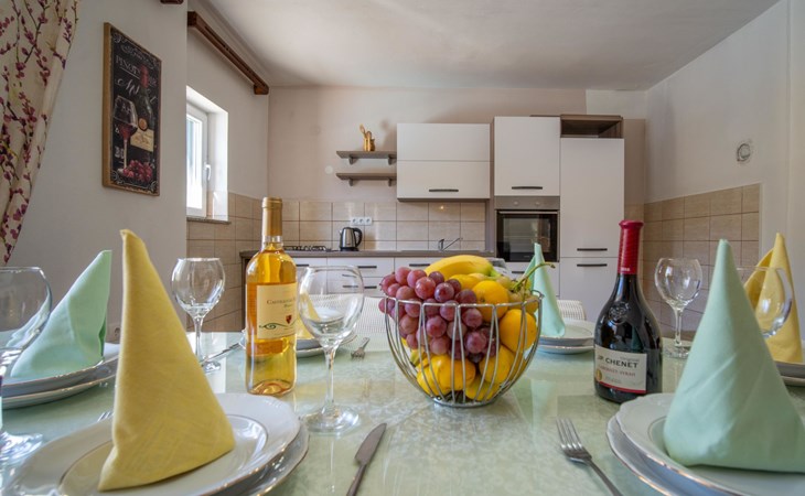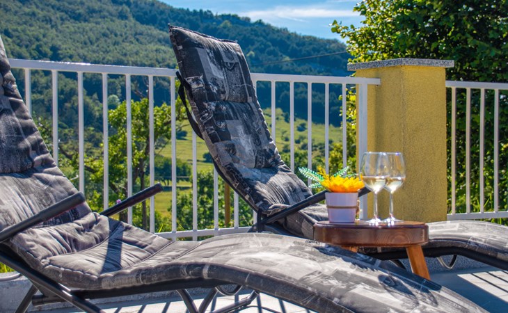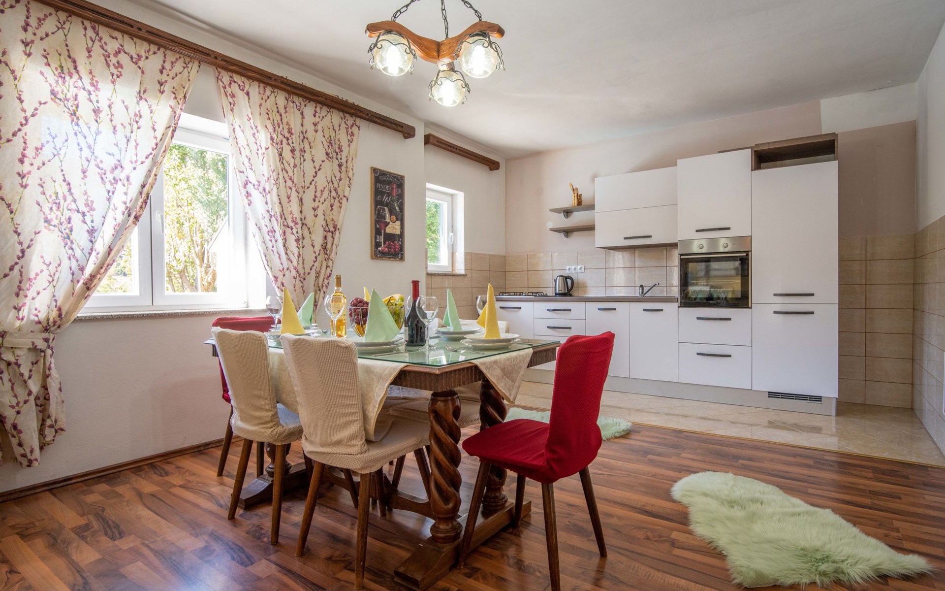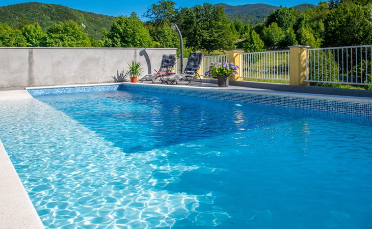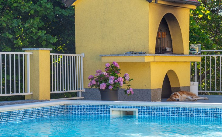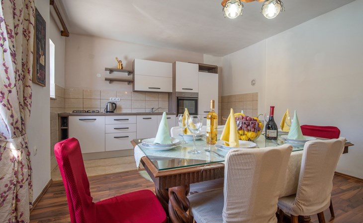 Single-family house "Saulja". In the hamlet Oltari 14 km from the centre of Sveti Juraj, in a quiet, sunny position, 14 km from the sea, in the countryside. Private: property 960 m2, swimming pool angular (10 x 4 m, depth 80 - 140 cm, seasonal availability: 01.May. - 01.Oct.) with internal staircase and salt-electrolysis pool-cleaning system. Outdoor shower, terrace (45 m2), garden furniture, barbecue, pool maintenance by the owner/gardener. In the house: internet access, washing machine. Parking (for 3 cars) at the house on the premises. Shop 10 km, restaurant 10 km, bus stop 500 m, pebble beach 14 km, concrete beach 14 km. Nearby attractions: national parki Sjeverni Velebit 18 km. Swimming pool with hydromassage. Swimming pool with handicap access.