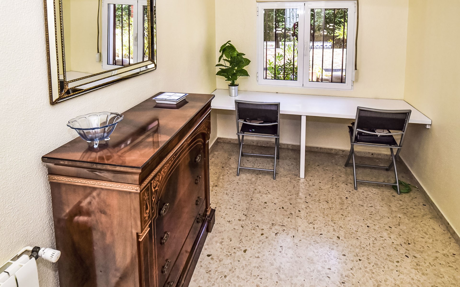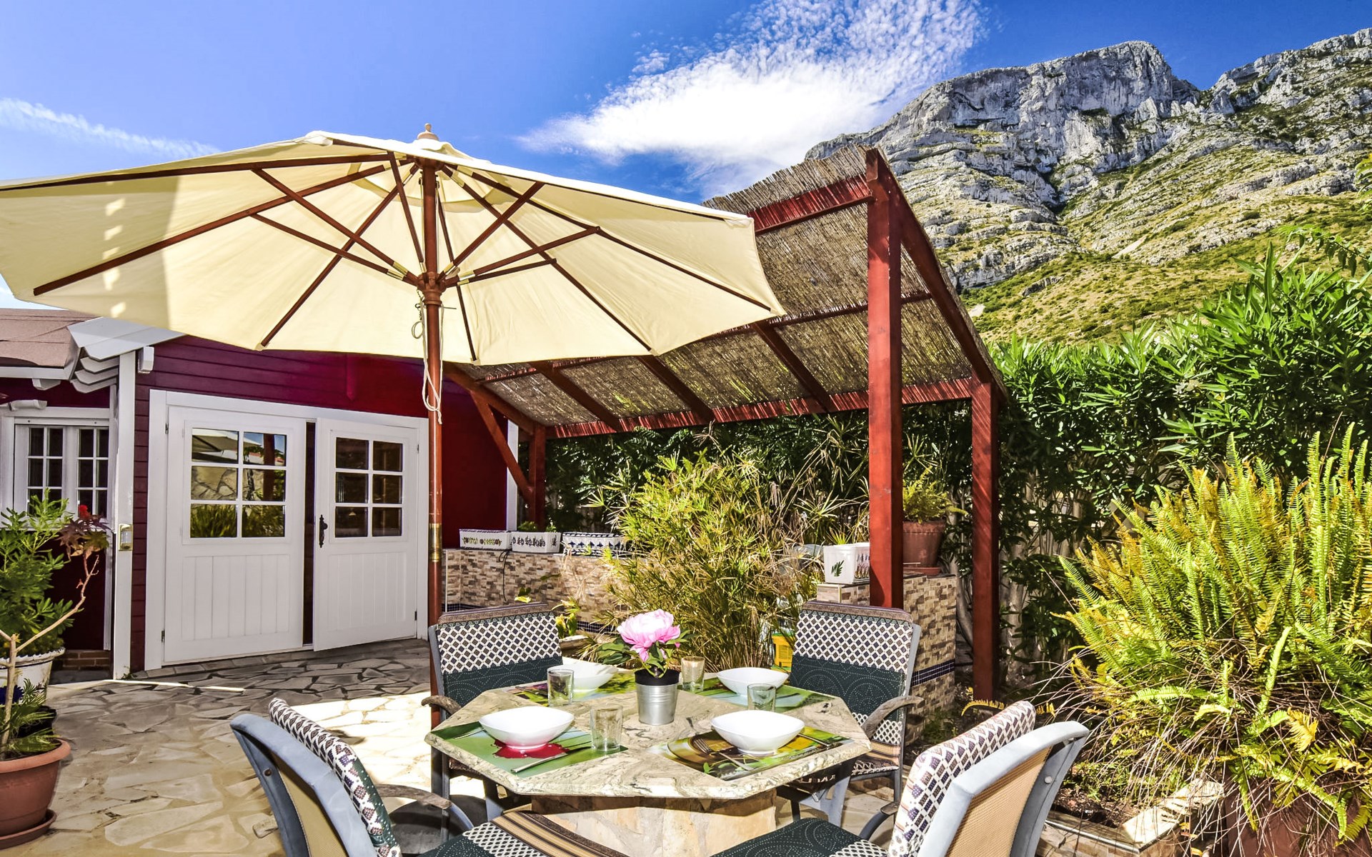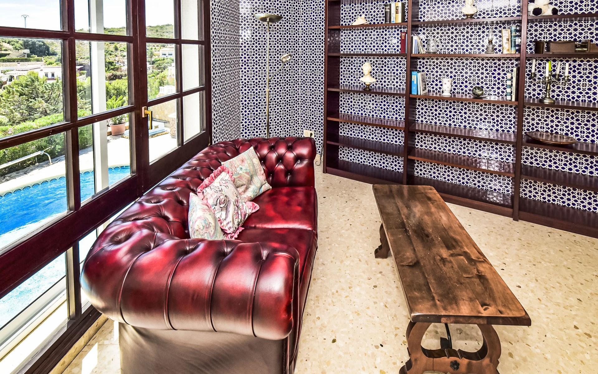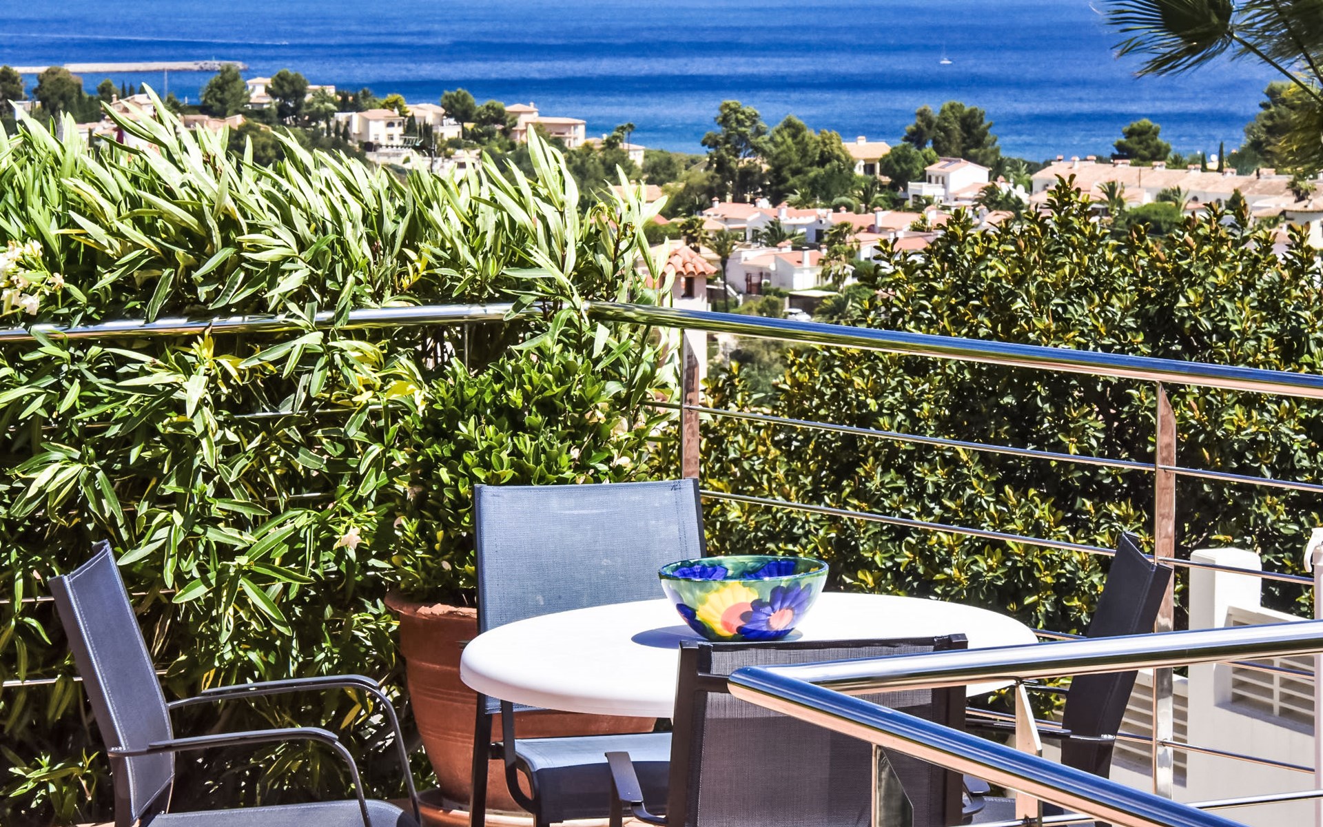 Bellavista: Beautiful, cosy house "Bellavista". In the resort 4.5 km from the centre of Dénia, 3 km from the sea, 3.9 km from the beach, in a cul-de-sac. Private: beautiful, well-kept garden with wildlife garden and trees, swimming pool kidney shaped (5 x 10 m, depth 1 - depth 180 cm, seasonal availability: 01.Jan. - 31.Dec.). Stepped path (17 steps) to the house. Parking, single garage. Supermarket 4 km, restaurant 2 km, bar 1.5 km, bus stop 4.5 km, railway station 4.5 km, ferry 4.5 km, sandy beach 4.5 km. Sports harbour 4.5 km, marina 4.5 km, surf school 4.5 km, sailing school 4.5 km. Please note: not suitable for small children. The owner does not accept any youth groups.