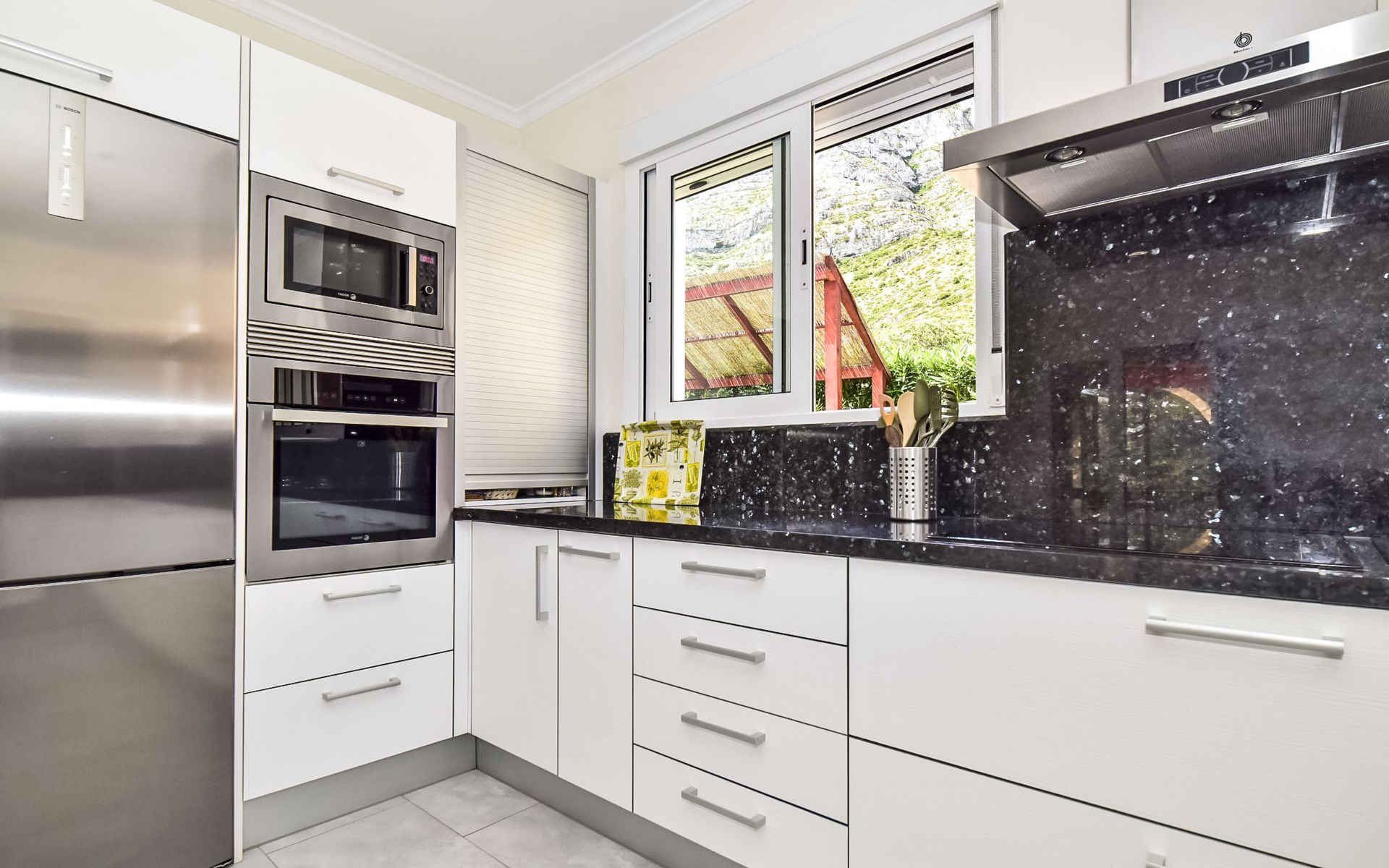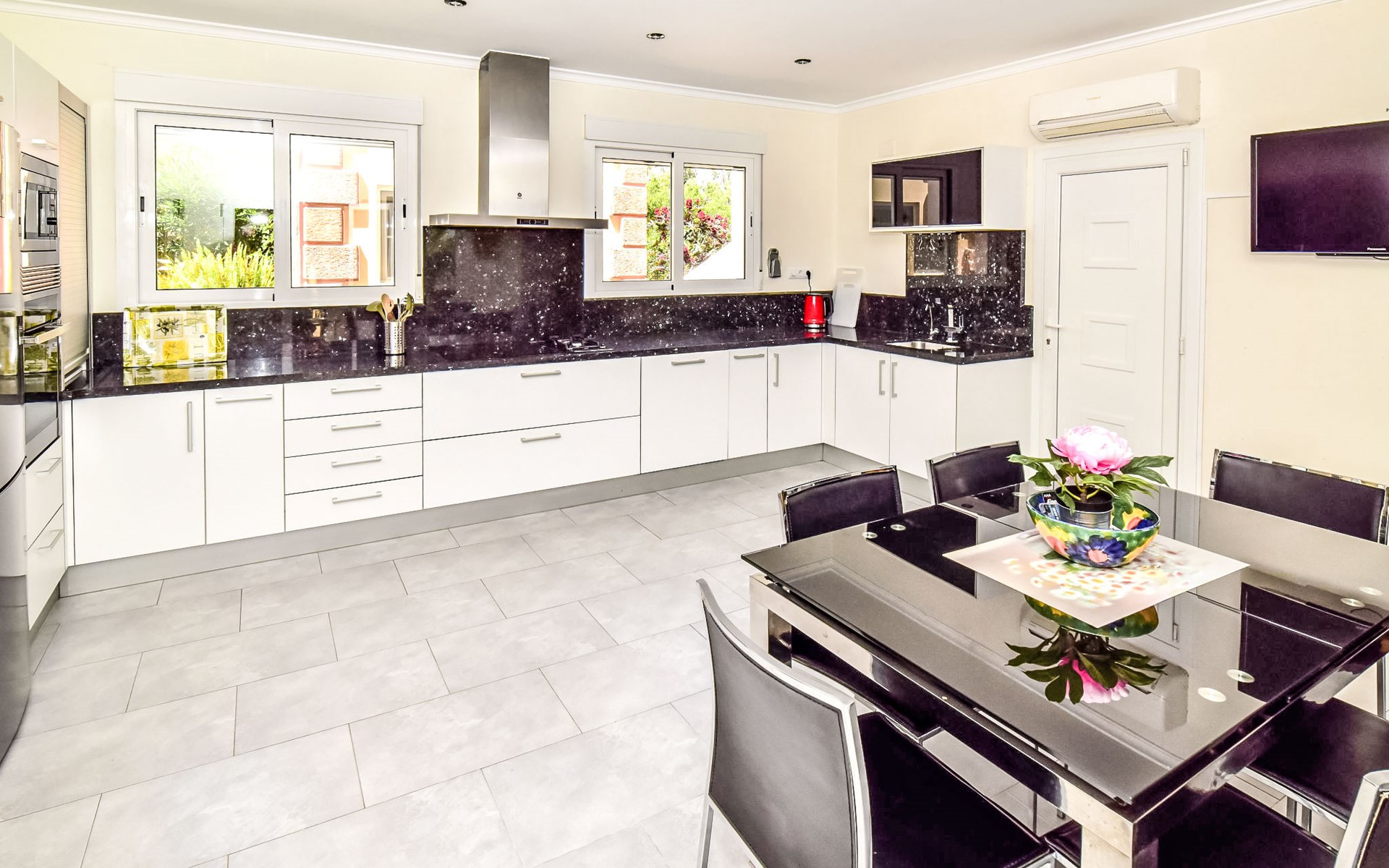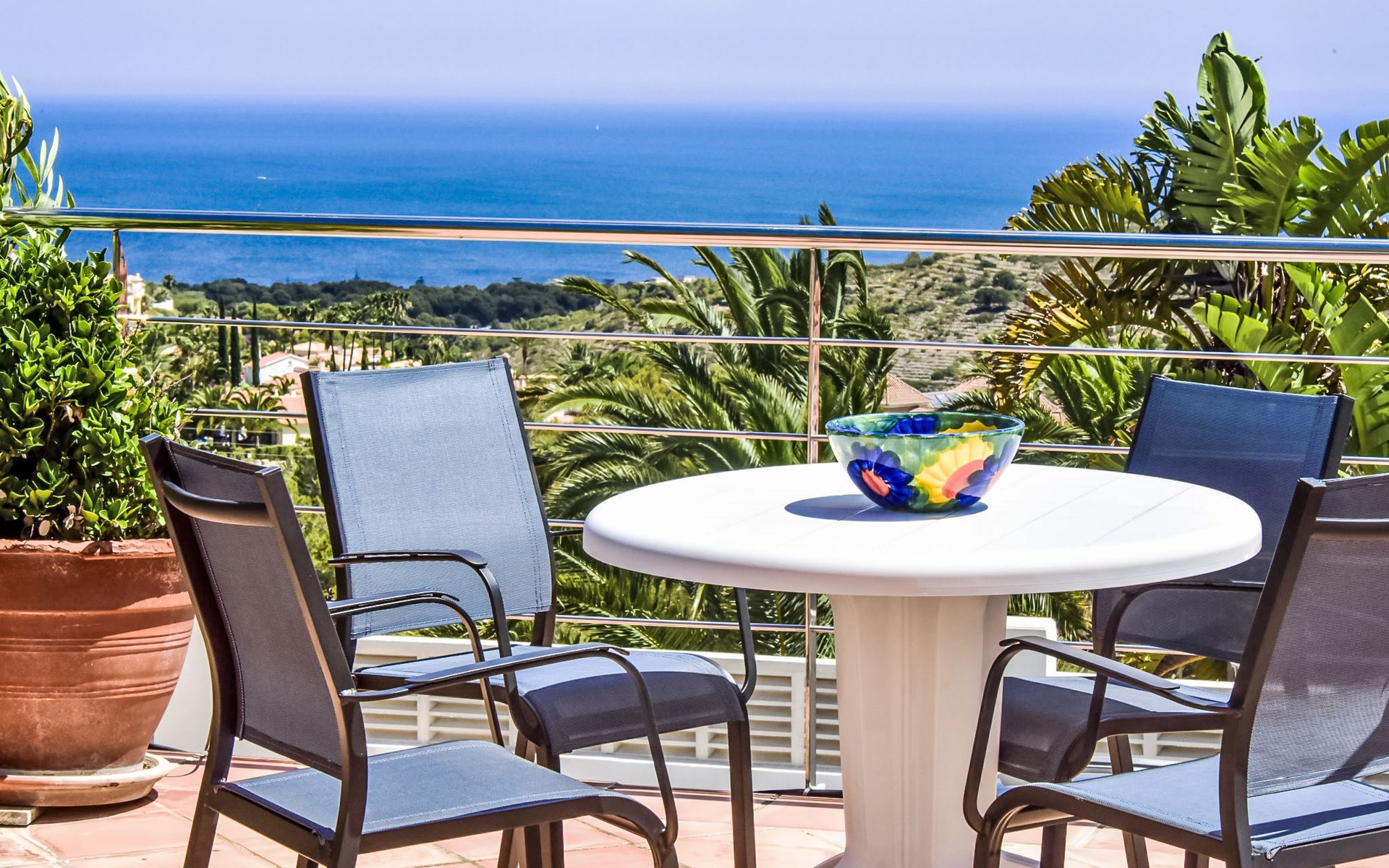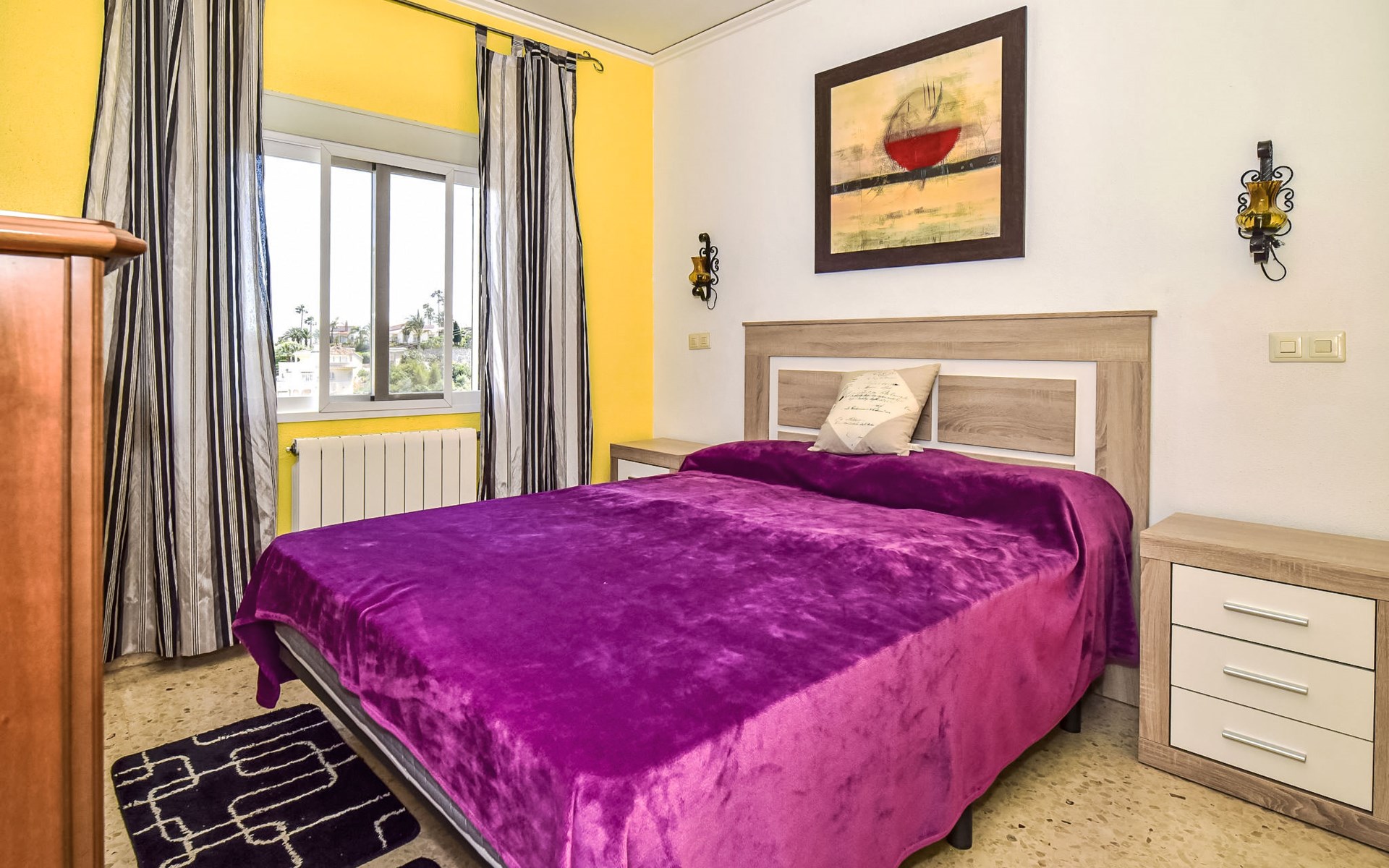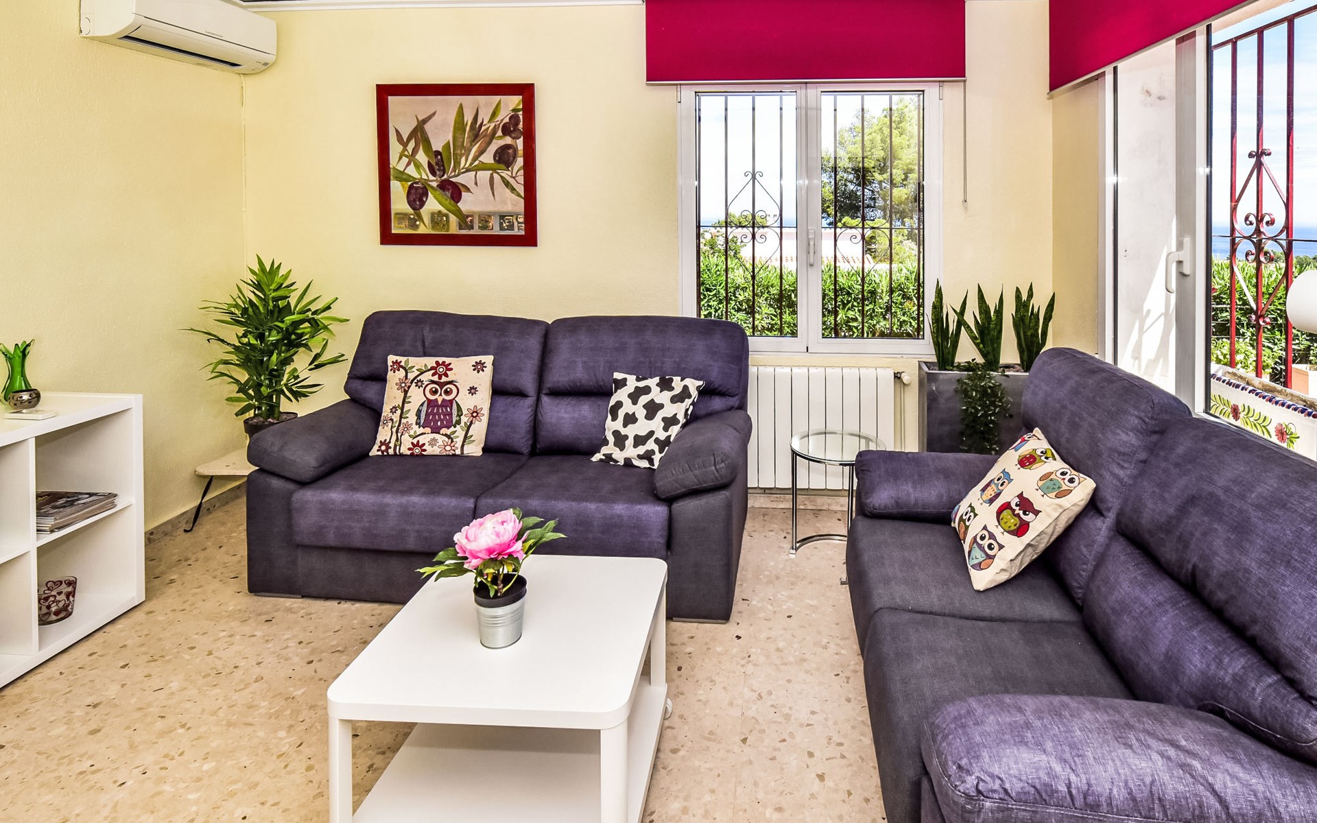 Bellavista: Beautiful, cosy house "Bellavista". In the resort 4.5 km from the centre of Dénia, 3 km from the sea, 3.9 km from the beach, in a cul-de-sac. Private: beautiful, well-kept garden with wildlife garden and trees, swimming pool kidney shaped (5 x 10 m, depth 1 - depth 180 cm, seasonal availability: 01.Jan. - 31.Dec.). Stepped path (17 steps) to the house. Parking, single garage. Supermarket 4 km, restaurant 2 km, bar 1.5 km, bus stop 4.5 km, railway station 4.5 km, ferry 4.5 km, sandy beach 4.5 km. Sports harbour 4.5 km, marina 4.5 km, surf school 4.5 km, sailing school 4.5 km. Please note: not suitable for small children. The owner does not accept any youth groups.