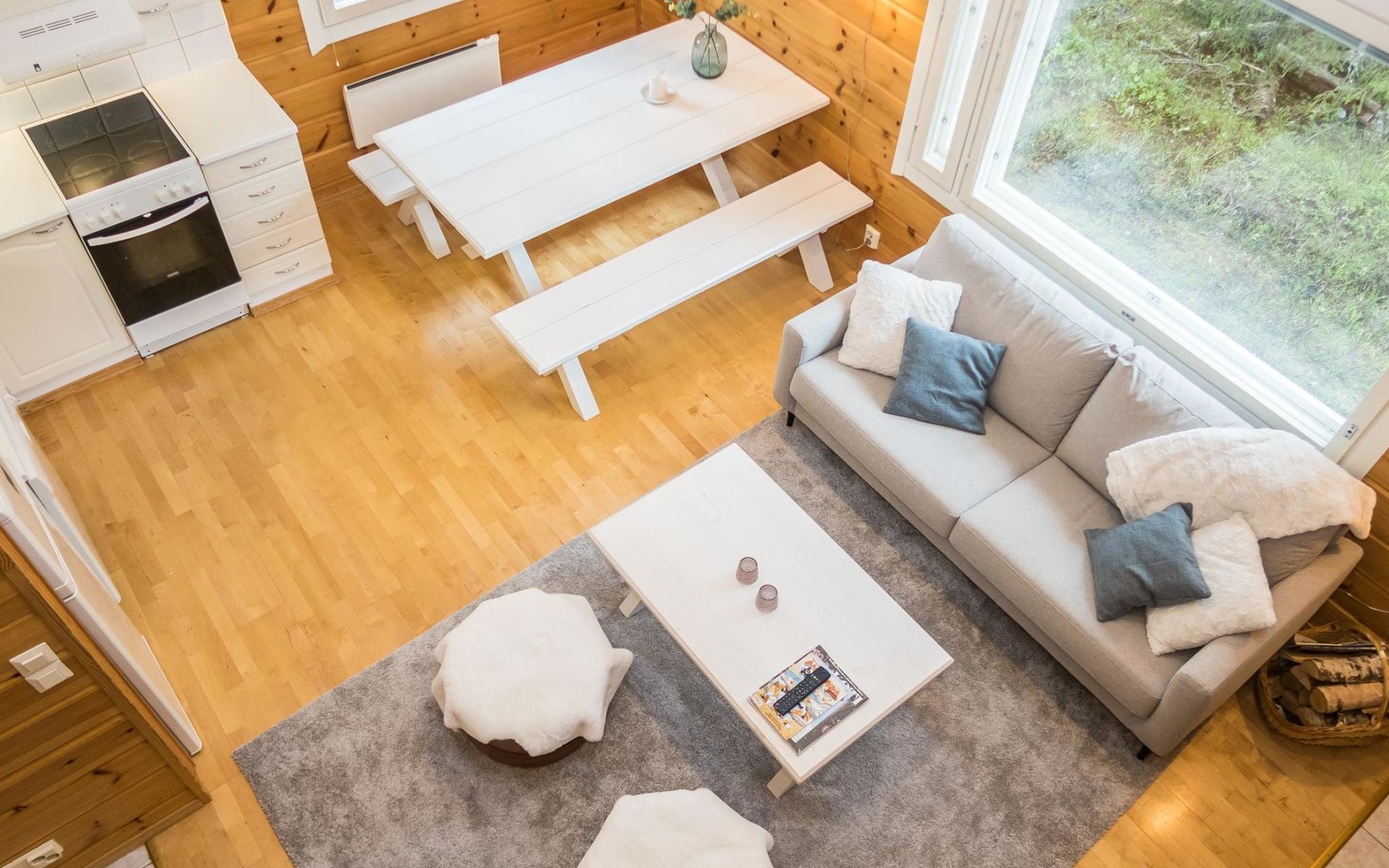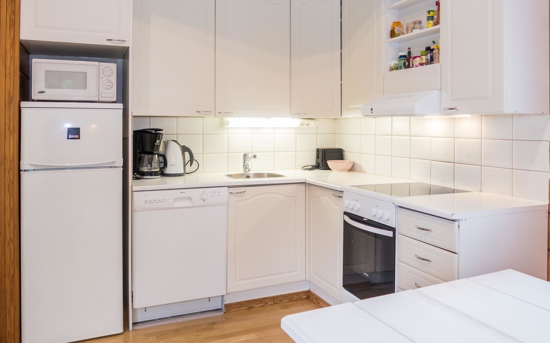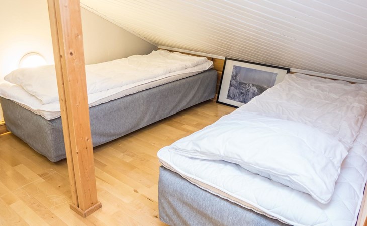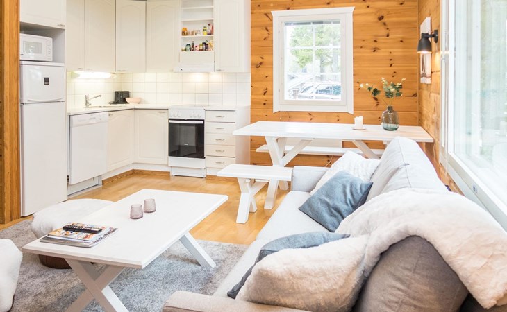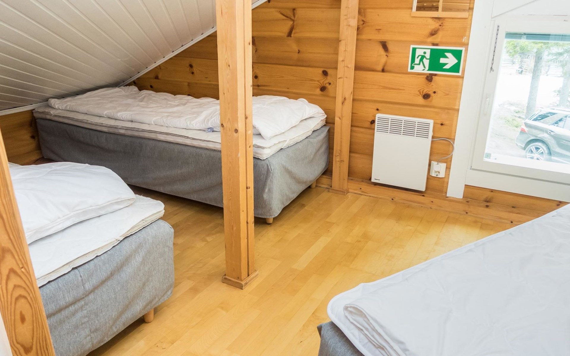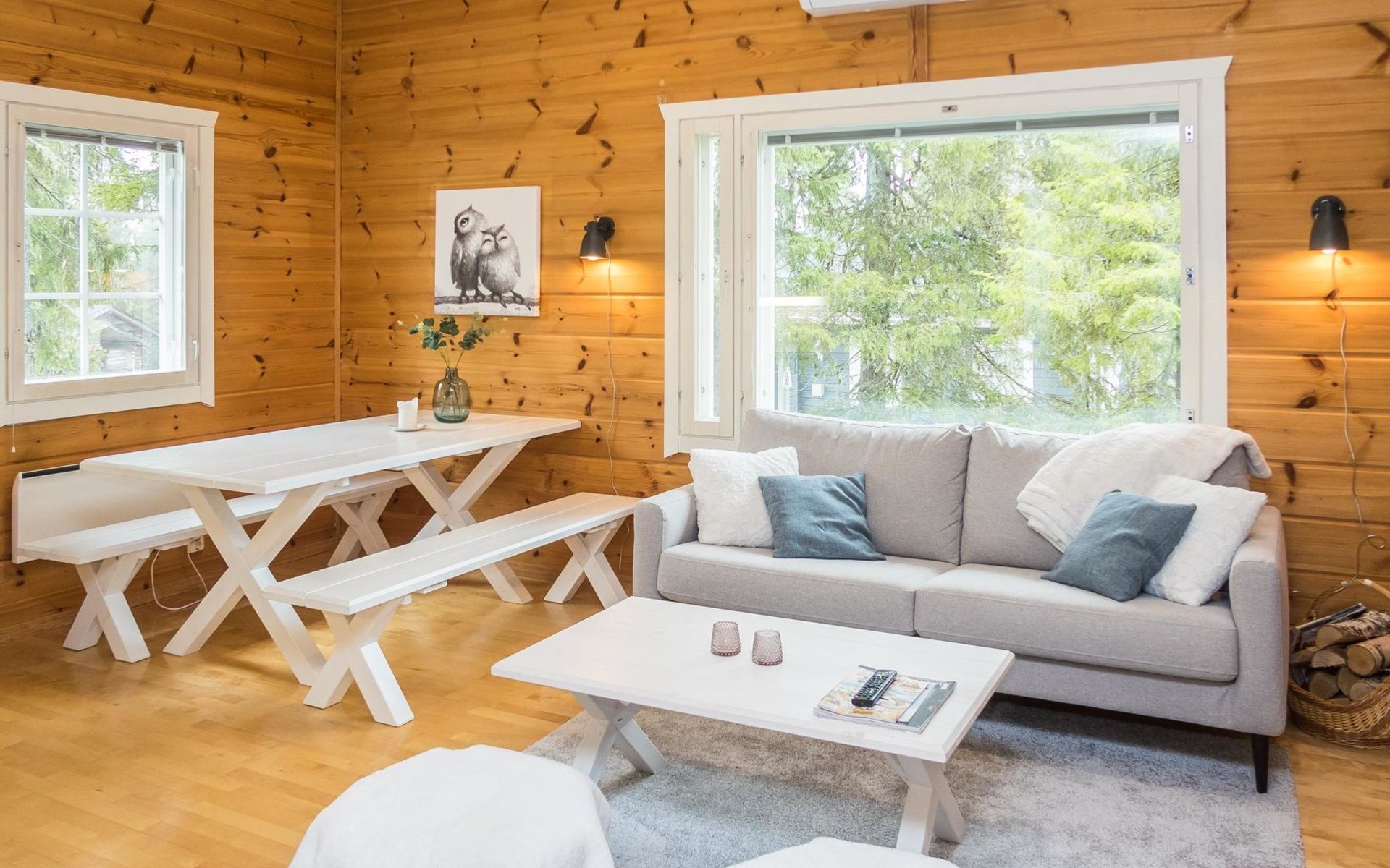 27 km to the north from Kuusamo, Vuosseli (East-Ruka) 900 m, Ruka village 4,9 km. Apartment in a log-built semi-detached house, built in 1995. Bedrooms 1-2 (on the ground floor): 2 beds, bedroom 1 in the loft (folding door): 3 beds, bedroom 2 in the loft (folding door): 120 cm bed, lobby in the loft: 3 beds, living room/kitchen, electric sauna.